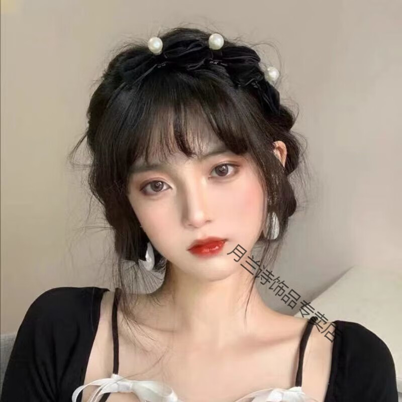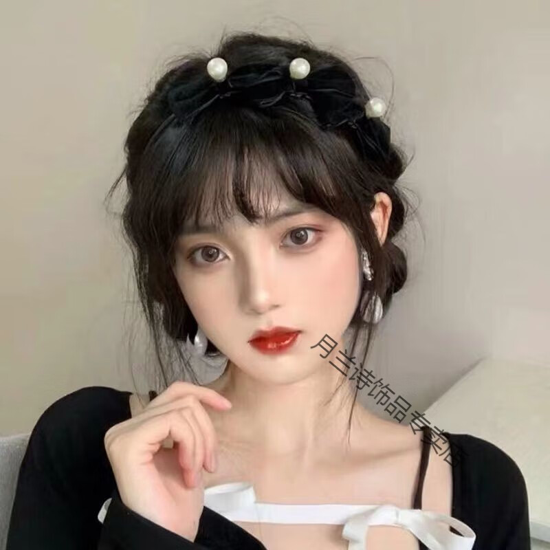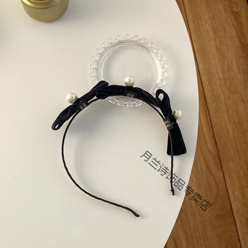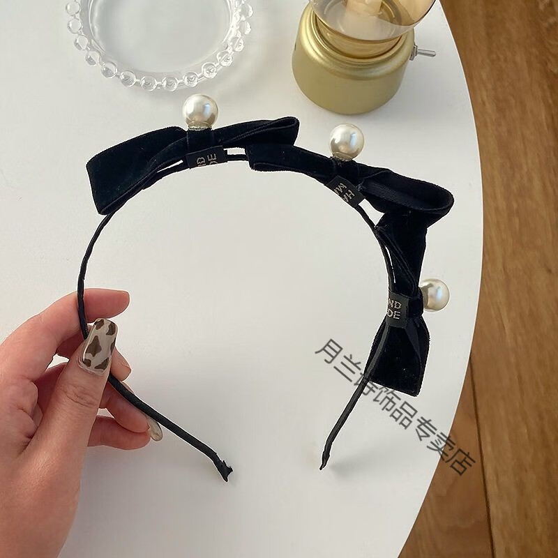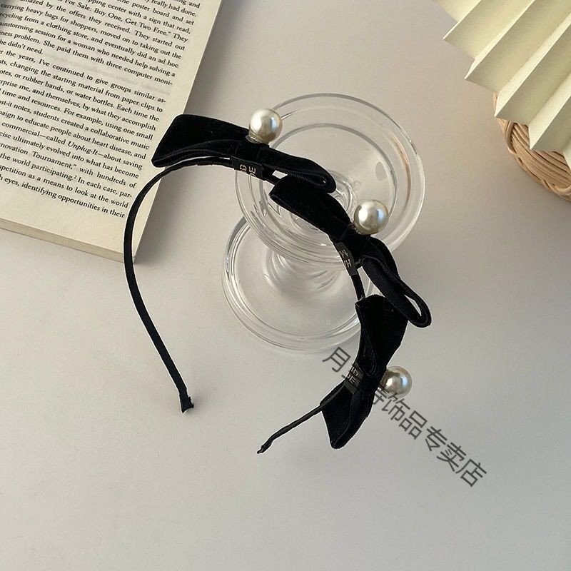 Velvet pearl hoop, Hepburn style bow, elegant decoration, sweet retro French style hoop, simple girl student headband, elegant, delicate and versatile. One black pearl hoop.
