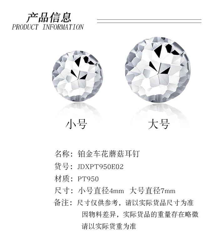 Junhong Platinum PT950 earrings, embroidered mushroom earrings, platinum ear hooks, platinum earrings, women's ear buckles, women's Valentine's Day gift, platinum Pt950 embroidered mushroom earrings, a pair (diameter about 7MM)