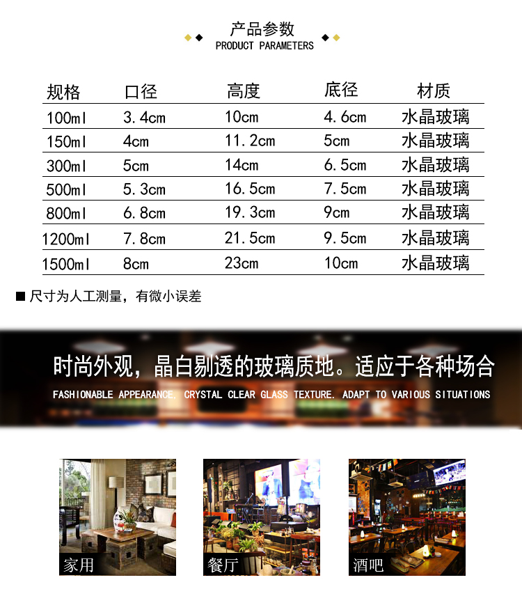 MARTIGUES crystal glass liquor dispenser, flask, small household size, foreign wine, red wine decanter, hotel use 500ml, straight style (with scale) 500ml