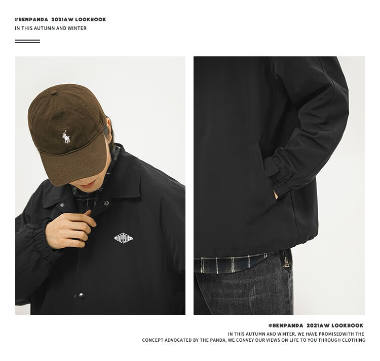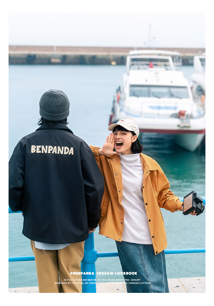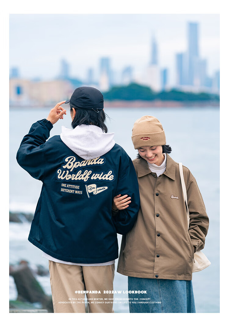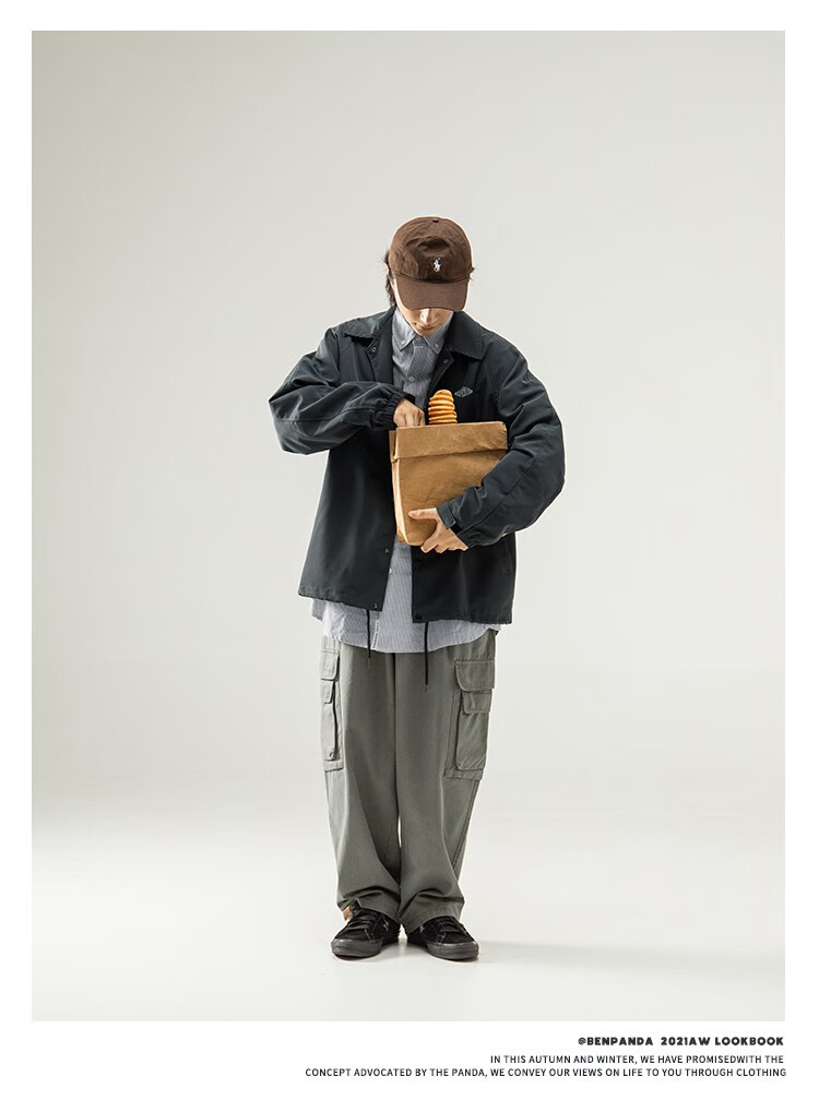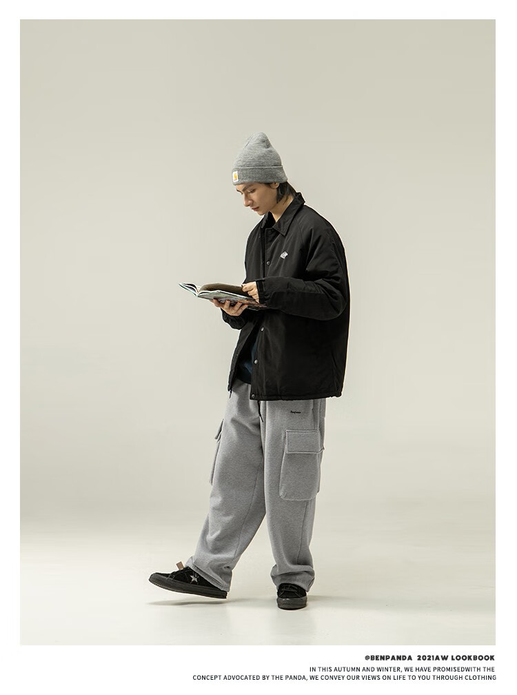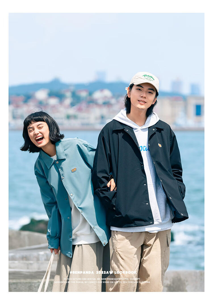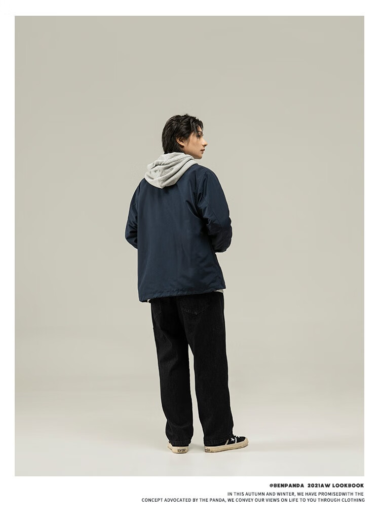 Panda Ben (ben.panda) Pu Yixing's same style jacket men's coat new work clothes cotton clothes men's trendy ins coaching clothes casual cotton clothes smoke blue (letter embroidery style) M
