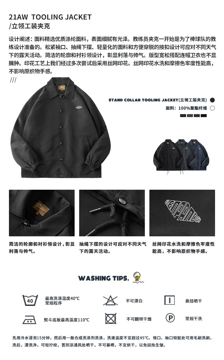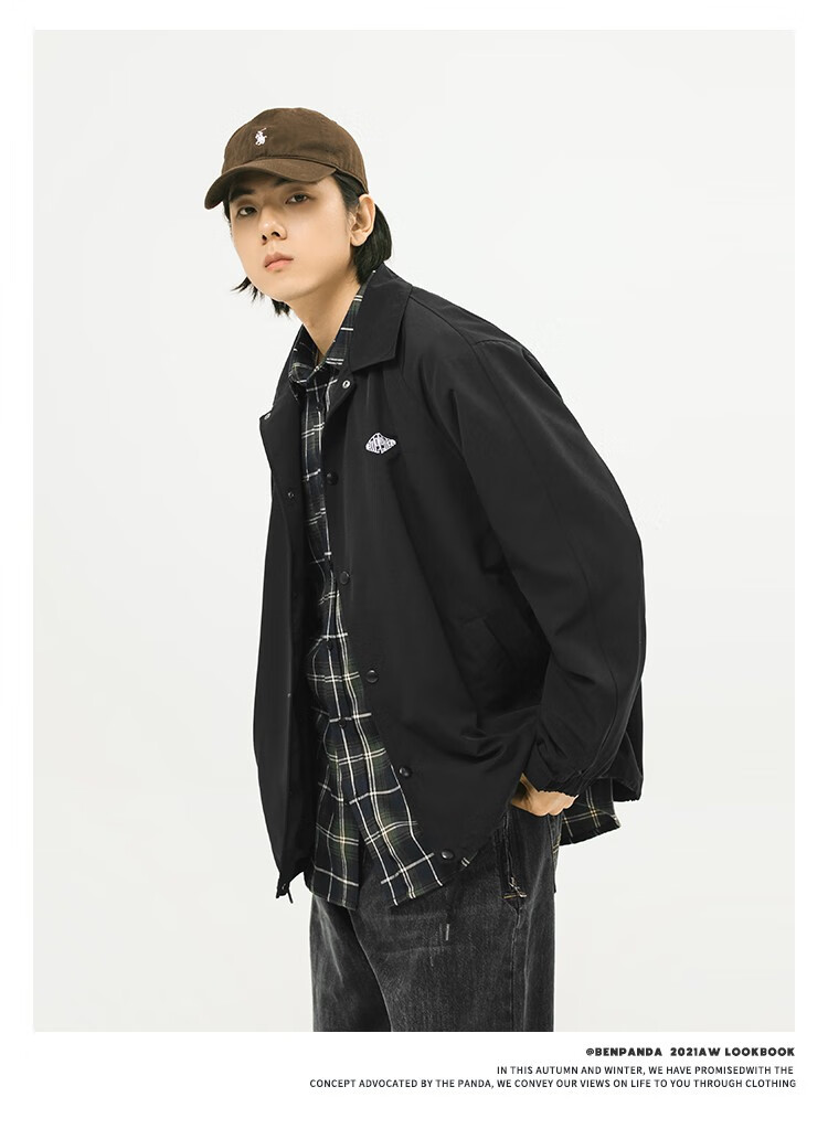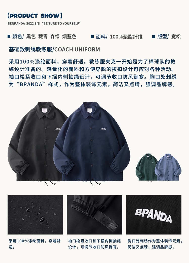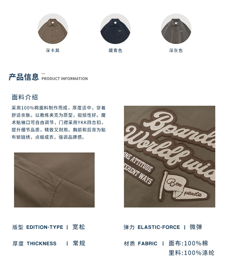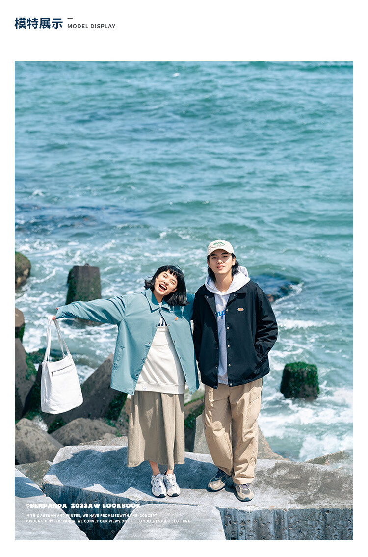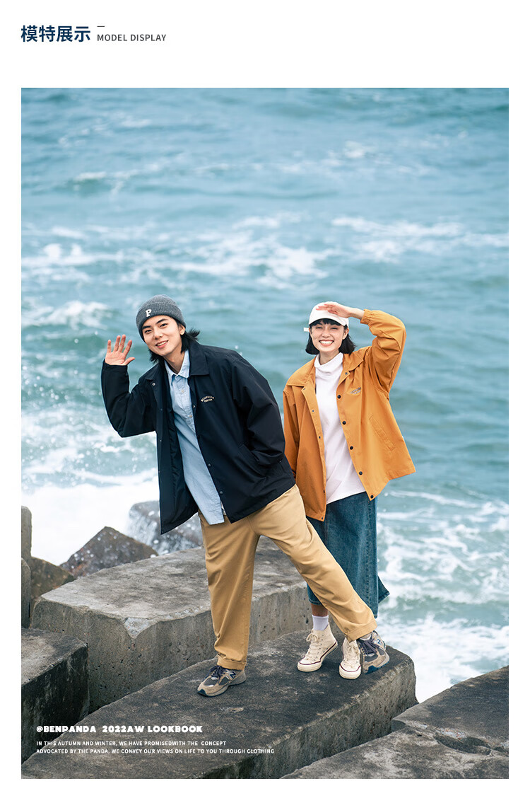 Panda Ben (ben.panda) Pu Yixing's same style jacket men's coat new work clothes cotton clothes men's trendy ins coaching clothes casual cotton clothes smoke blue (letter embroidery style) M