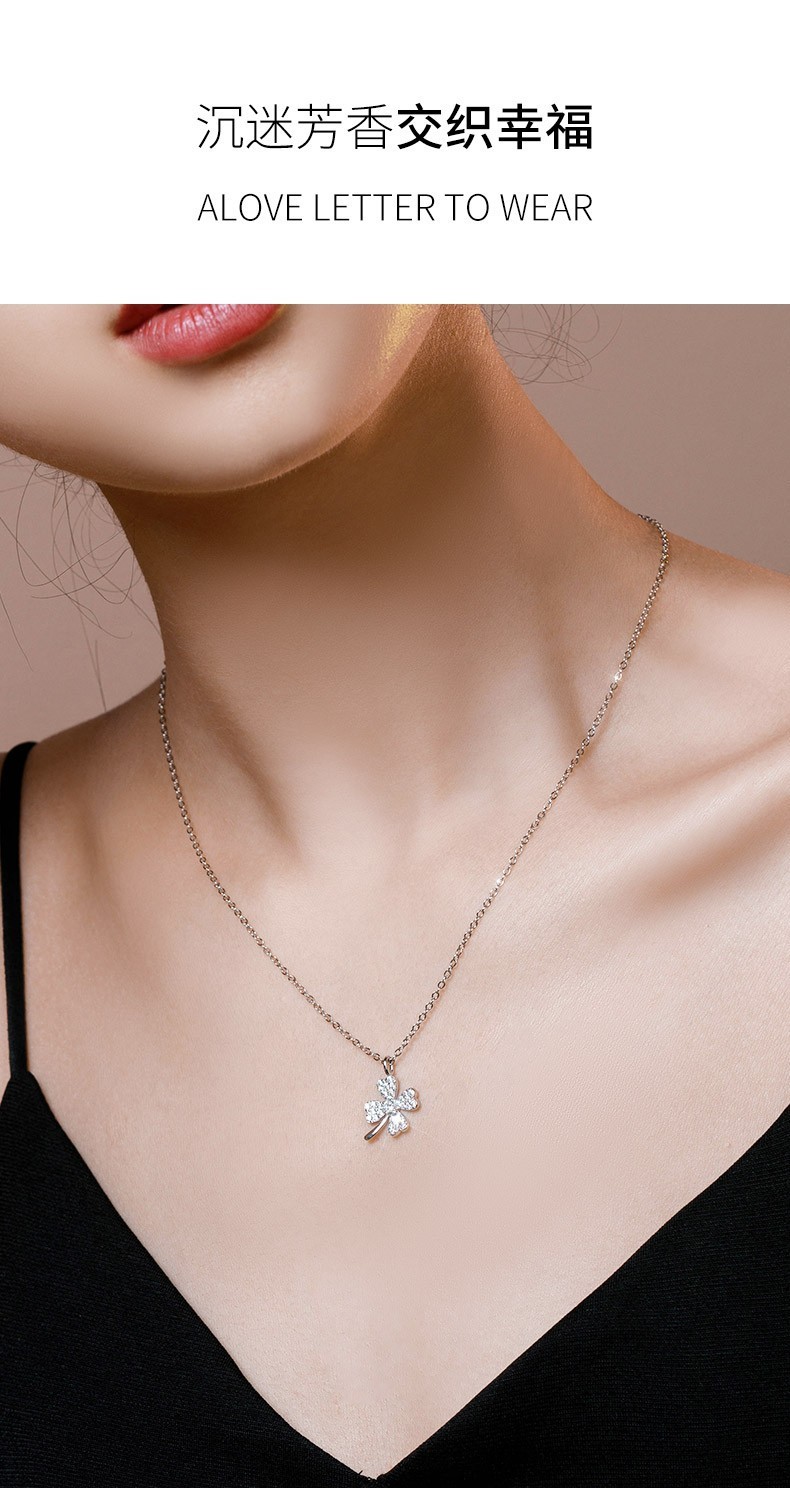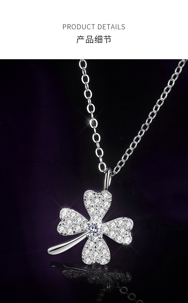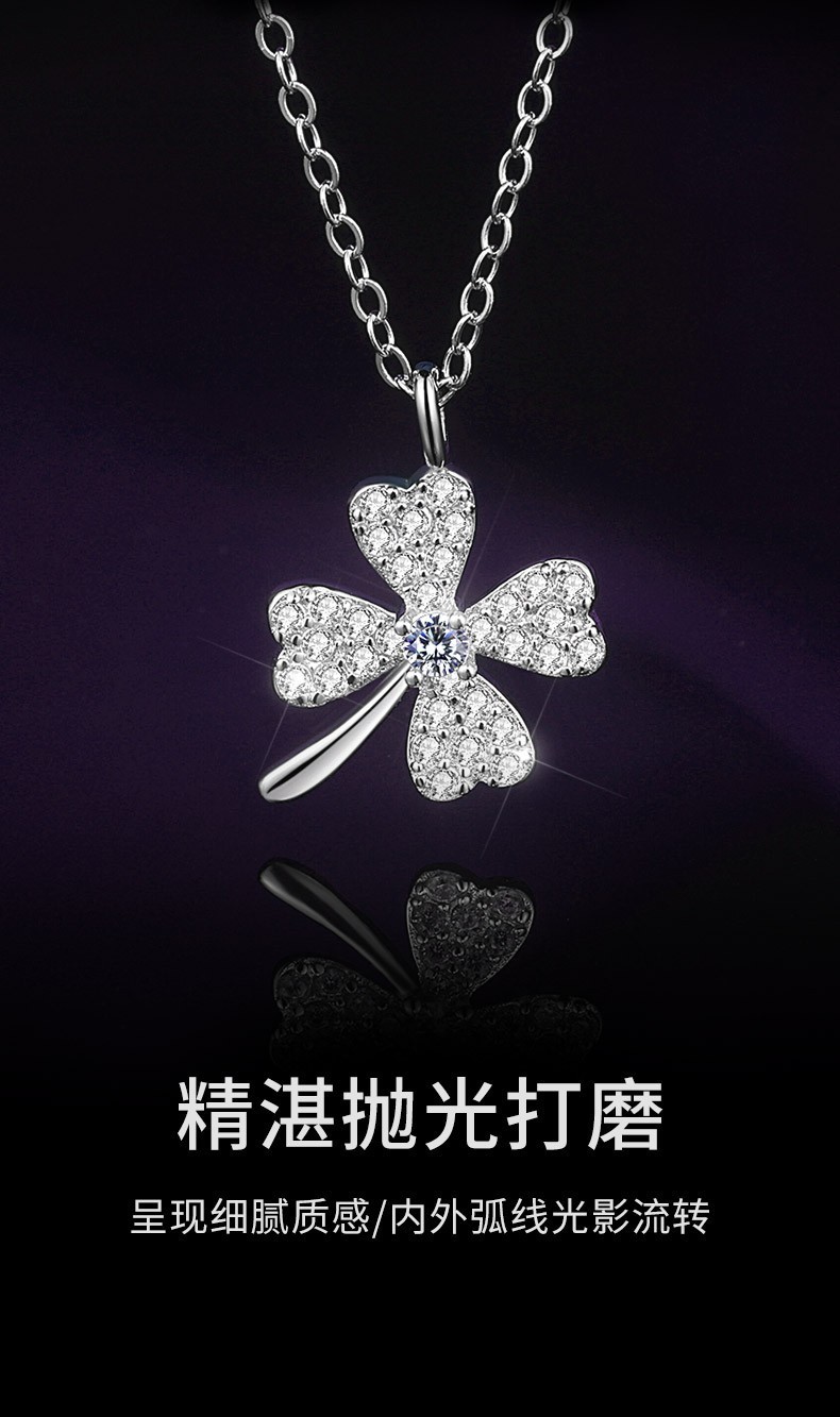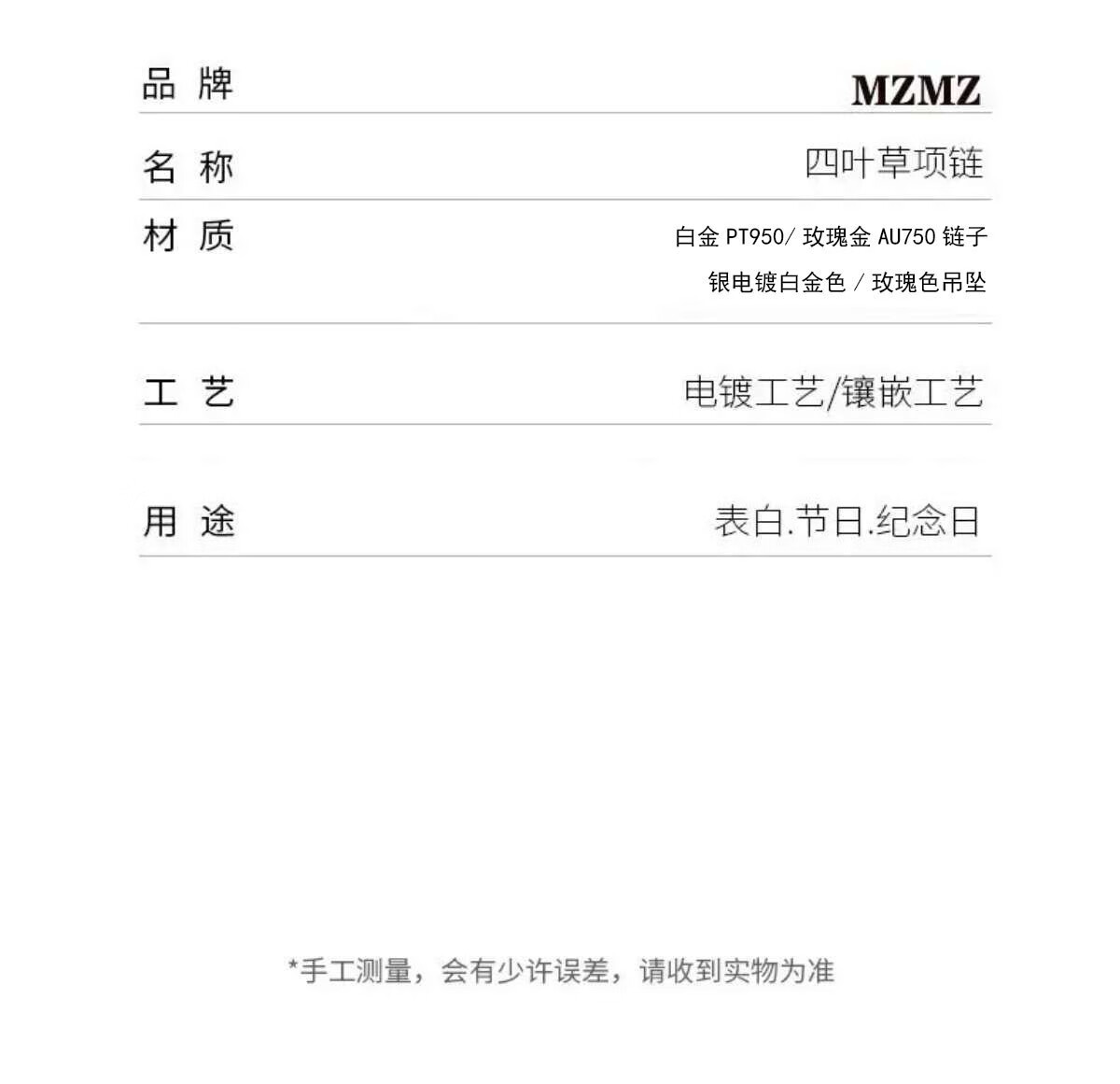 MZMZ platinum necklace for women with four-leaf clover set with moissanite PT950 platinum clavicle chain Valentine's Day birthday gift for girlfriend PT950 platinum-lucky four-leaf clover necklace