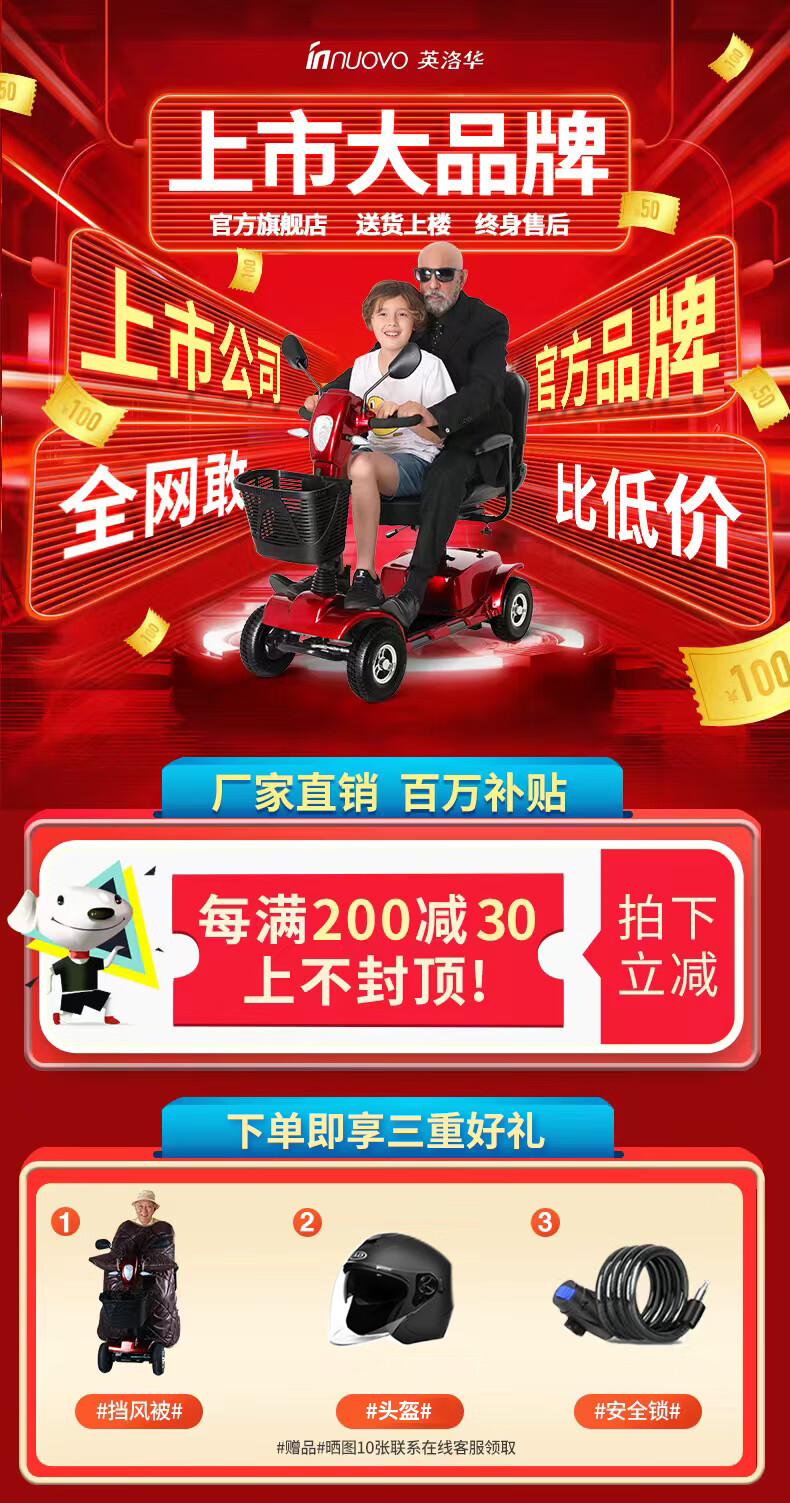 Yingluohua Electric Scooter for the Elderly Folding Lightweight Intelligent Fully Automatic Four-wheel Electric Scooter for the Elderly for the Disabled 3431M Enhanced Model | 12AH Lead + Run 40 Miles