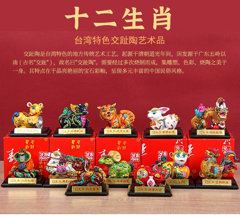 Twelve zodiac ornaments, Cochin pottery, Chinese characteristics small gifts for foreigners, cartoon birthday gifts for children, zodiac ox