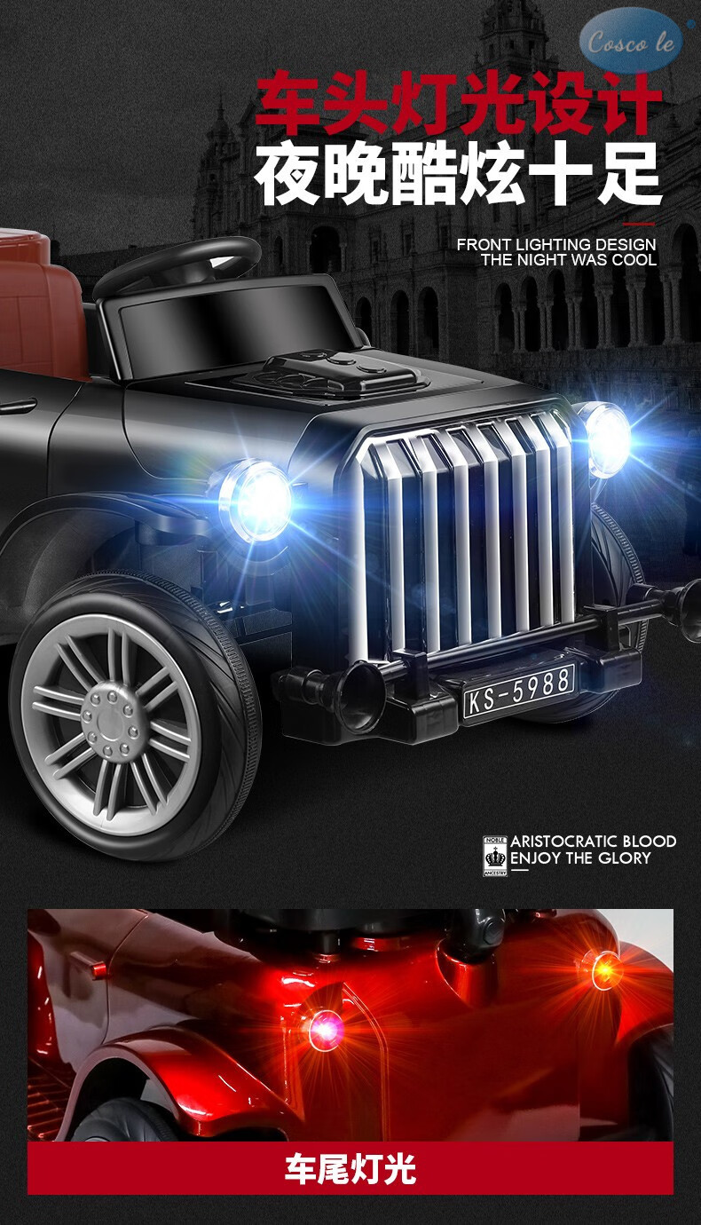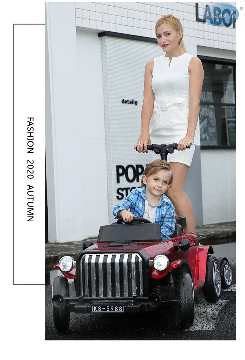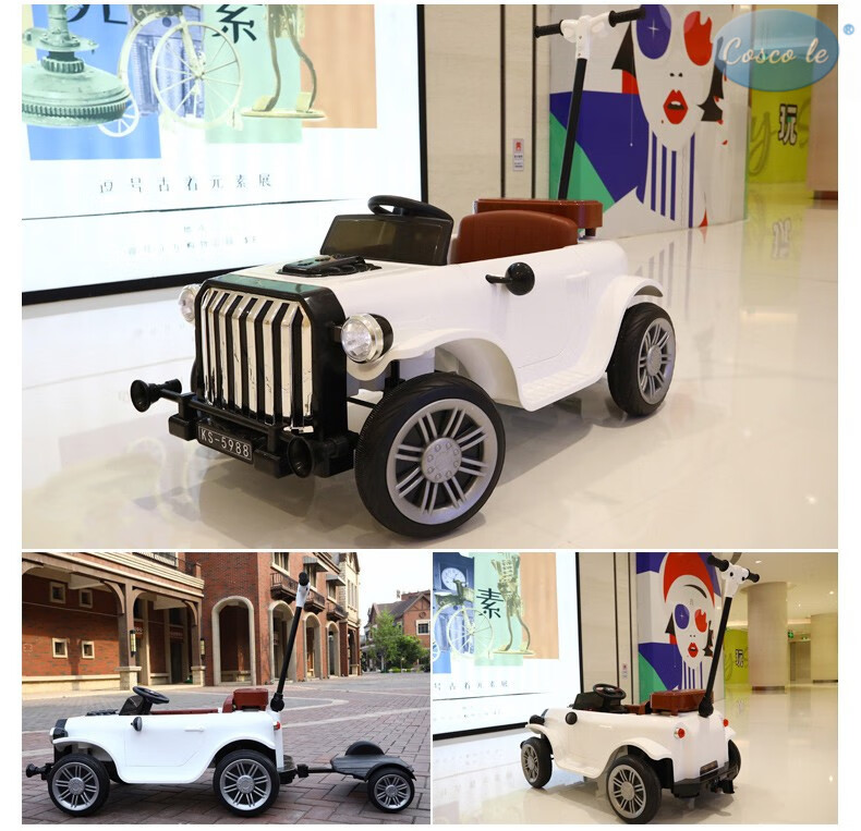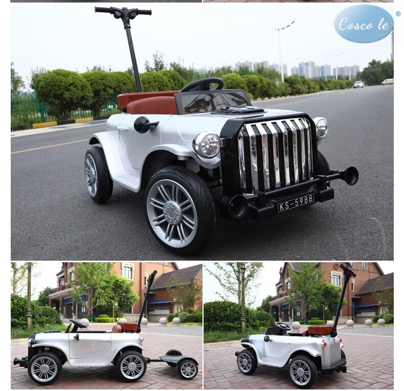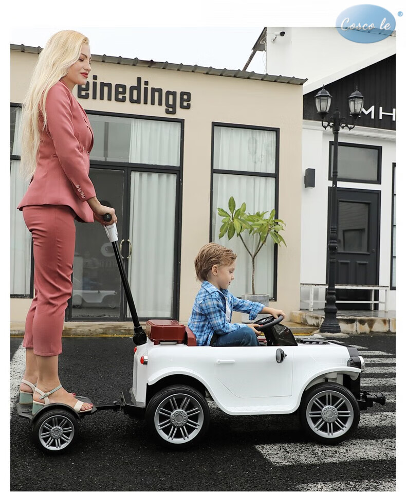 COSCO JUVENI LE German children's electric car four-wheel drive four-wheel remote control swing toy car can be used by adults as a birthday gift for children. White four-wheel drive + swing + parent-child interactive pedal