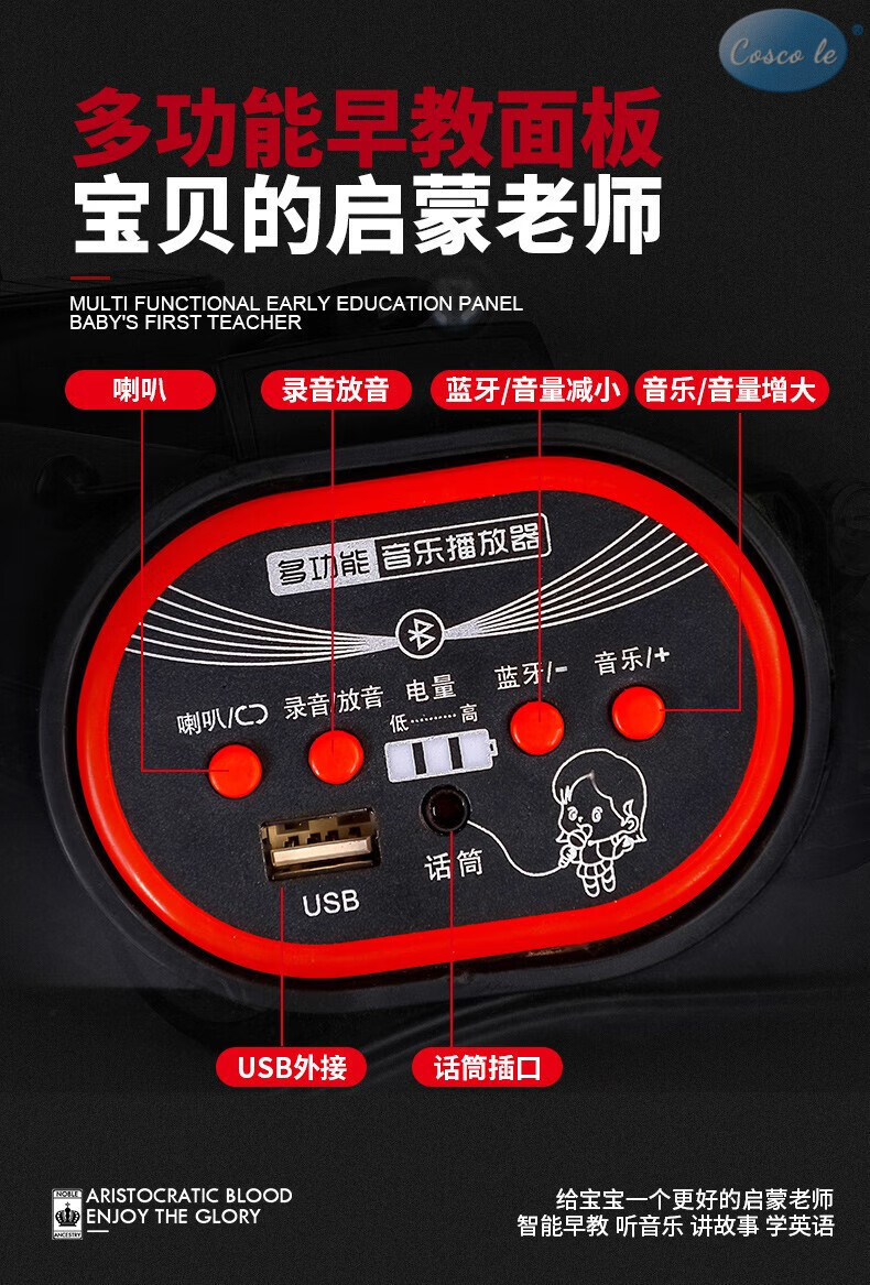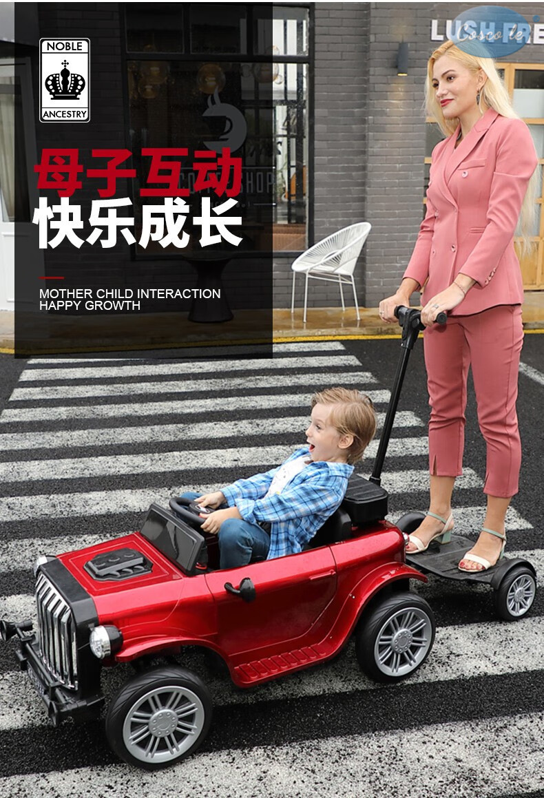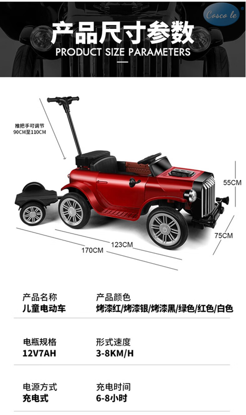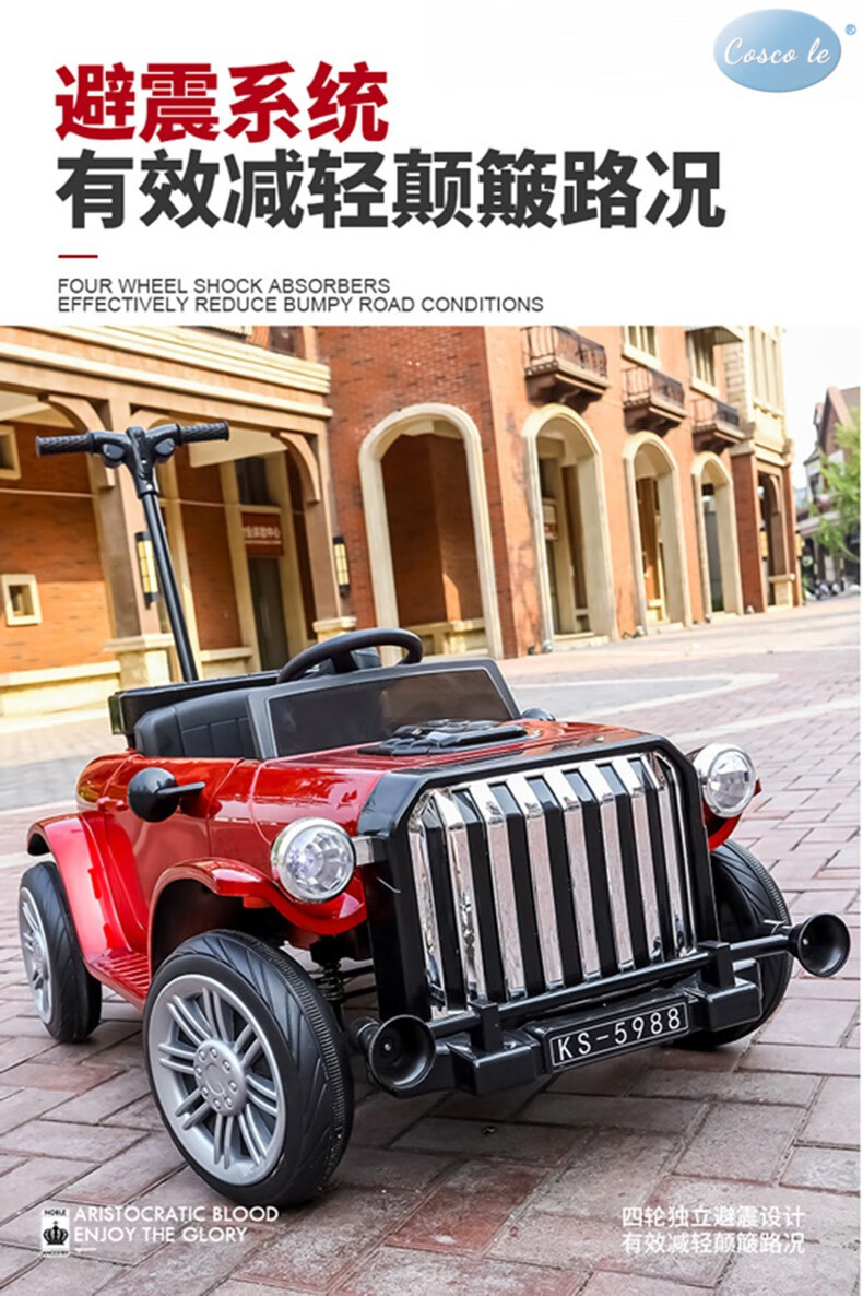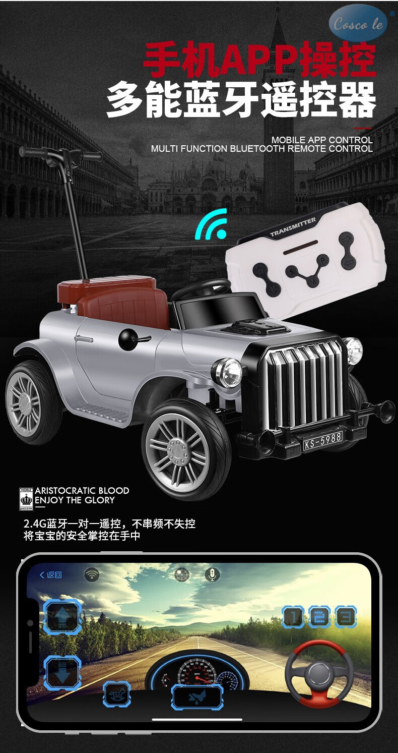 COSCO JUVENI LE German children's electric car four-wheel drive four-wheel remote control swing toy car can be used by adults as a birthday gift for children. White four-wheel drive + swing + parent-child interactive pedal