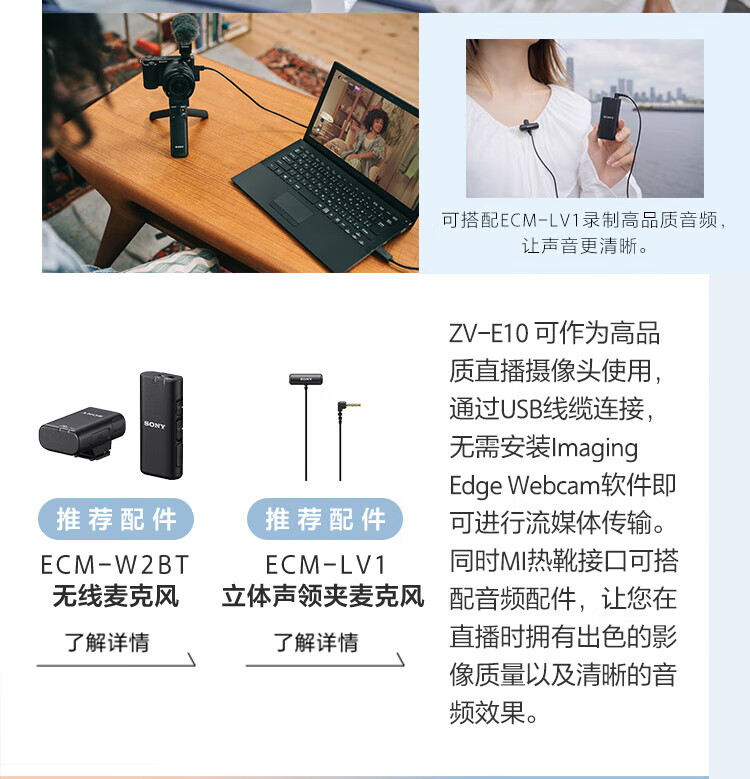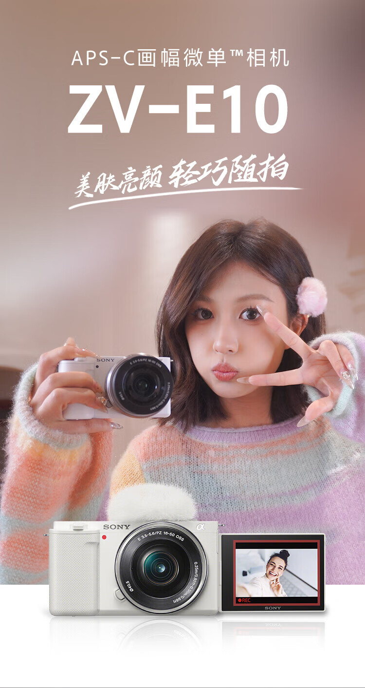 Sony (SONY) ZV-E10K half-frame mirrorless camera, skin-beautifying photo, precise focus, VLOG APS-C format, zve10 ZV-10 ZV-E10K black set, free 128G card + leather case + camera bag, official standard configuration
