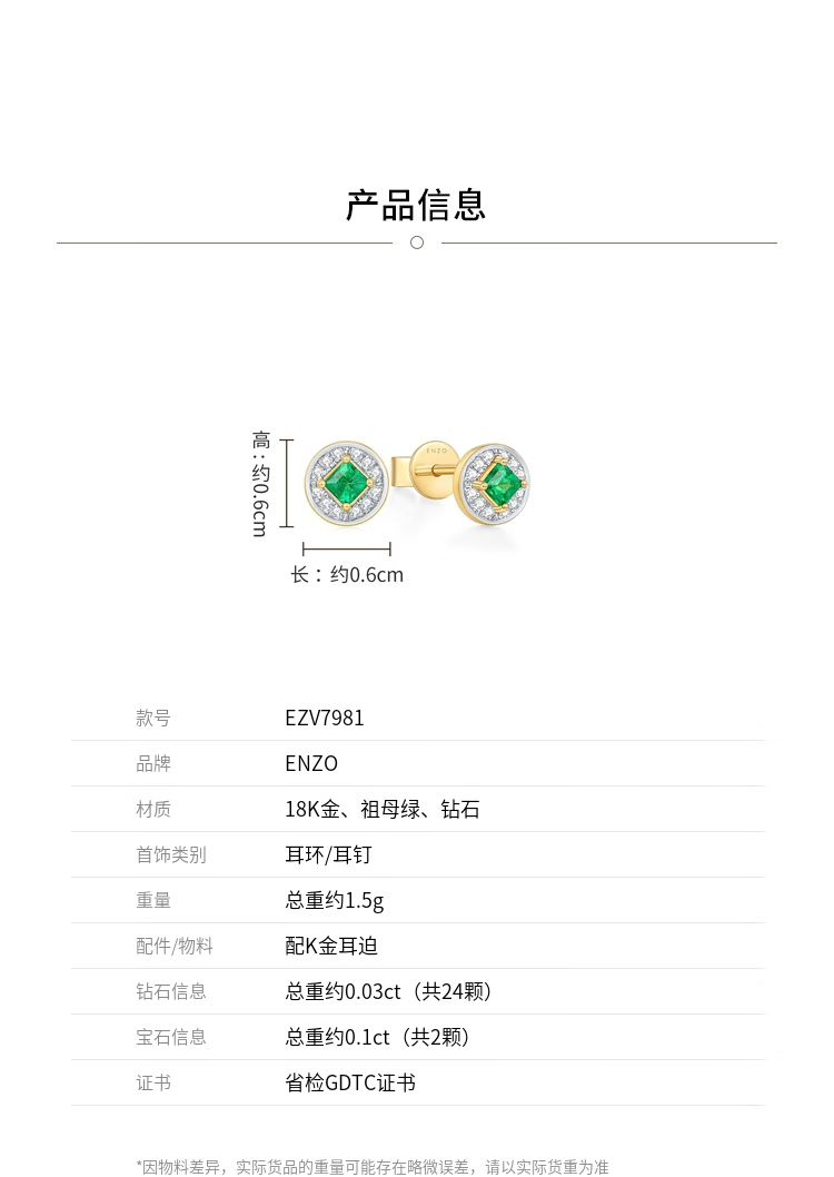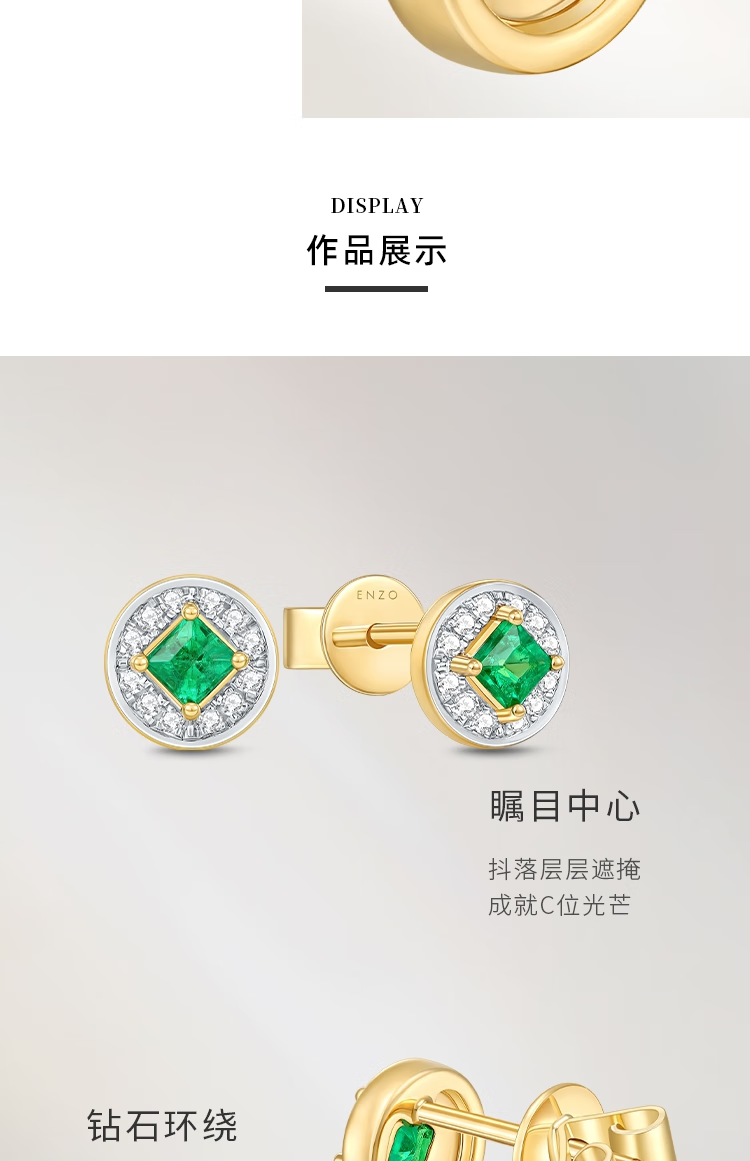 The same 18K gold emerald diamond stud earrings from Chow Tai Fook ENZO mall as a gift for mother EZV7981 EZV7981