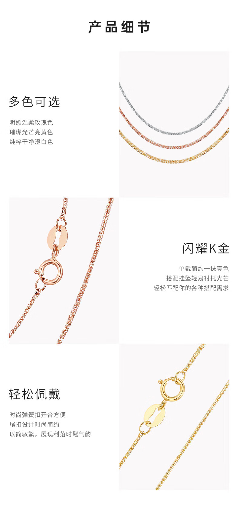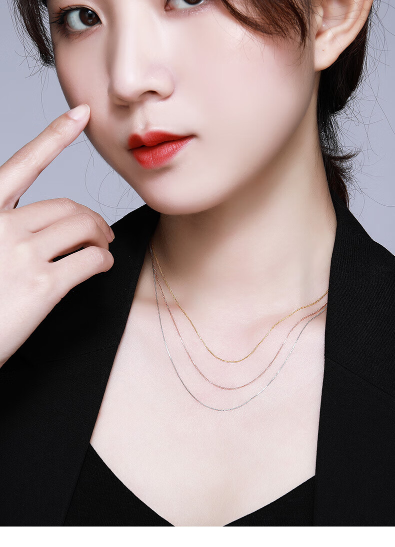 Trendy Acer 18K gold necklace for women, colored gold plain chain, O-shaped chain, clavicle chain, versatile chain, birthday gift for girlfriend, F yellow 18K - chain about 45cm