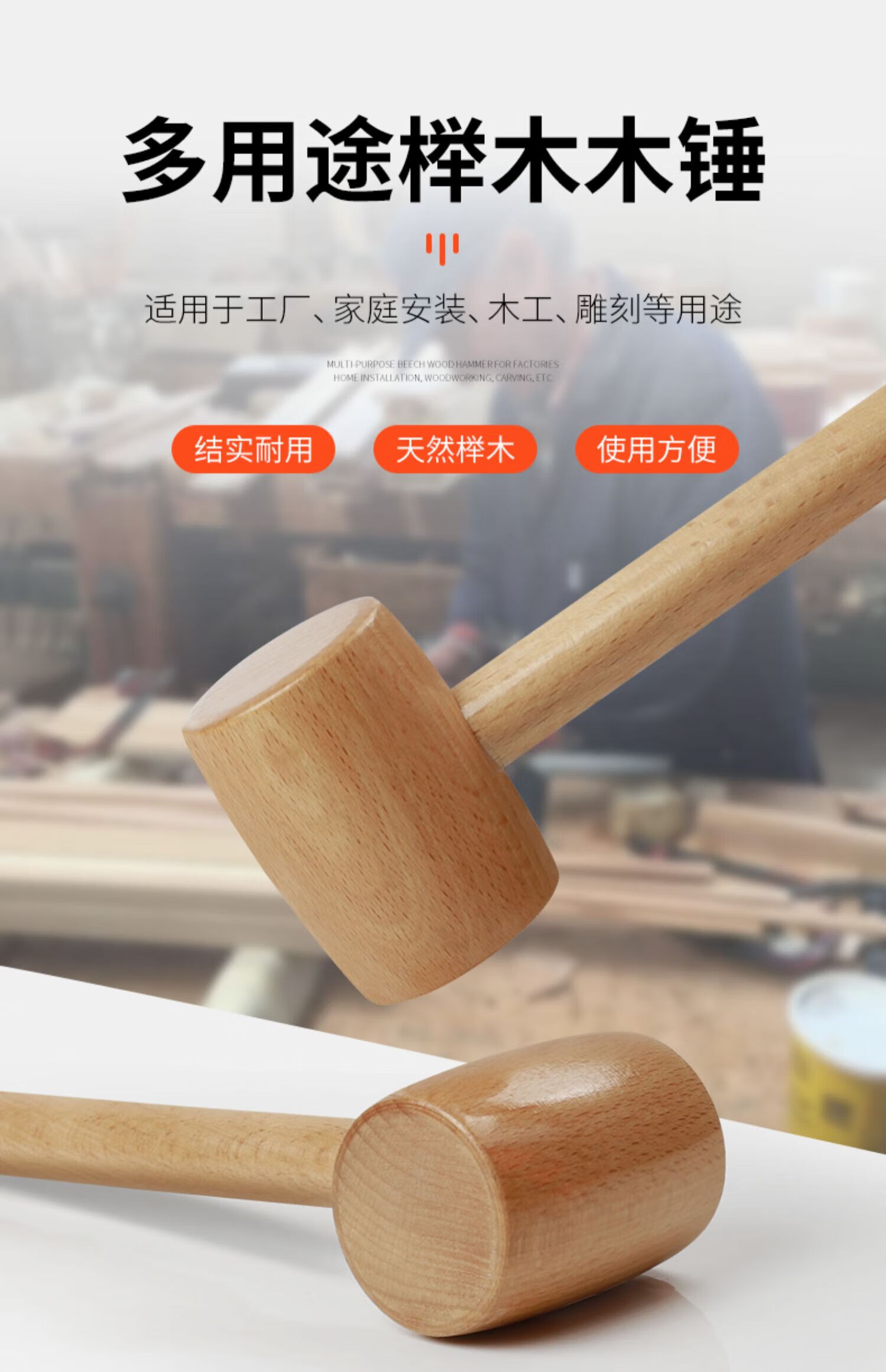 Jinmange woodworking tools beat the waist and back to install wooden hammer wooden hammer beech hammer solid wood hammer wooden mallet wooden hammer 50x75mm arc large size