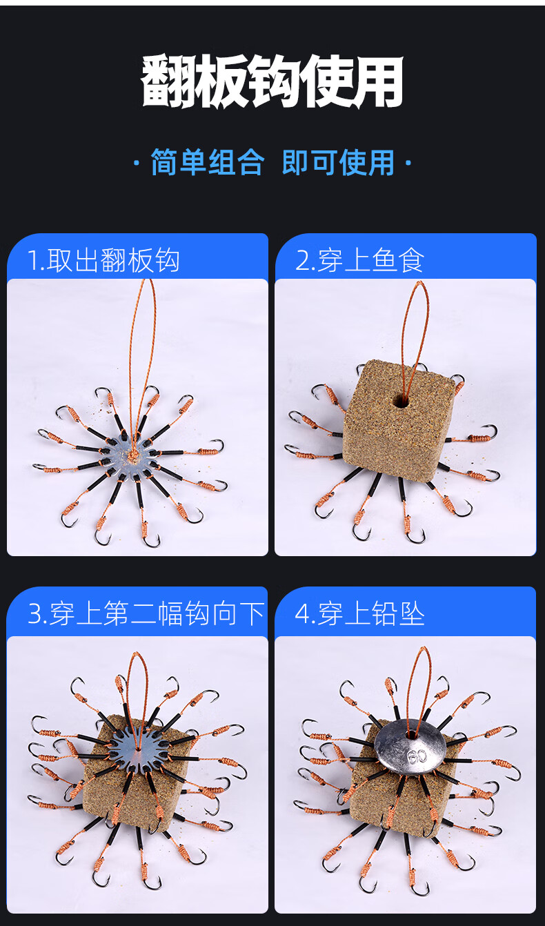 Weituosen flap hook explosion hook set replica fish hook anti-plate sea rod throwing pole silver carp and bighead carp pan hook eight-claw hook No. 12 hook style 5 sets + 40g lead + box + connection 12 hooks each upper and lower