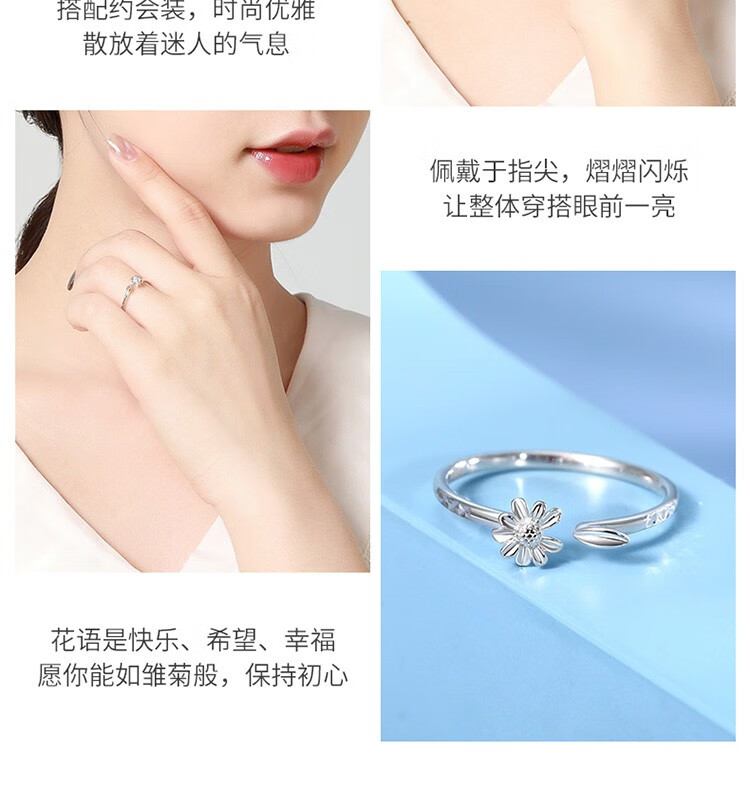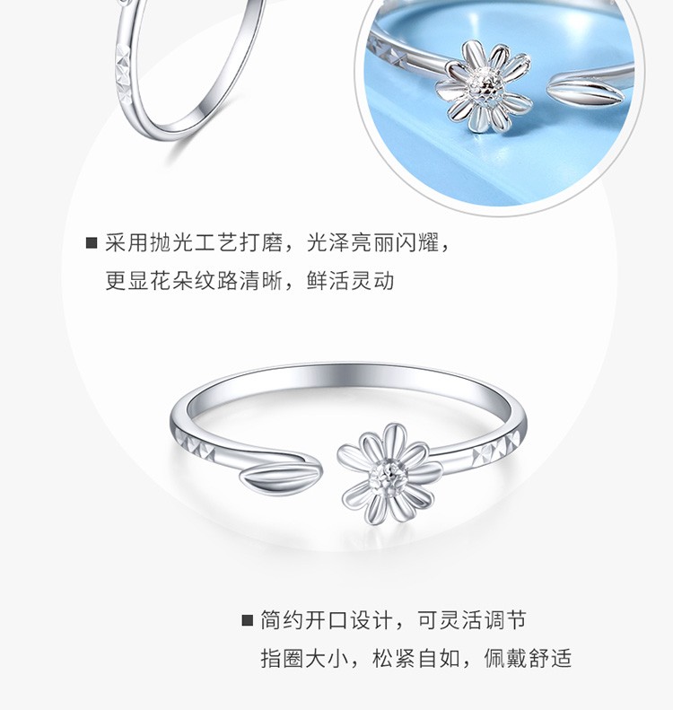 Mengjinyuan Platinum Ring PT950 Love Daisy Ring Platinum Open Finger Ring for Girlfriend, About 1.6g