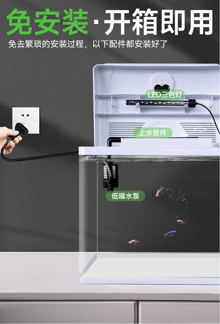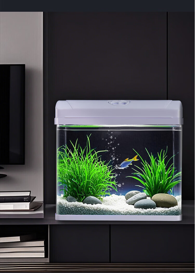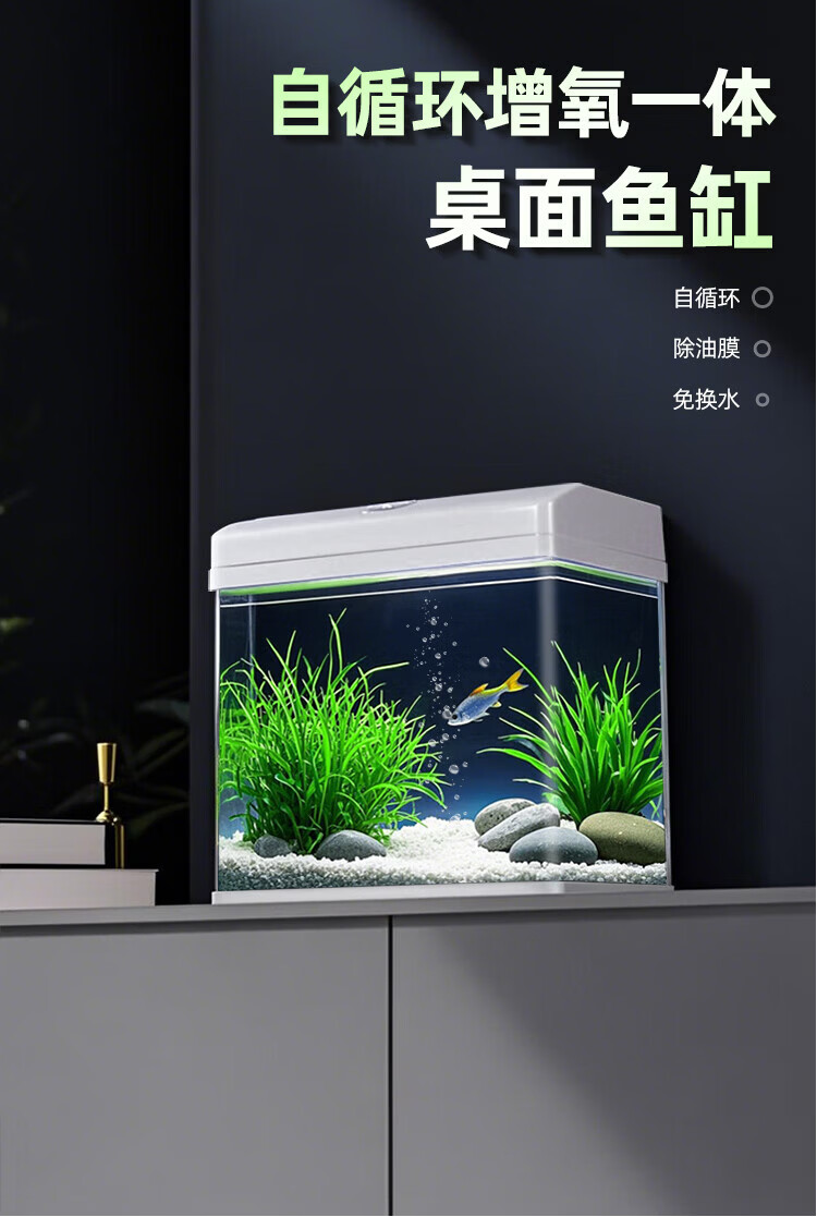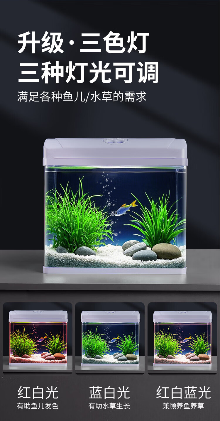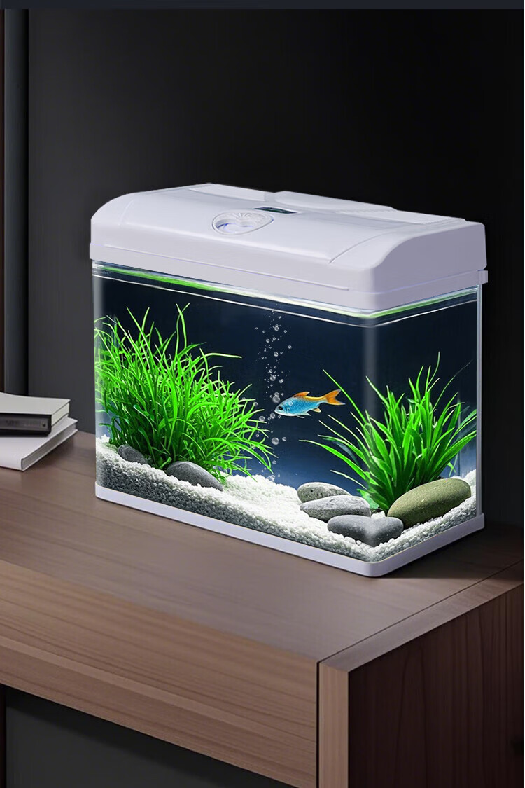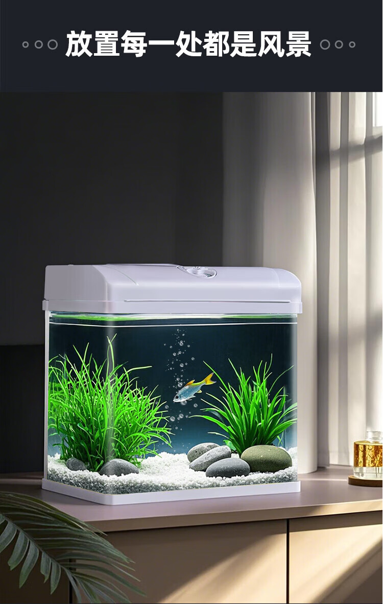 Changrui Small Fish Tank Small Desktop Living Room Household Glass No-Water Change Mini CR230+ Water Orchid Green Bamboo Scenery (Real Aquatic Plants)