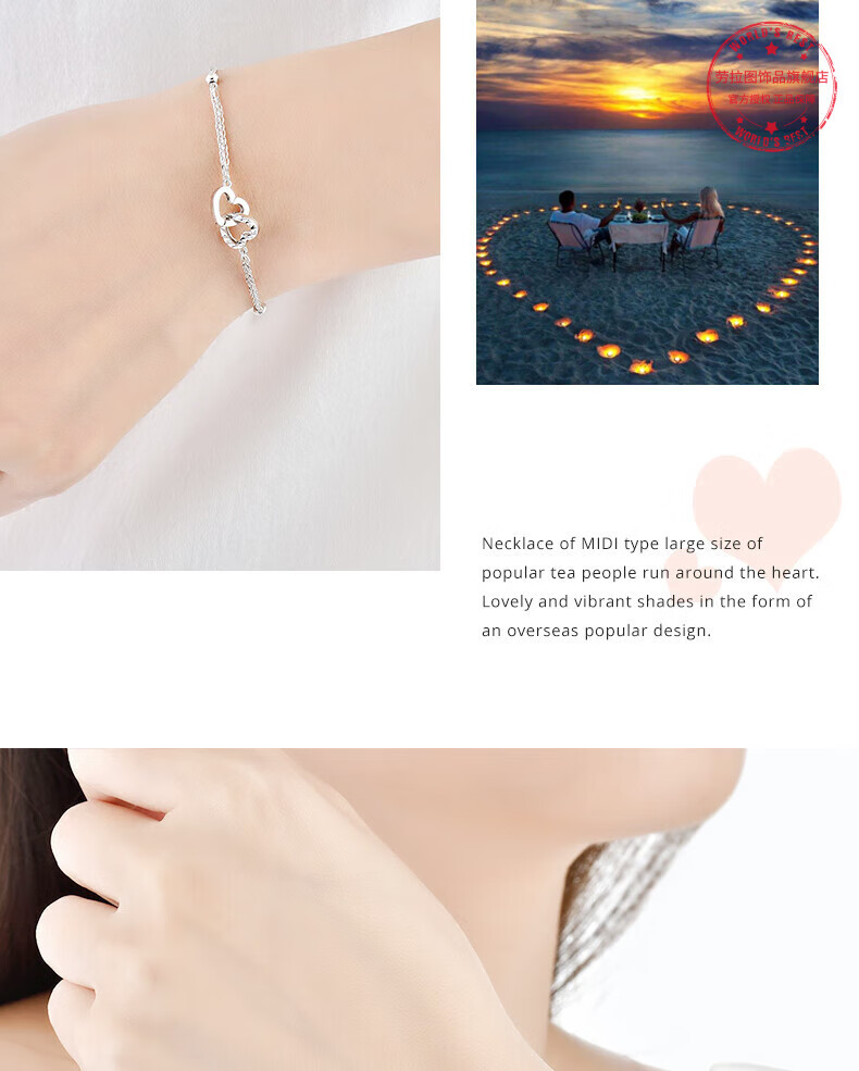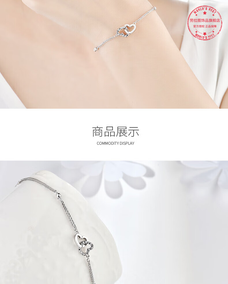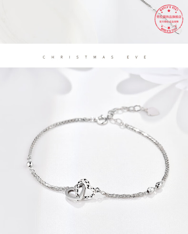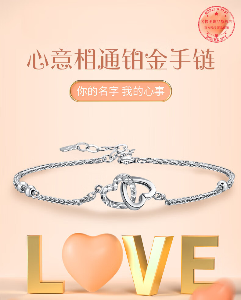 LAOLATU love interlocking platinum bracelet for women PT950 platinum light luxury niche Chinese Valentine's Day gift for girlfriend and wife PT950 platinum heart flash bracelet limited gift box