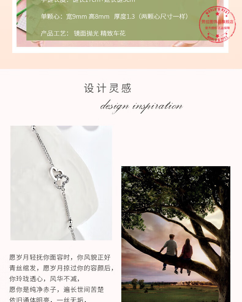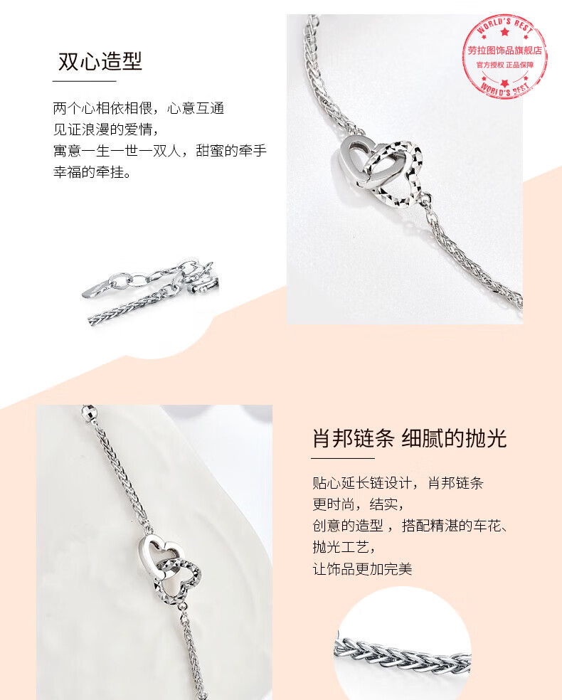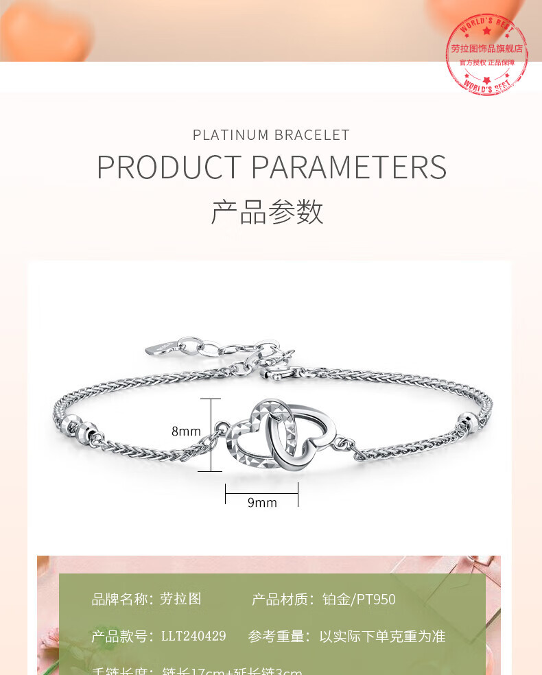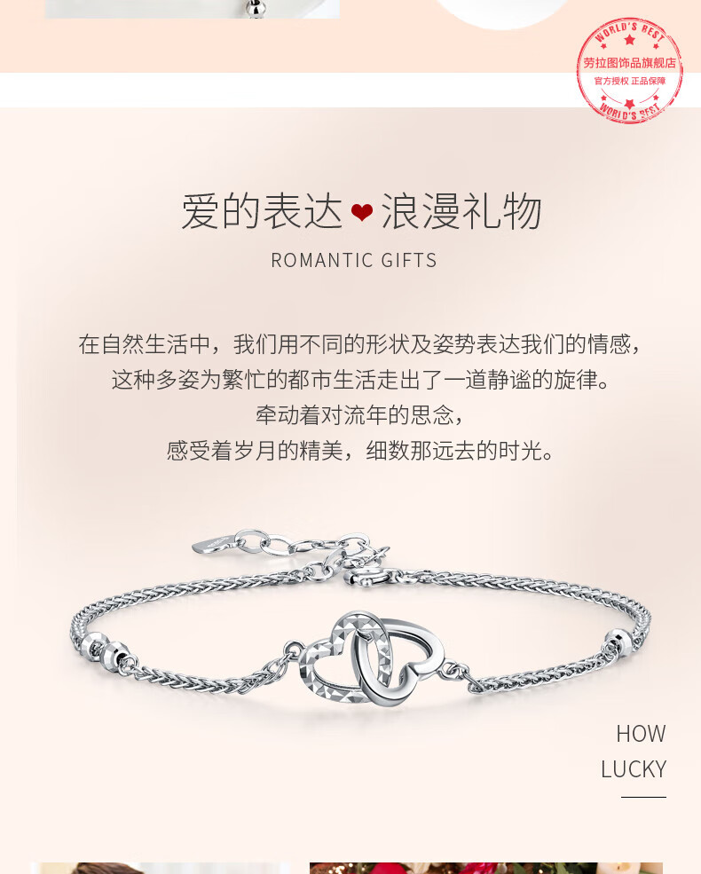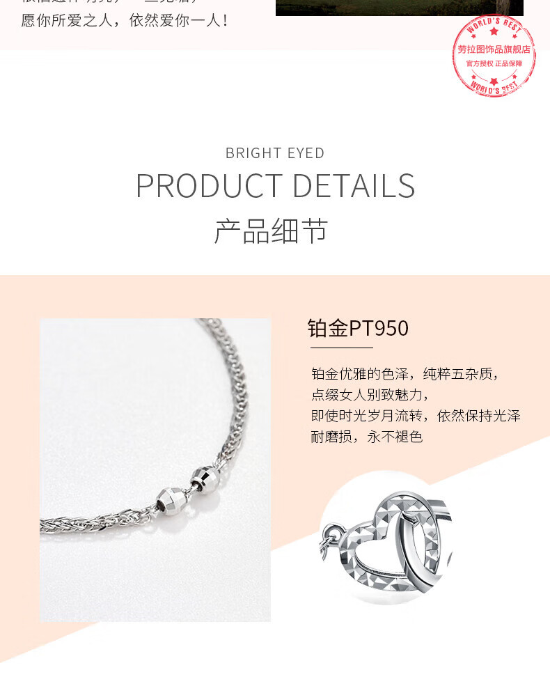 LAOLATU love interlocking platinum bracelet for women PT950 platinum light luxury niche Chinese Valentine's Day gift for girlfriend and wife PT950 platinum heart flash bracelet limited gift box