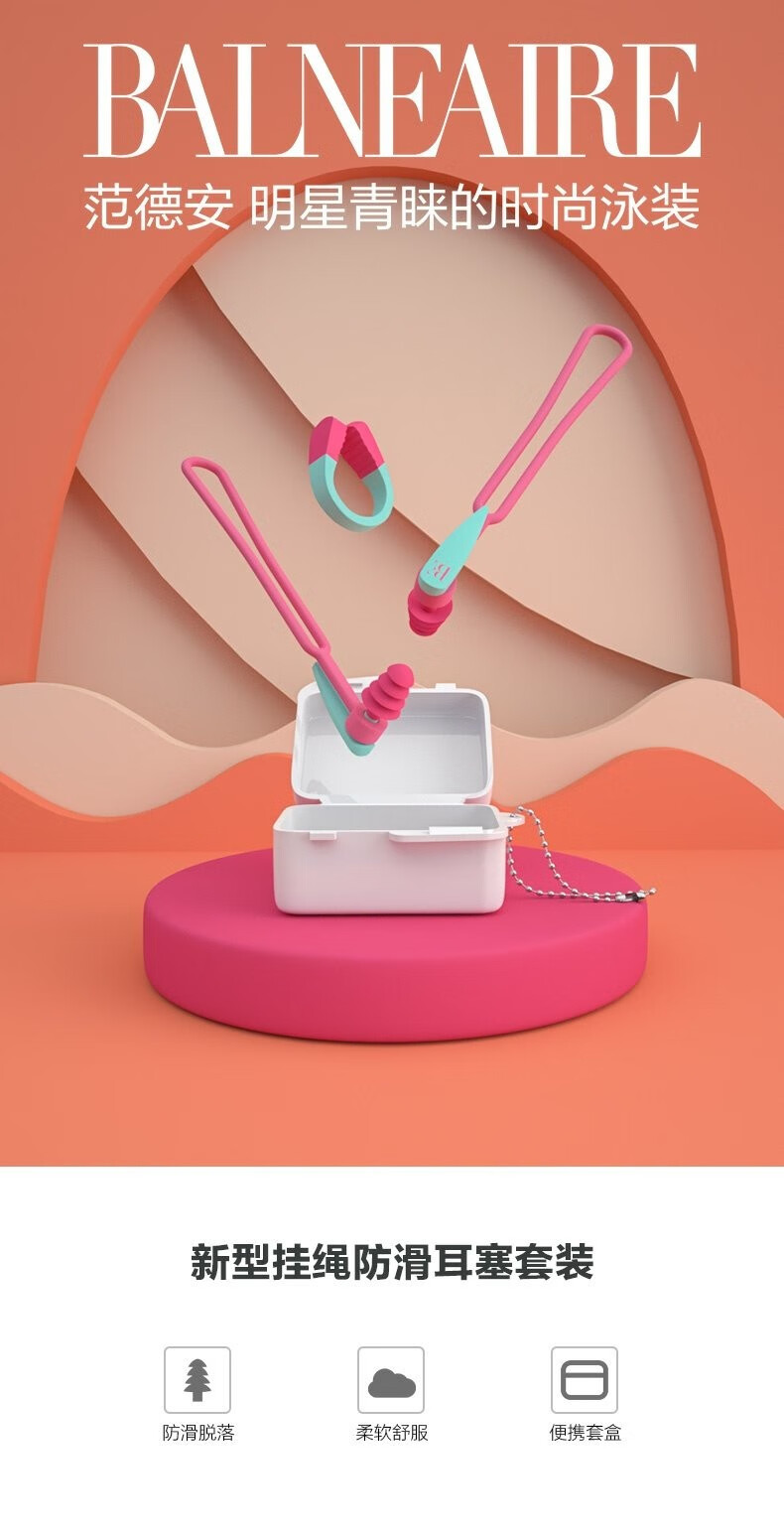 BALNEAIRE nose clip earplug set 3D skeleton anti-slip nose clip soft silicone for smooth swimming, suitable for children BEP09 space white/cool black splicing