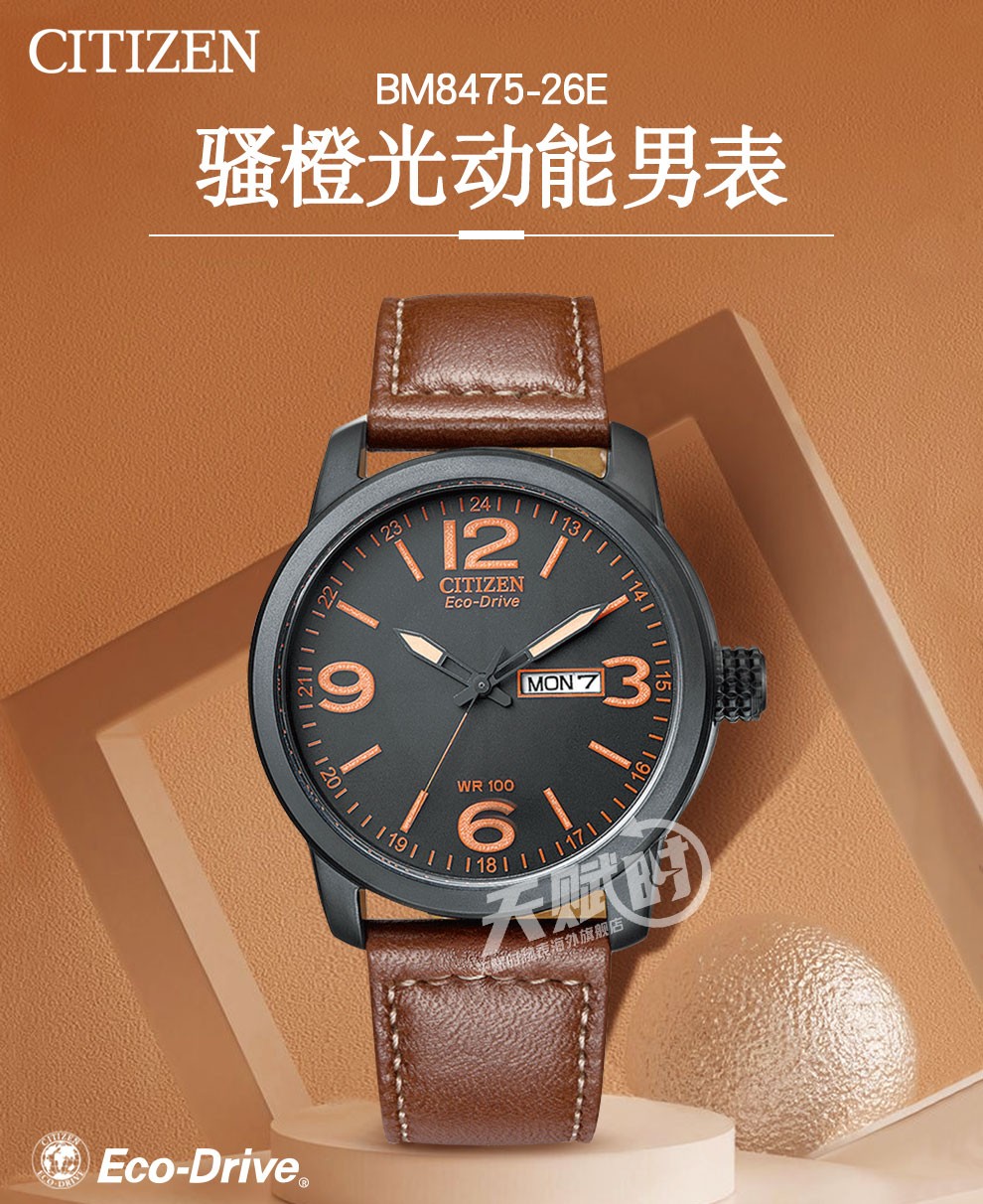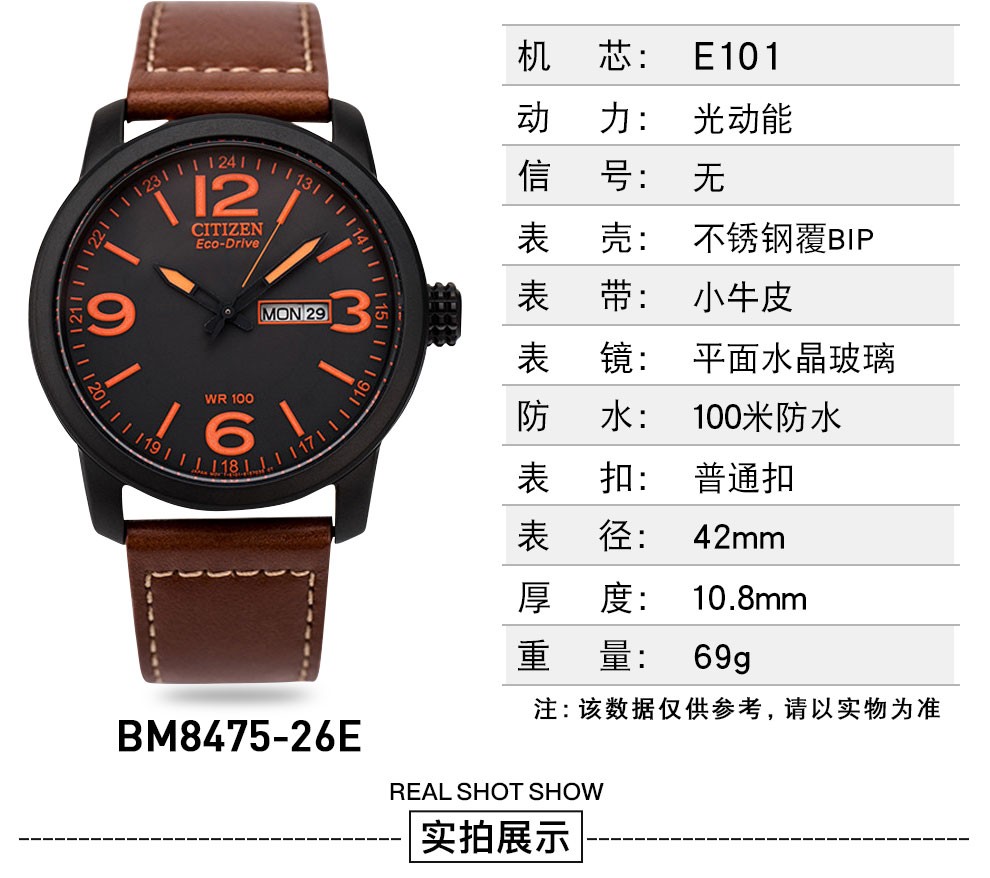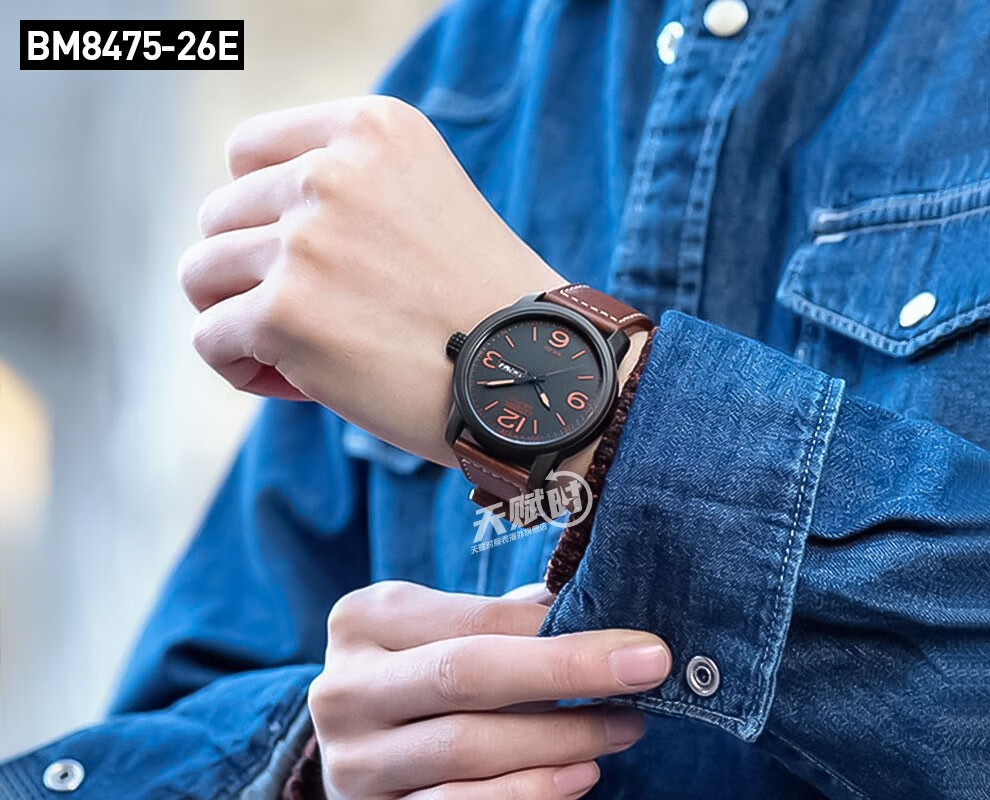 CITIZEN Men's Watch Eco-Drive Orange Fashionable Casual Waterproof Versatile Men's Watch Gift Recommendation BM8475-26E Calfskin