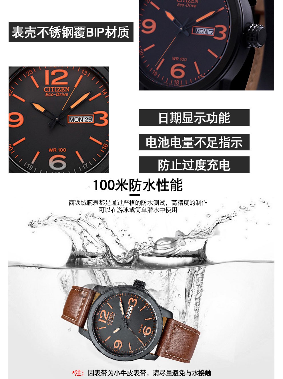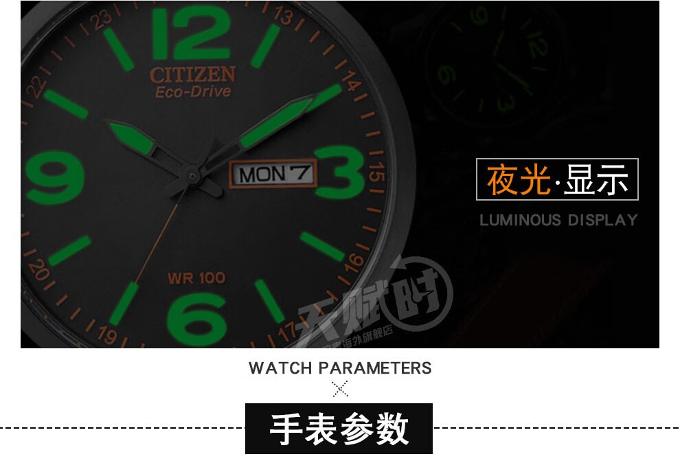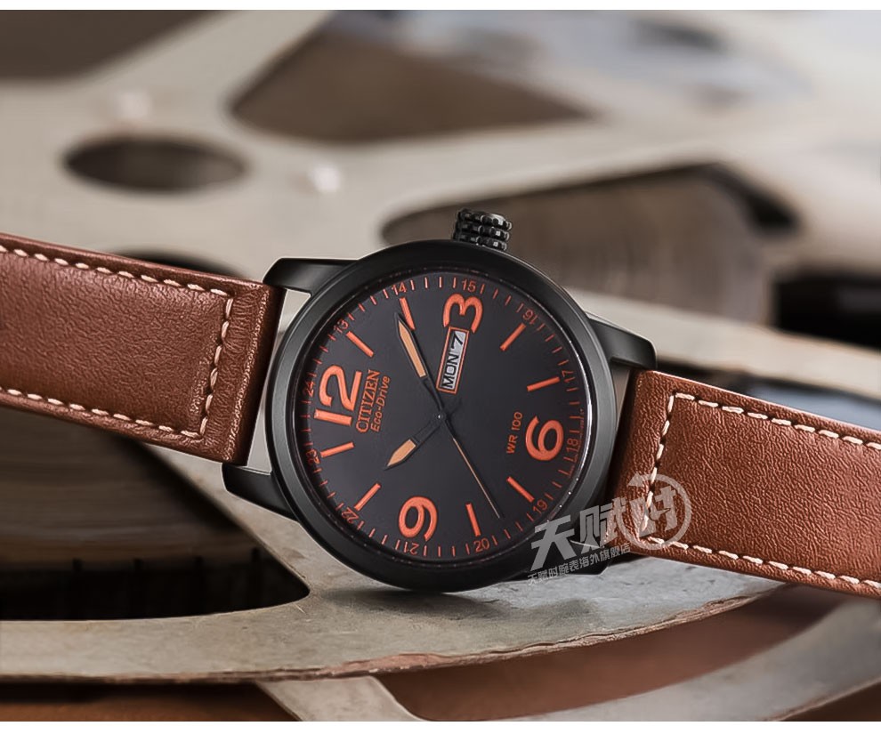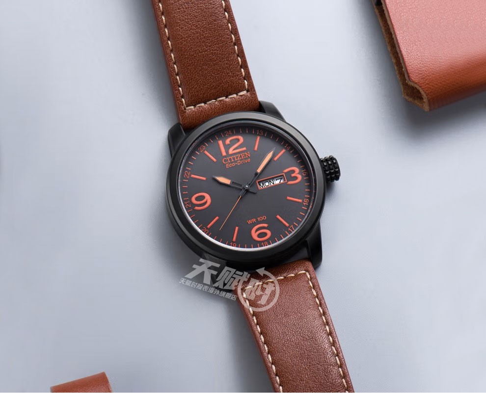 CITIZEN Men's Watch Eco-Drive Orange Fashionable Casual Waterproof Versatile Men's Watch Gift Recommendation BM8475-26E Calfskin