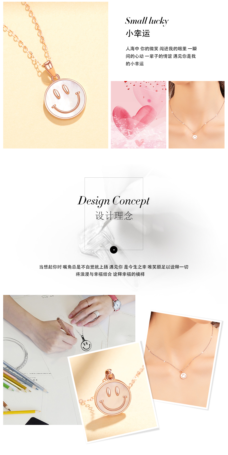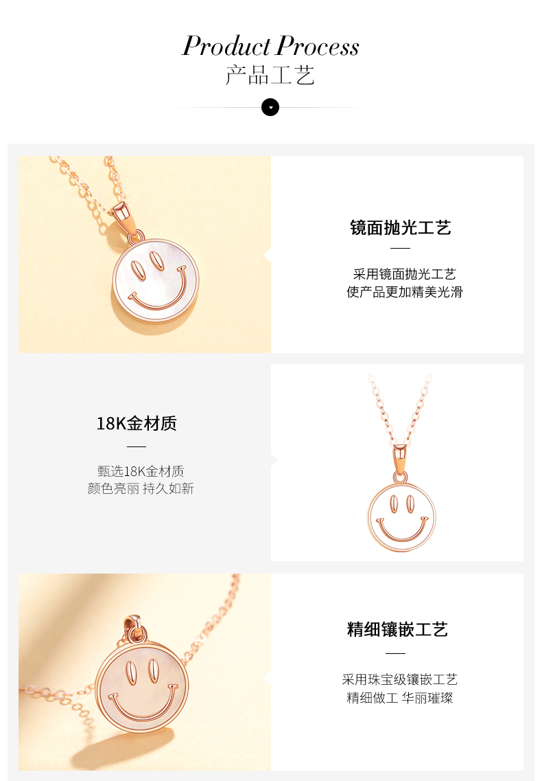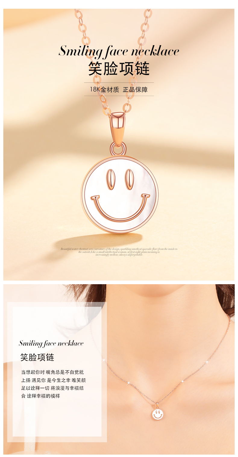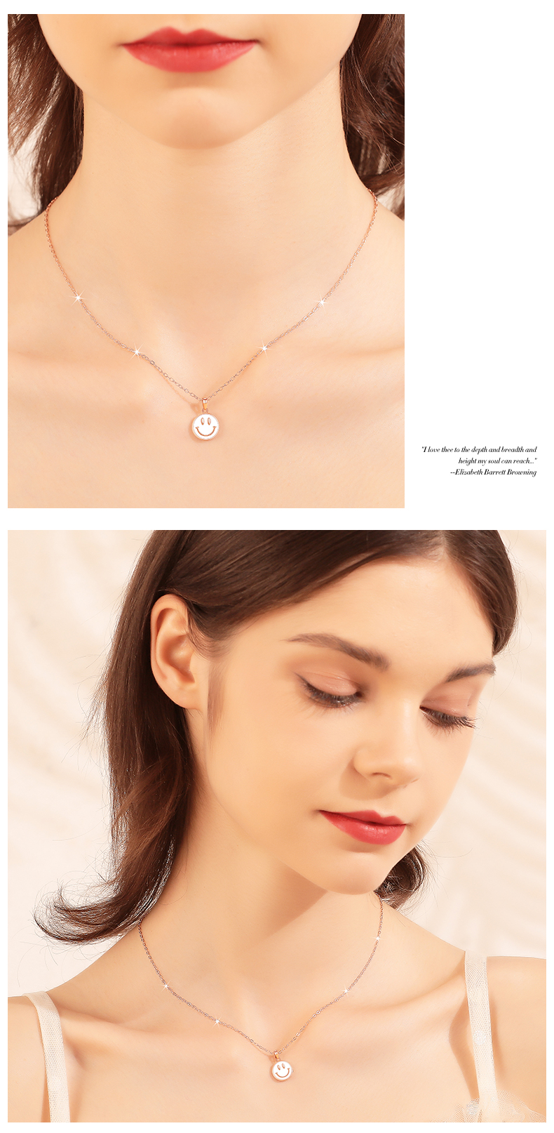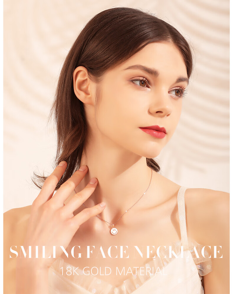 Grace Girl18k Gold Smile Necklace Female Smiley Face Pendant Color Gold Rose Gold Clavicle Chain as a Birthday Gift for Girlfriend 18K Gold Smile Pendant (925 Chain) + Rose Gift Box