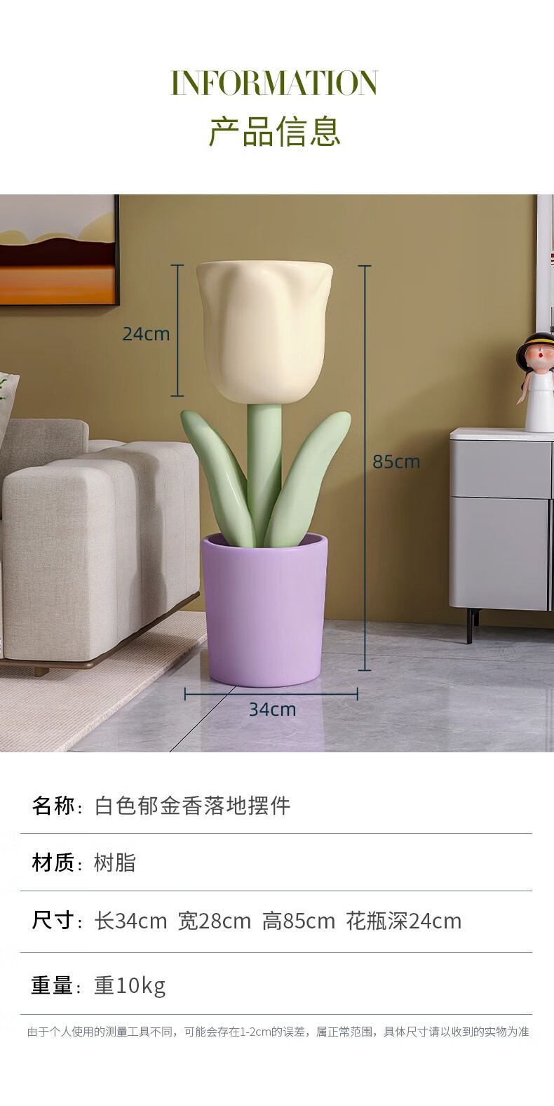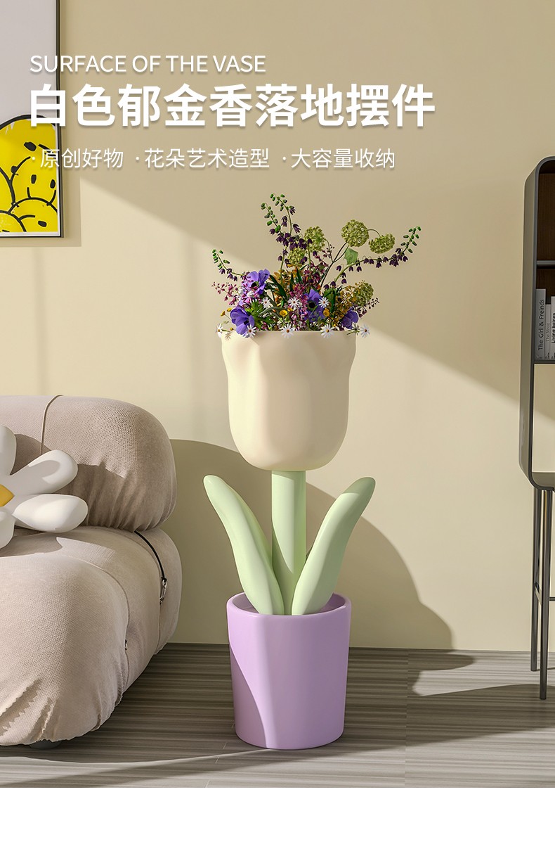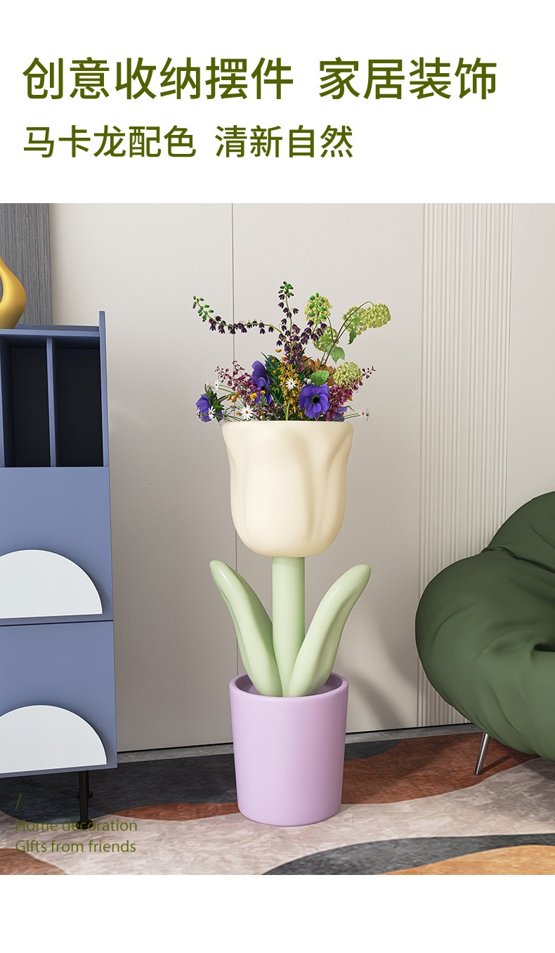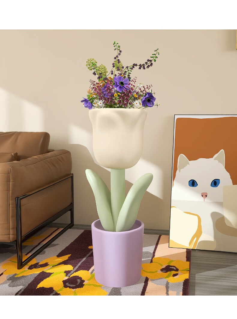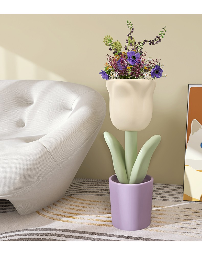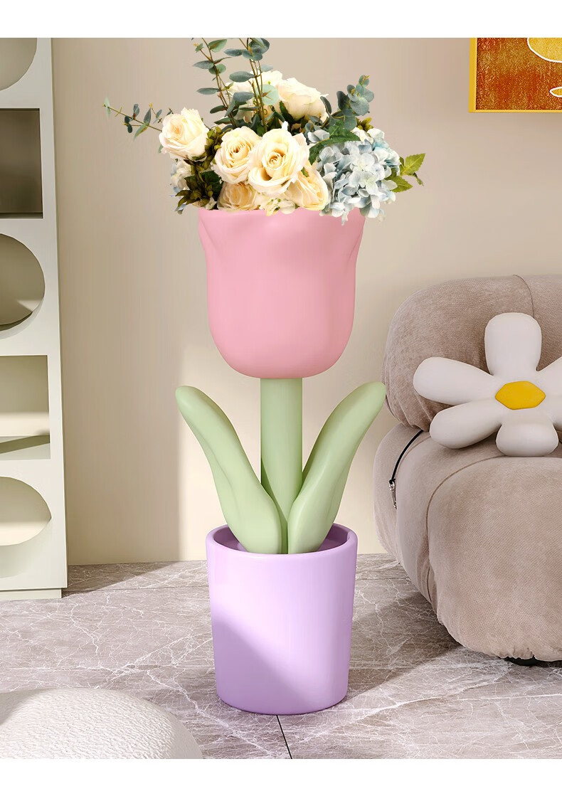 First sight of Nordic tulip floor-standing ornament vase in the living room next to the TV cabinet Internet celebrity small fresh opening gift flower pot Tulip floor-standing storage vase