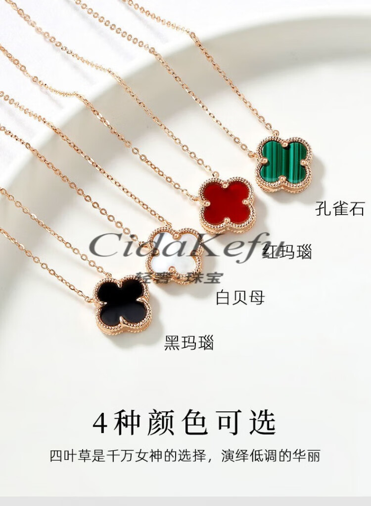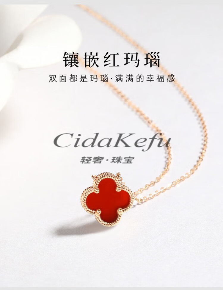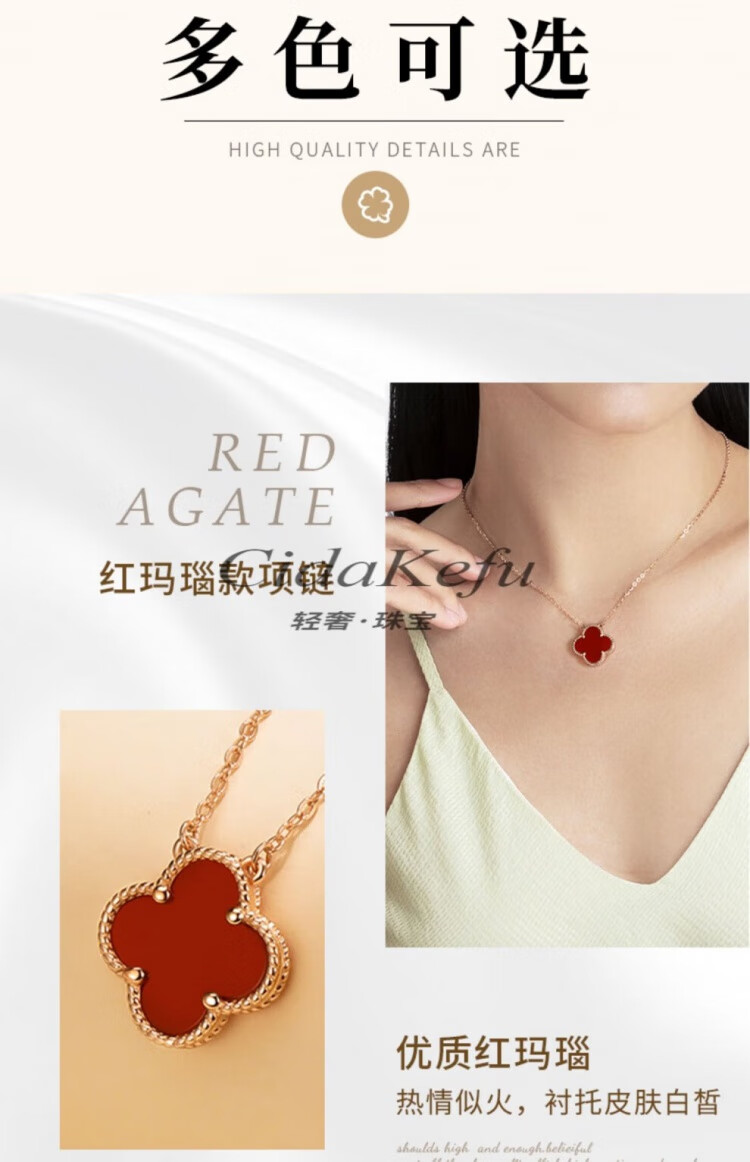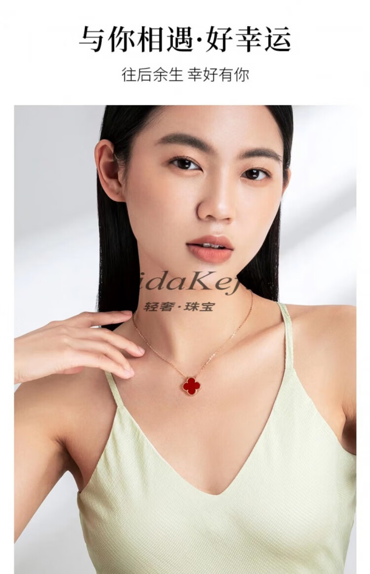 CidaKefu 18K gold necklace color gold four-leaf clover necklace for women rose gold red agate clavicle chain Valentine's Day gift for girlfriend Passionate red agate + 18k rose gold + high-end gift box