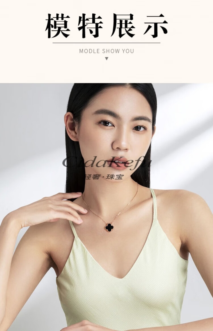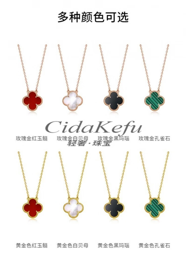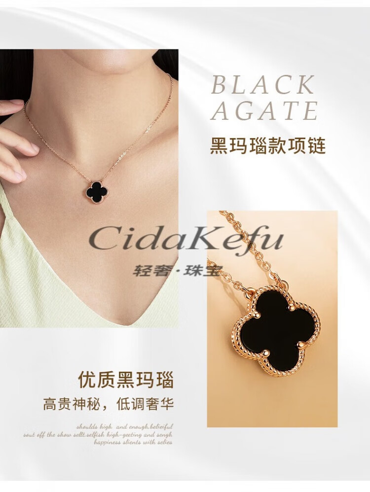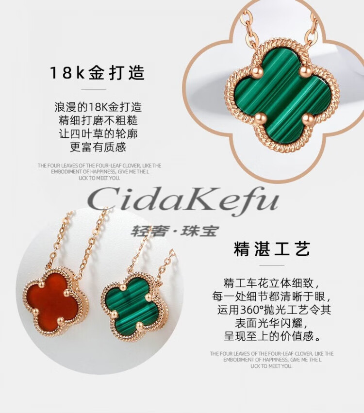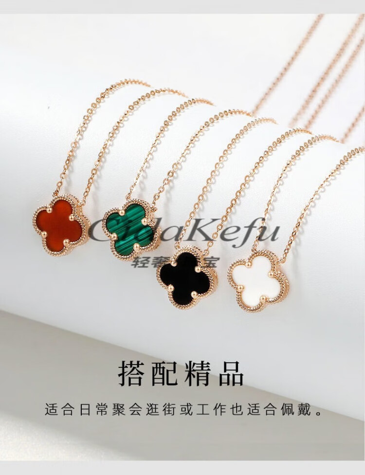 CidaKefu 18K gold necklace color gold four-leaf clover necklace for women rose gold red agate clavicle chain Valentine's Day gift for girlfriend Passionate red agate + 18k rose gold + high-end gift box
