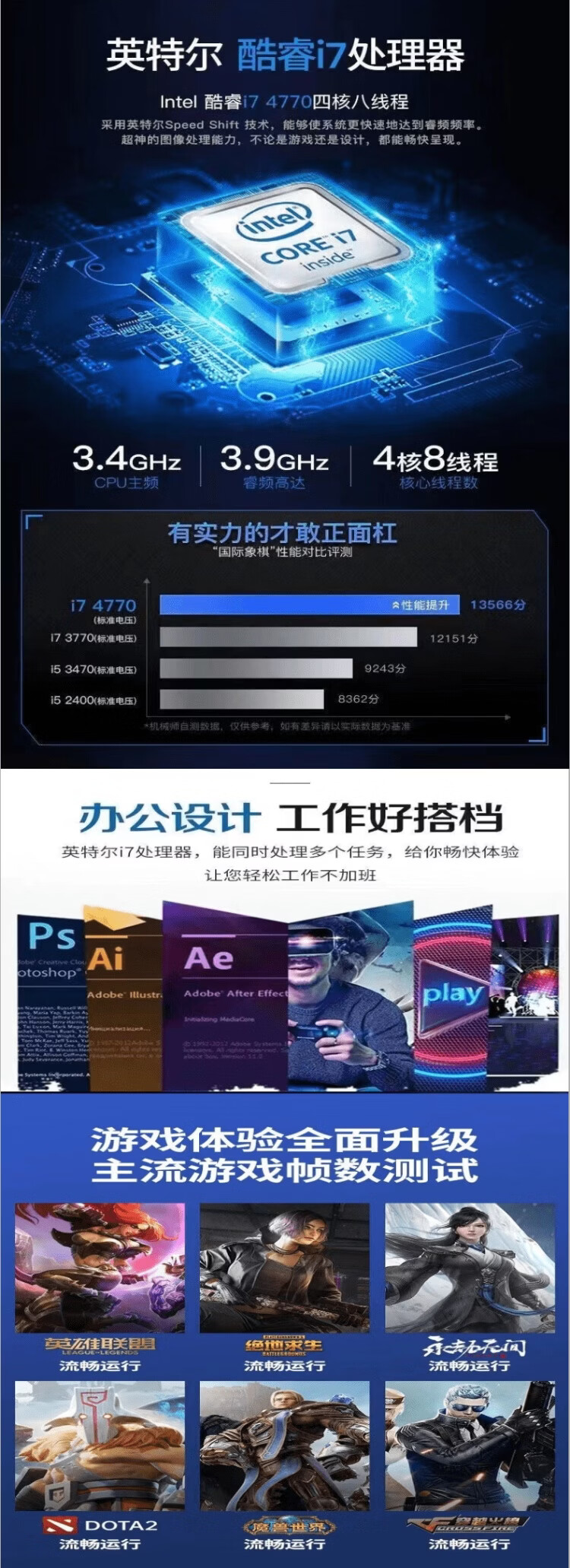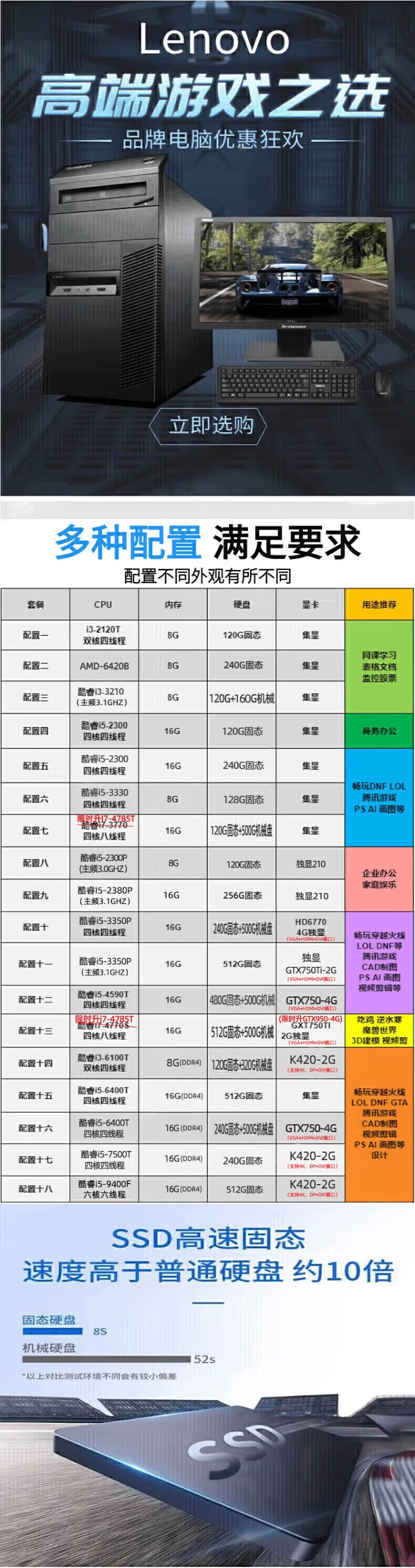(Discount up to 20%) Lenovo desktop host i3 i5 i7 second-hand computer business office home online class game e-sports independent display desktop computer single host complete set configuration three i3-3210+8G+280G hard drive hot sale single host 90% new