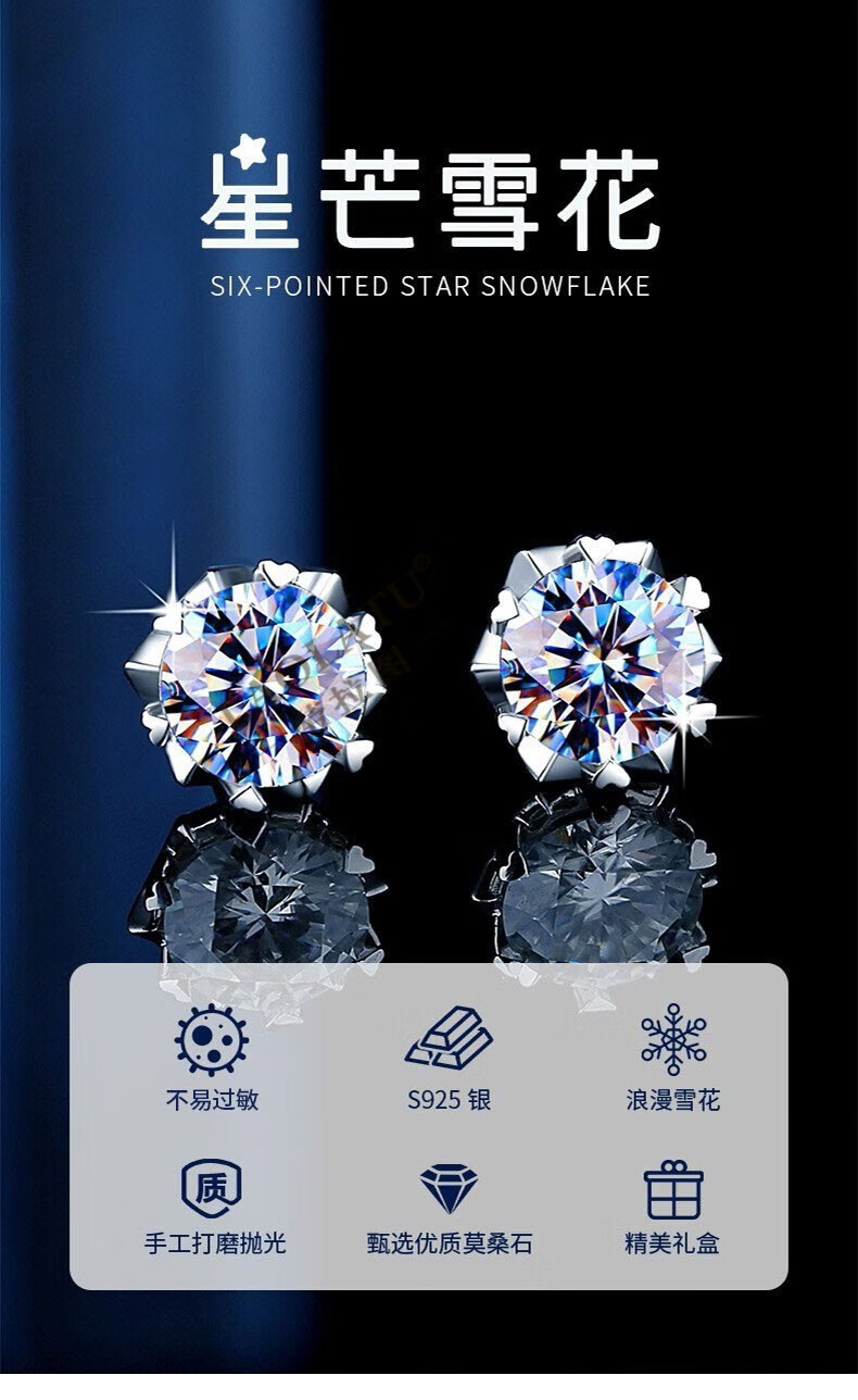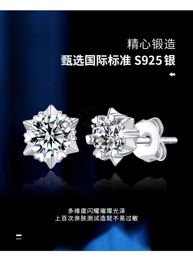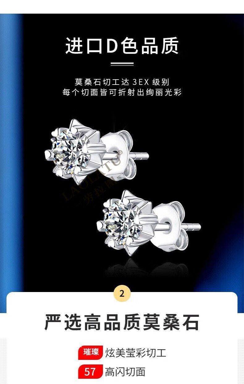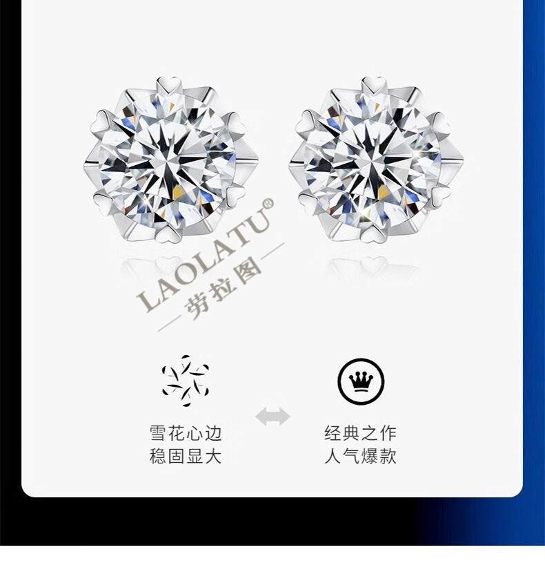 LAOLATU One Carat Moissanite Diamond Stud Earrings Women's Fashion Earrings Confession Commemorative Birthday Gift for Girlfriend and Wife One Carat Moissanite Diamond Stud Earrings Certificate