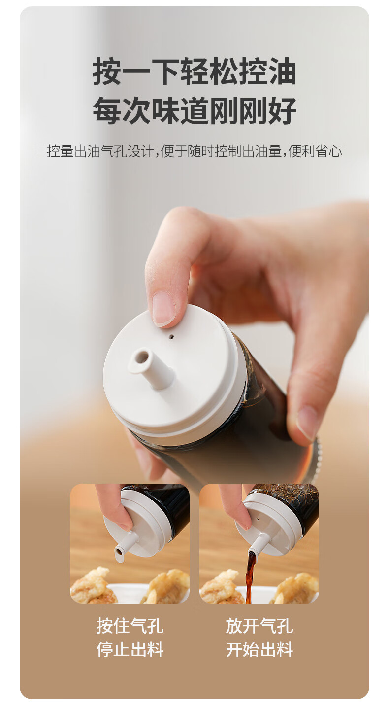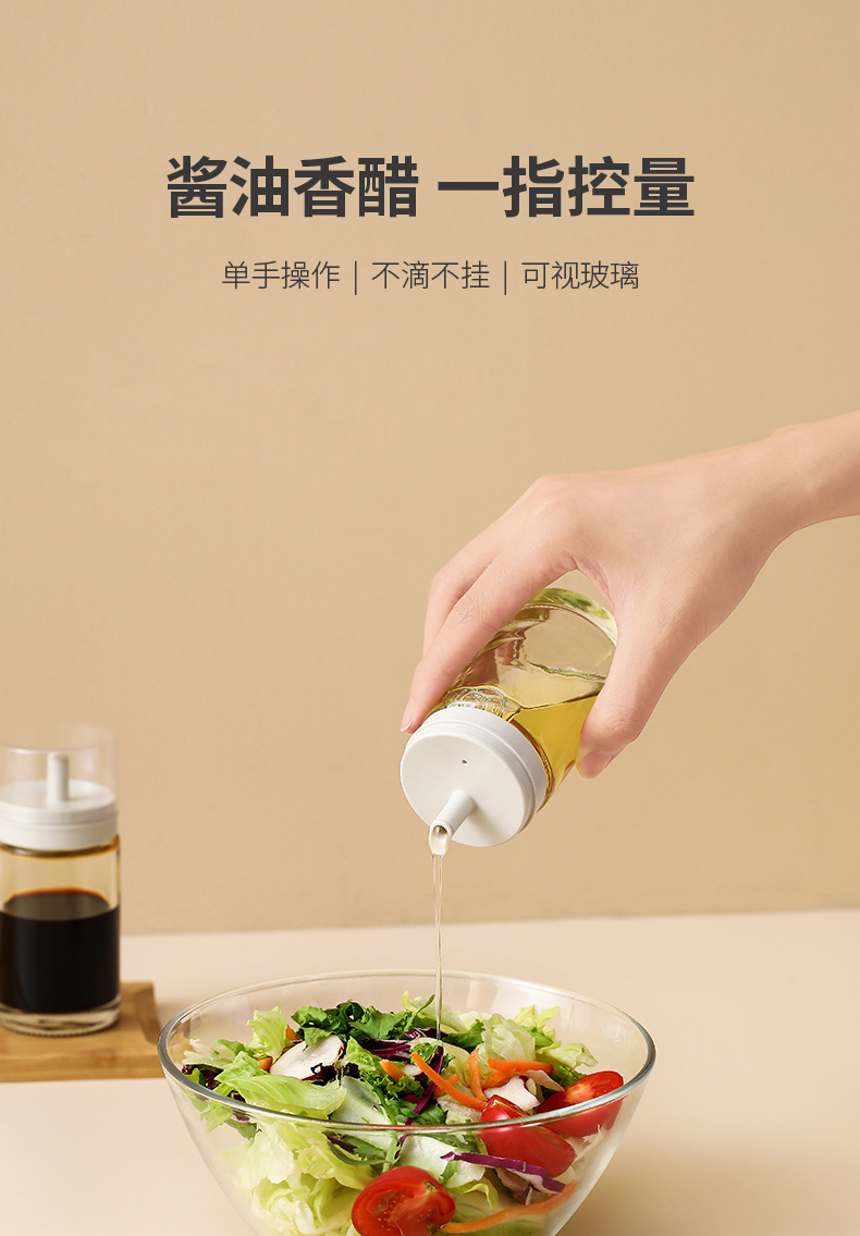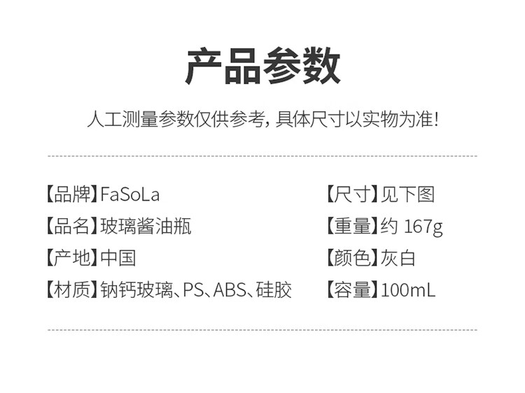 FaSoLa glass oil pot home kitchen gravity pour cooking oil tank does not drip oil soy sauce vinegar seasoning bottle container oil bottle (gray white) 100ml