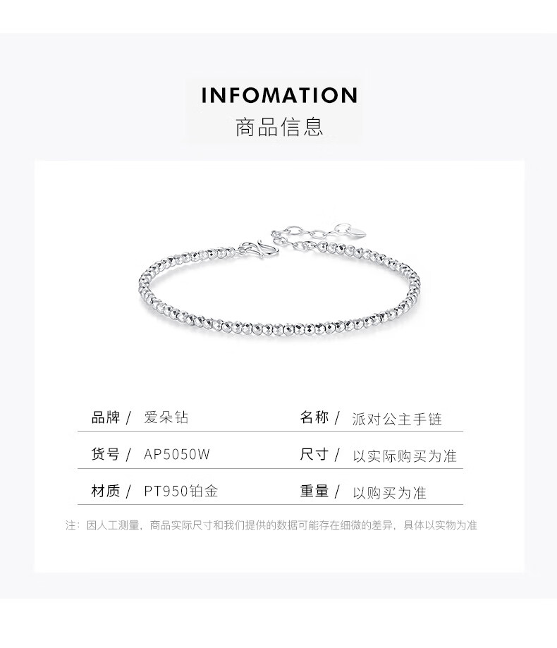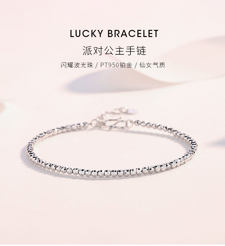 Aido Diamond PT950 platinum bouncy bead bracelet for women, platinum laser bead round bead fashion bracelet for girlfriend, weight 5.5-5.7 grams