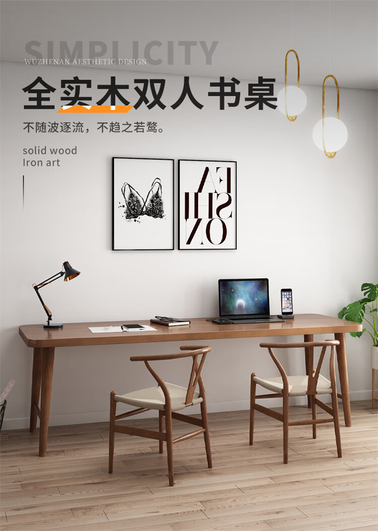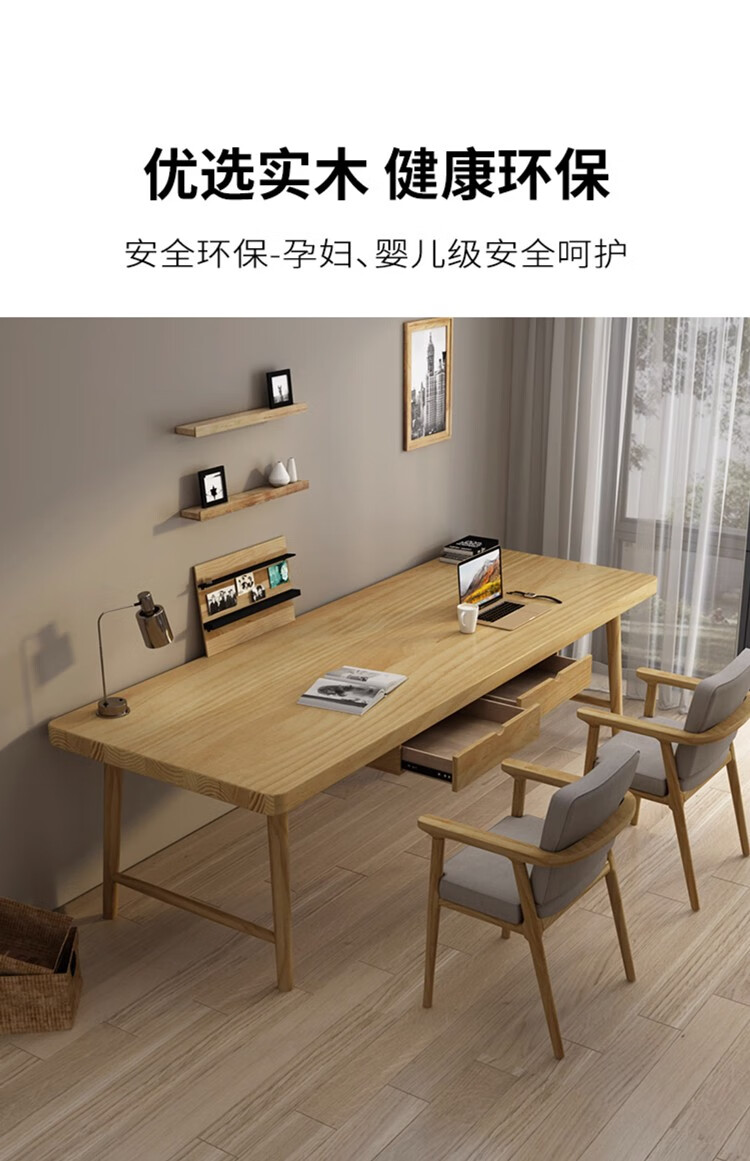 Youpin Elements (YPYS) Solid Wood Computer Desk Desktop Double Desk Home Bedroom Writing Study Desk Study Living Room Office Long Table Undrawn Desk 120*60*75 Desktop Thickness 5cm