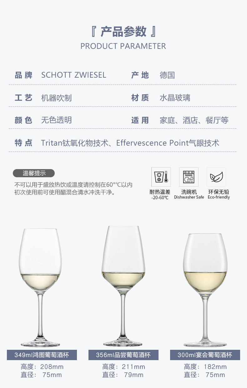 SCHOTT ZWIESEL imported from Germany red wine glass crystal cup set goblet white wine glass crystal wine glass wine set simple light luxury color box-tasting white wine glass 356ml