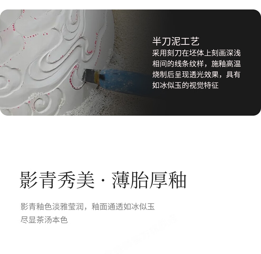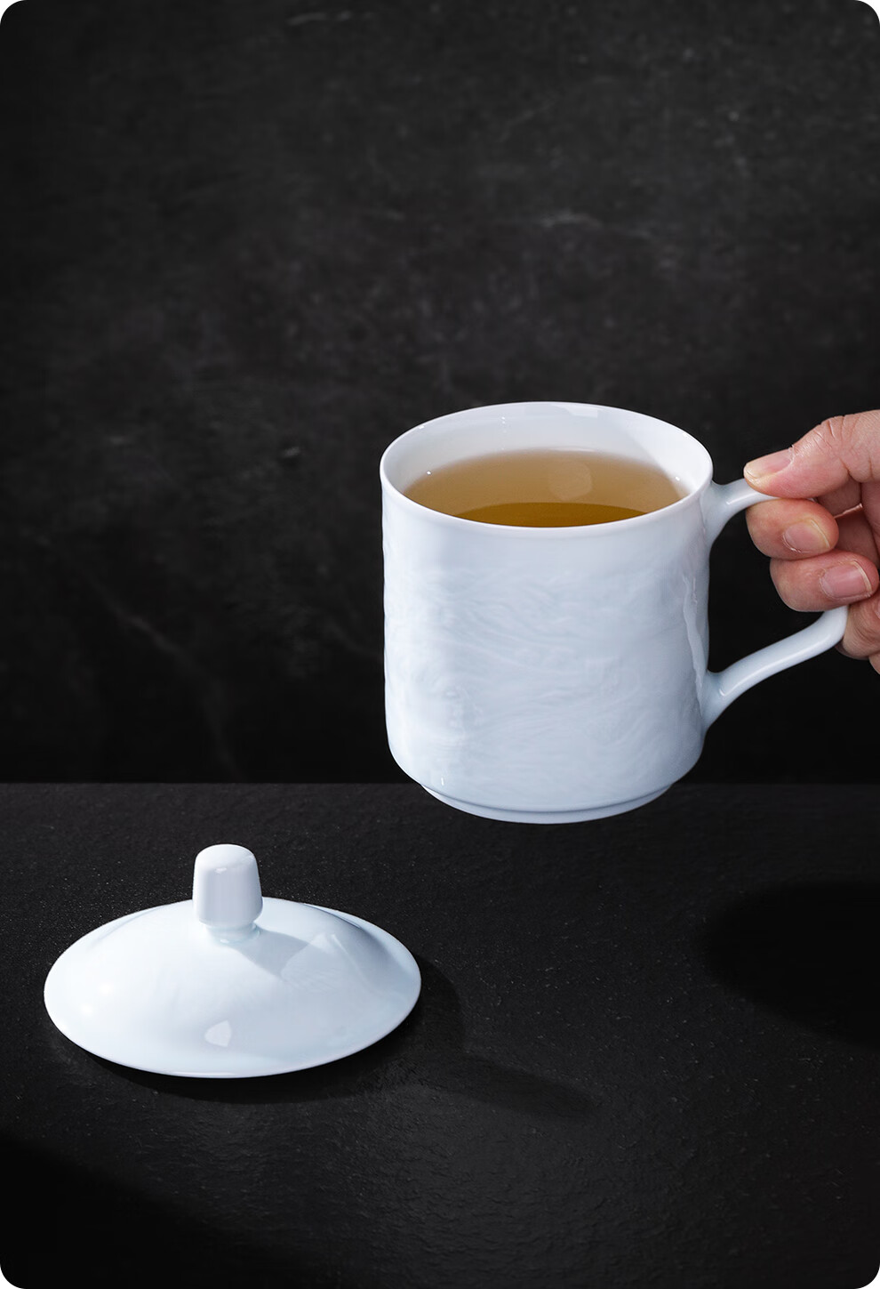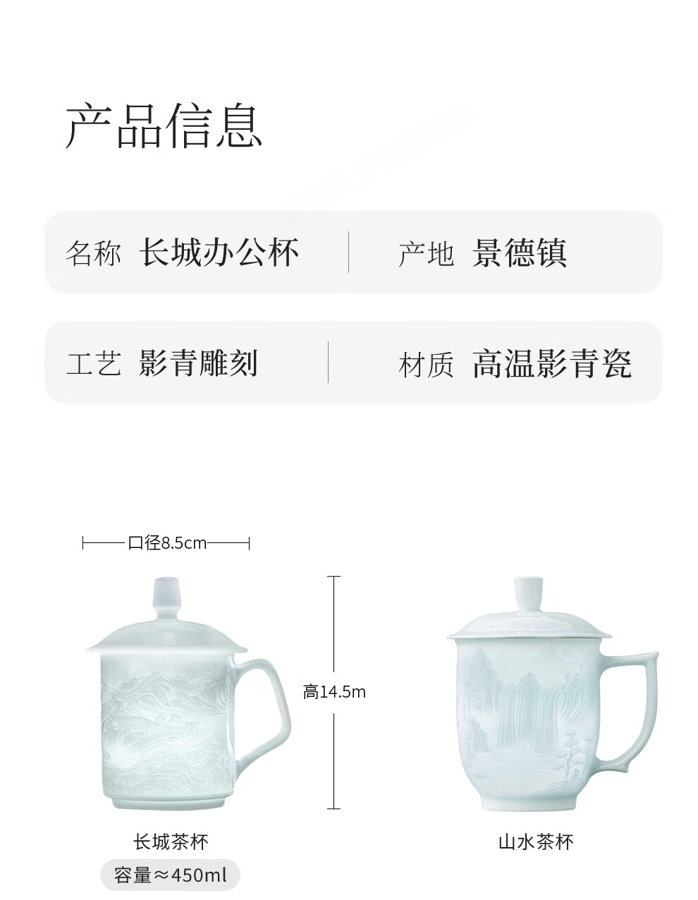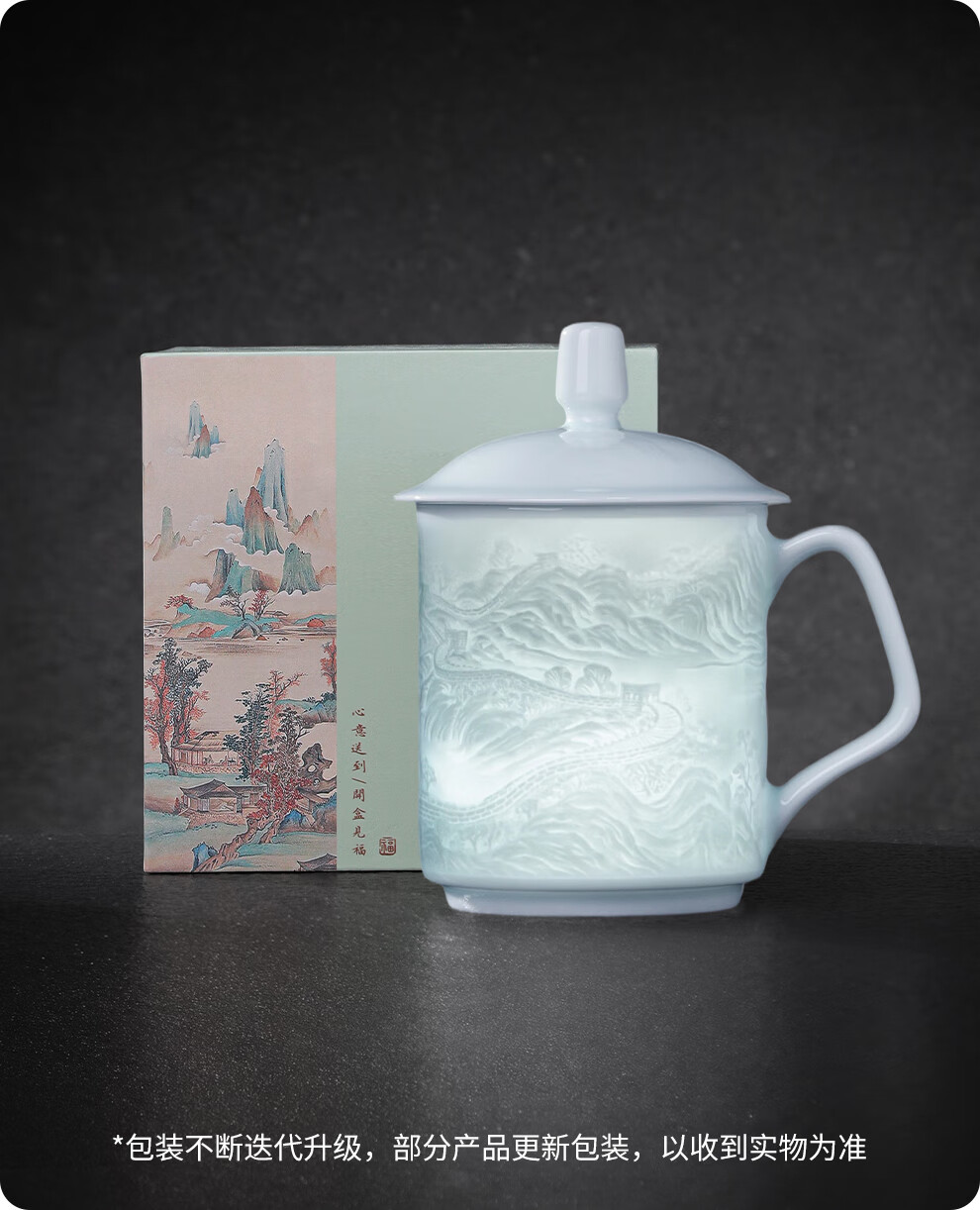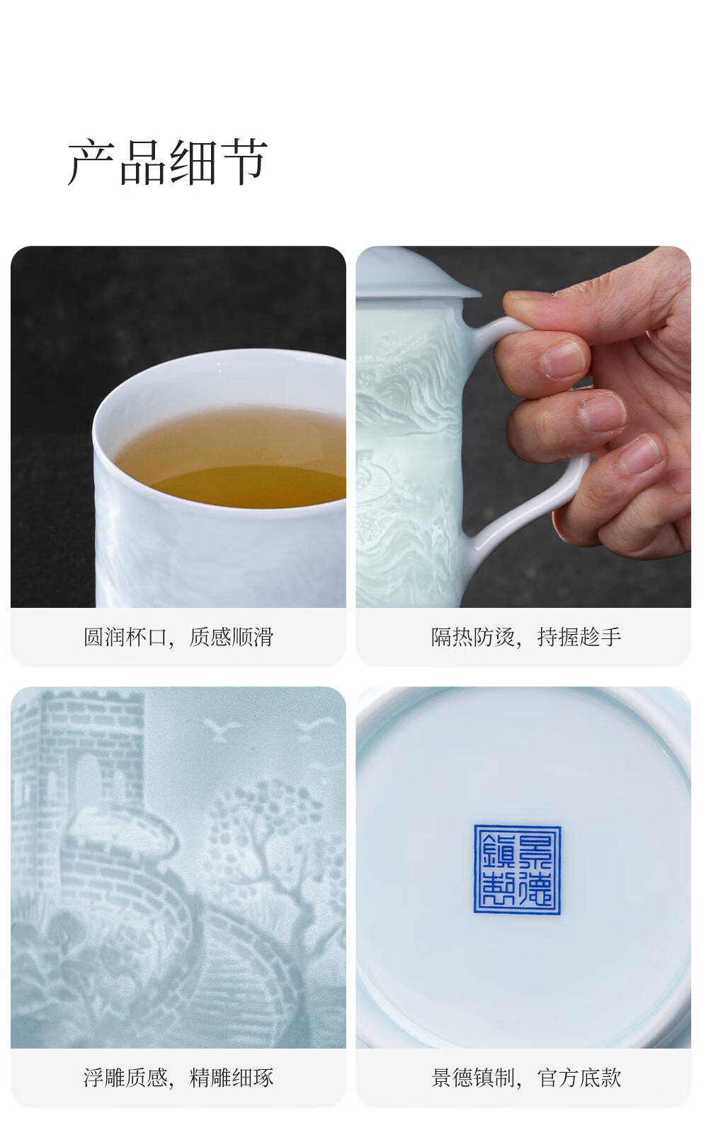 Jingdezhen (jdz) ceramic household Chinese-style handmade Great Wall tea cup tea set with lid office tea cup tea cup gift for elders shadow green relief Great Wall tea cup
