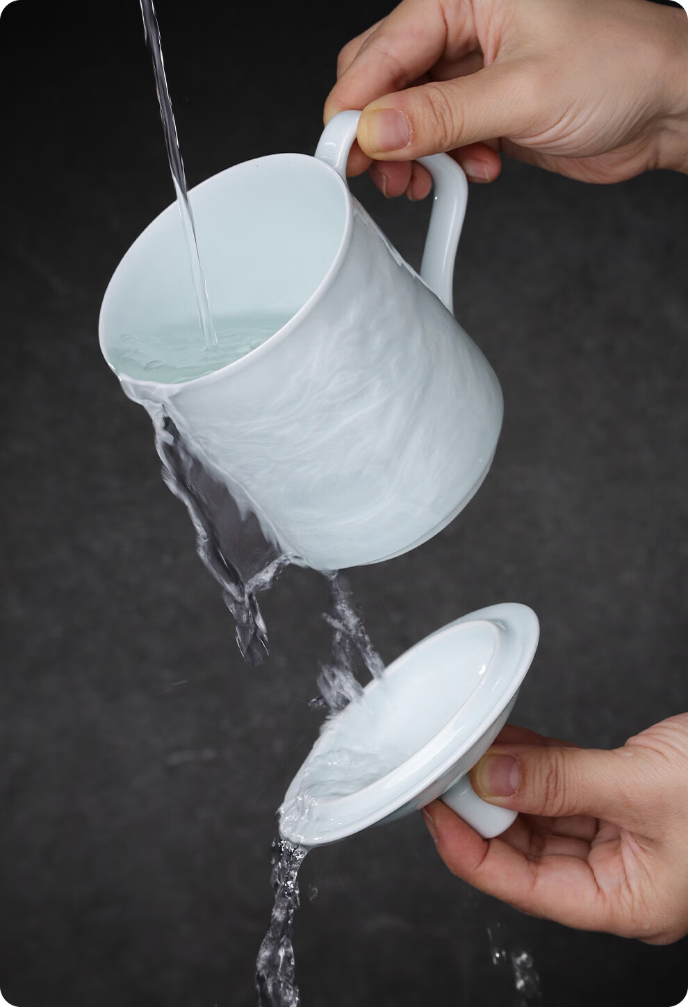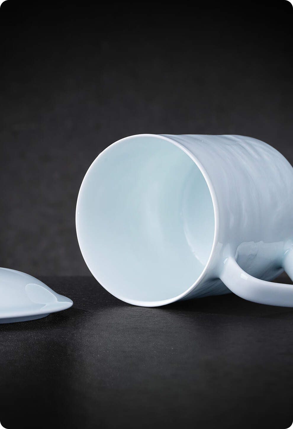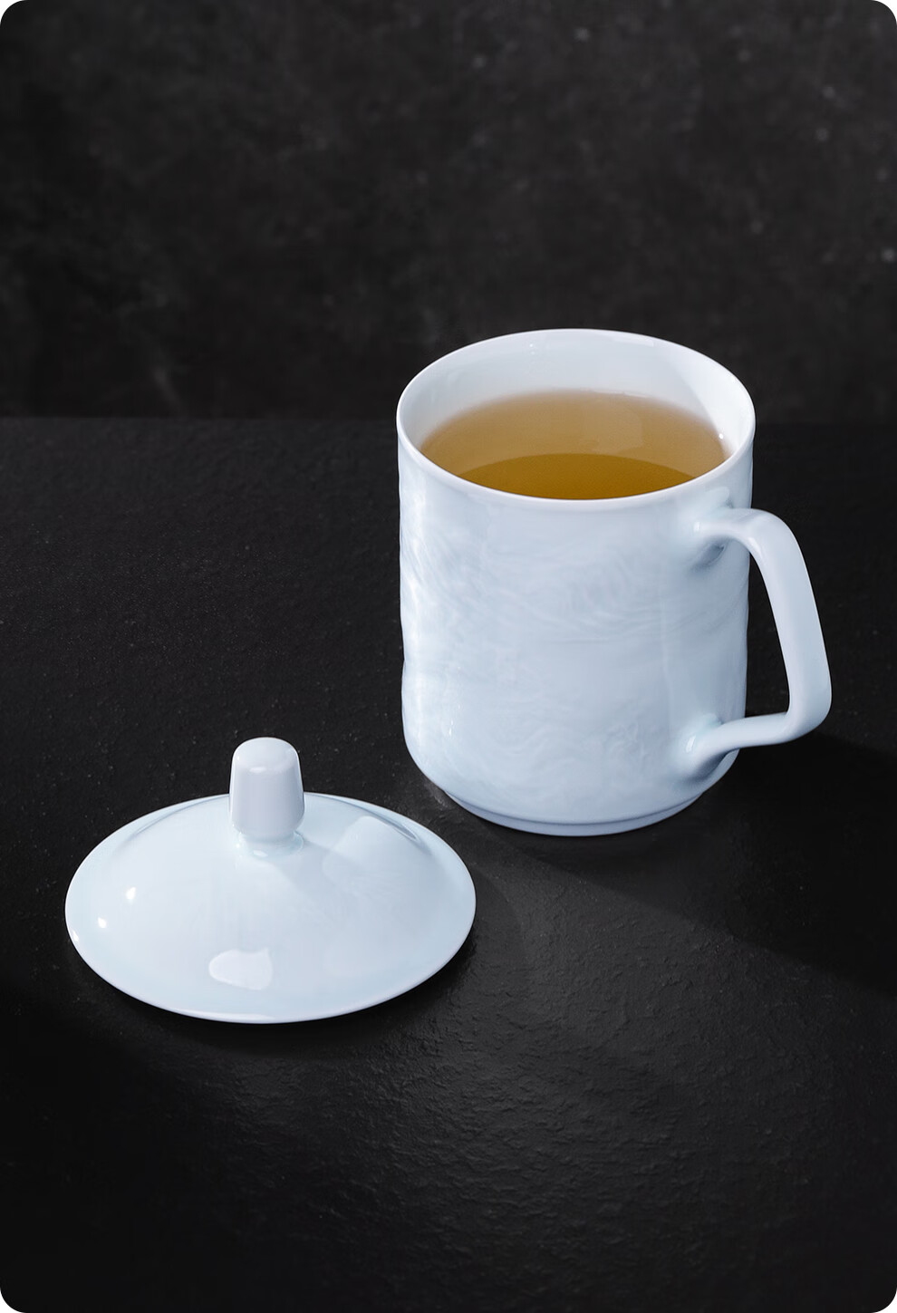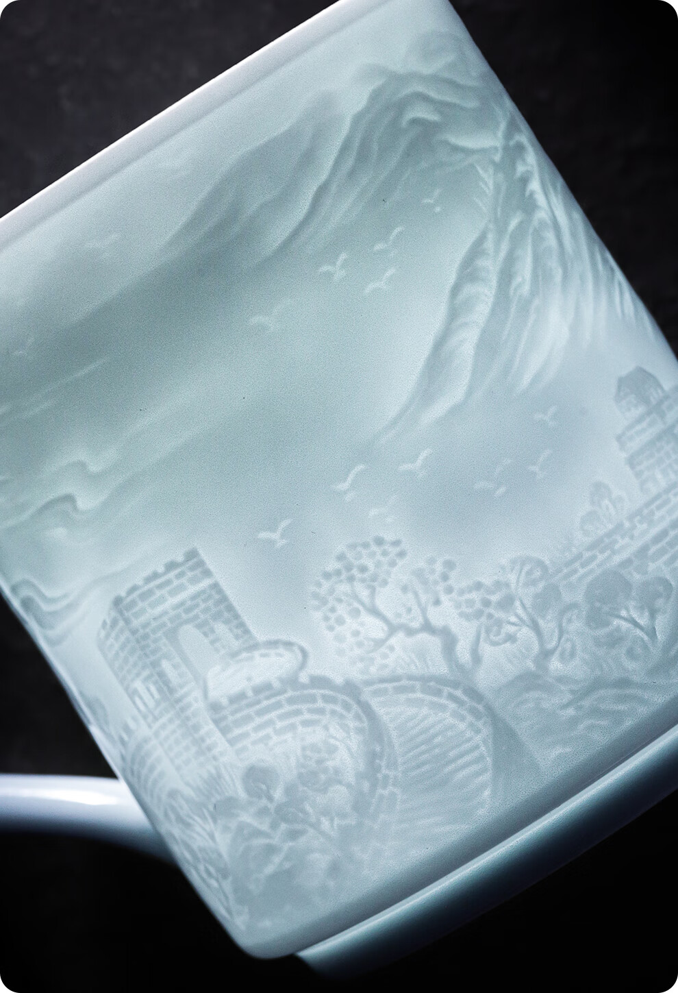 Jingdezhen (jdz) ceramic household Chinese-style handmade Great Wall tea cup tea set with lid office tea cup tea cup gift for elders shadow green relief Great Wall tea cup