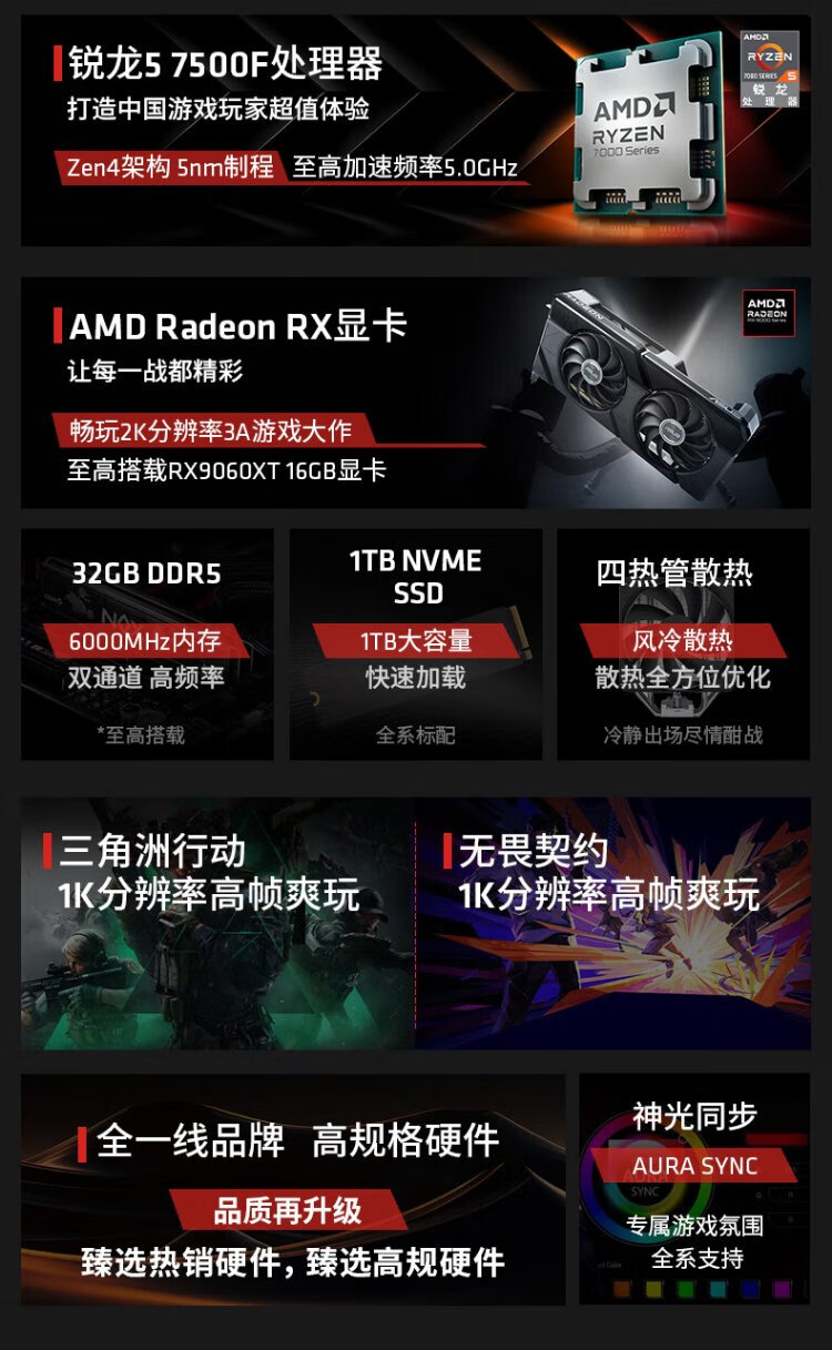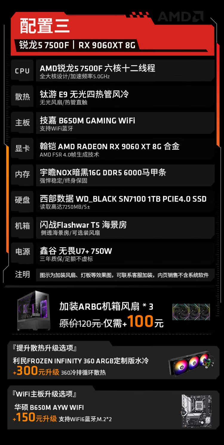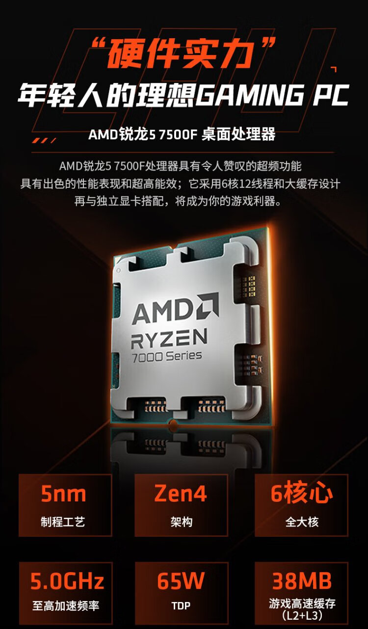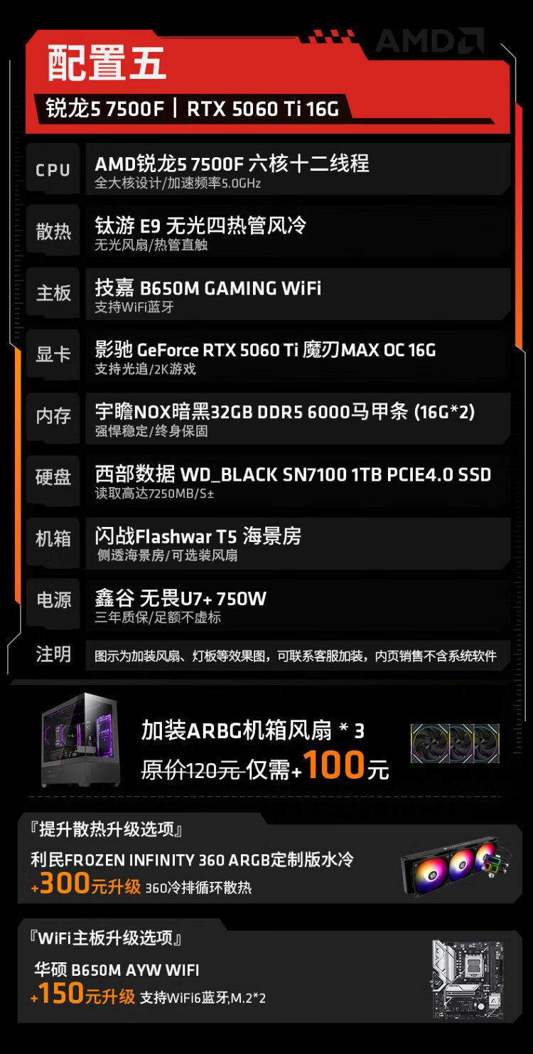 AMD Ryzen R5 7500F/RTX5060Ti/RX9060XT assembly computer host Black Myth Wukong e-sports game computer host desktop complete machine diy assembly machine configuration one R5 7500F+RX7650GRE 8G
