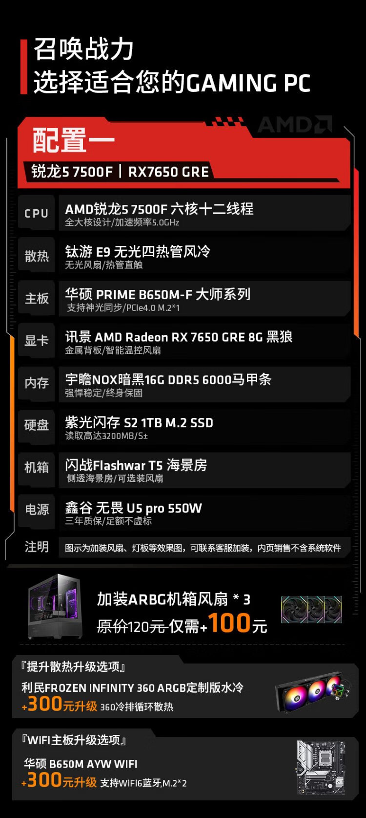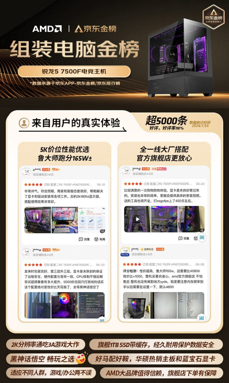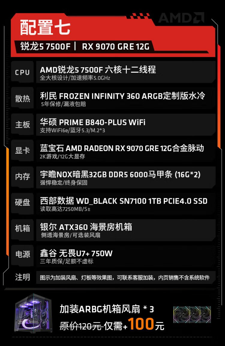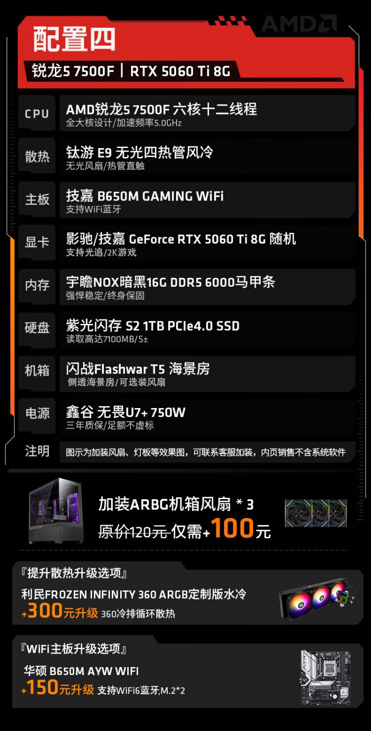 AMD Ryzen R5 7500F/RTX5060Ti/RX9060XT assembly computer host Black Myth Wukong e-sports game computer host desktop complete machine diy assembly machine configuration one R5 7500F+RX7650GRE 8G