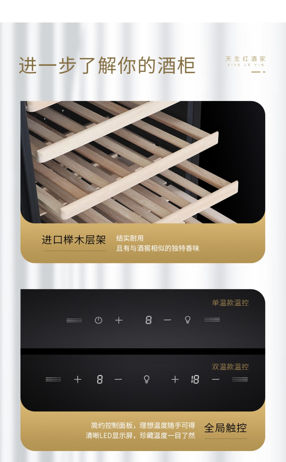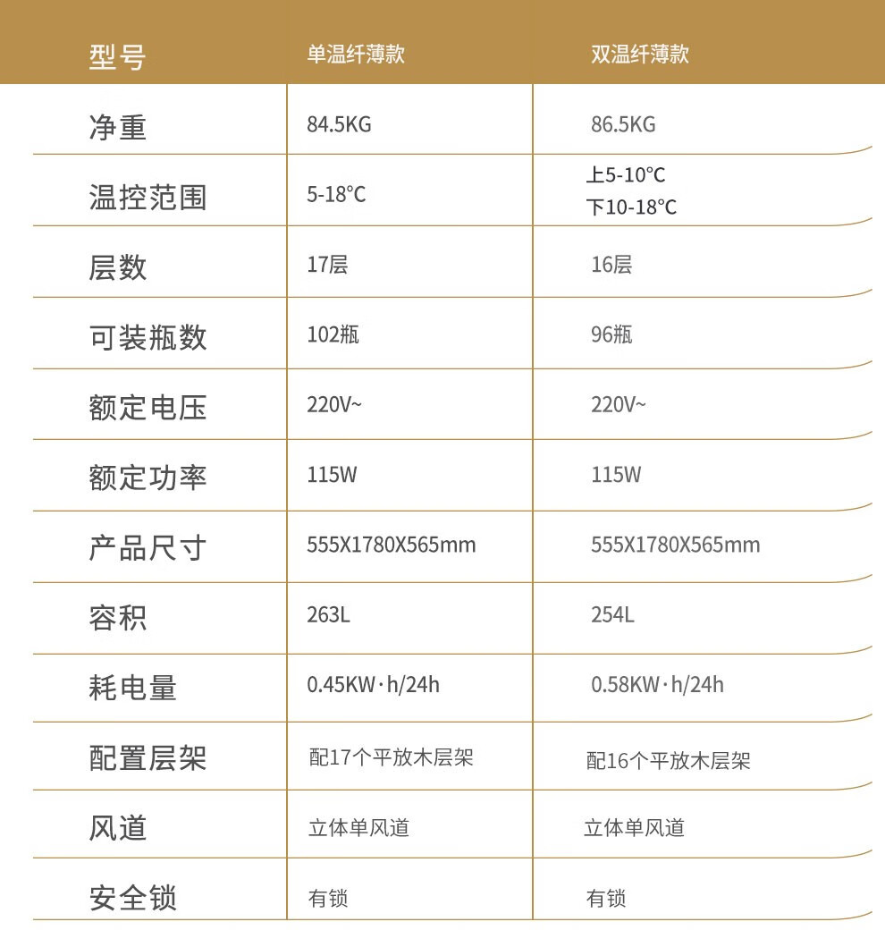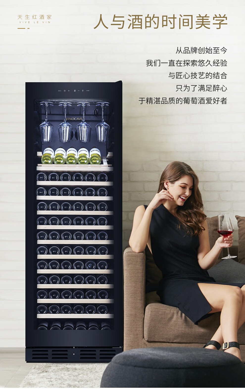 Vinocave wine cabinet, constant humidity cabinet, refrigerator, compressor, ice bar, refrigerated storage, home office display cabinet, beverage ultra-thin, single-temperature slim model-268A- 102 bottles