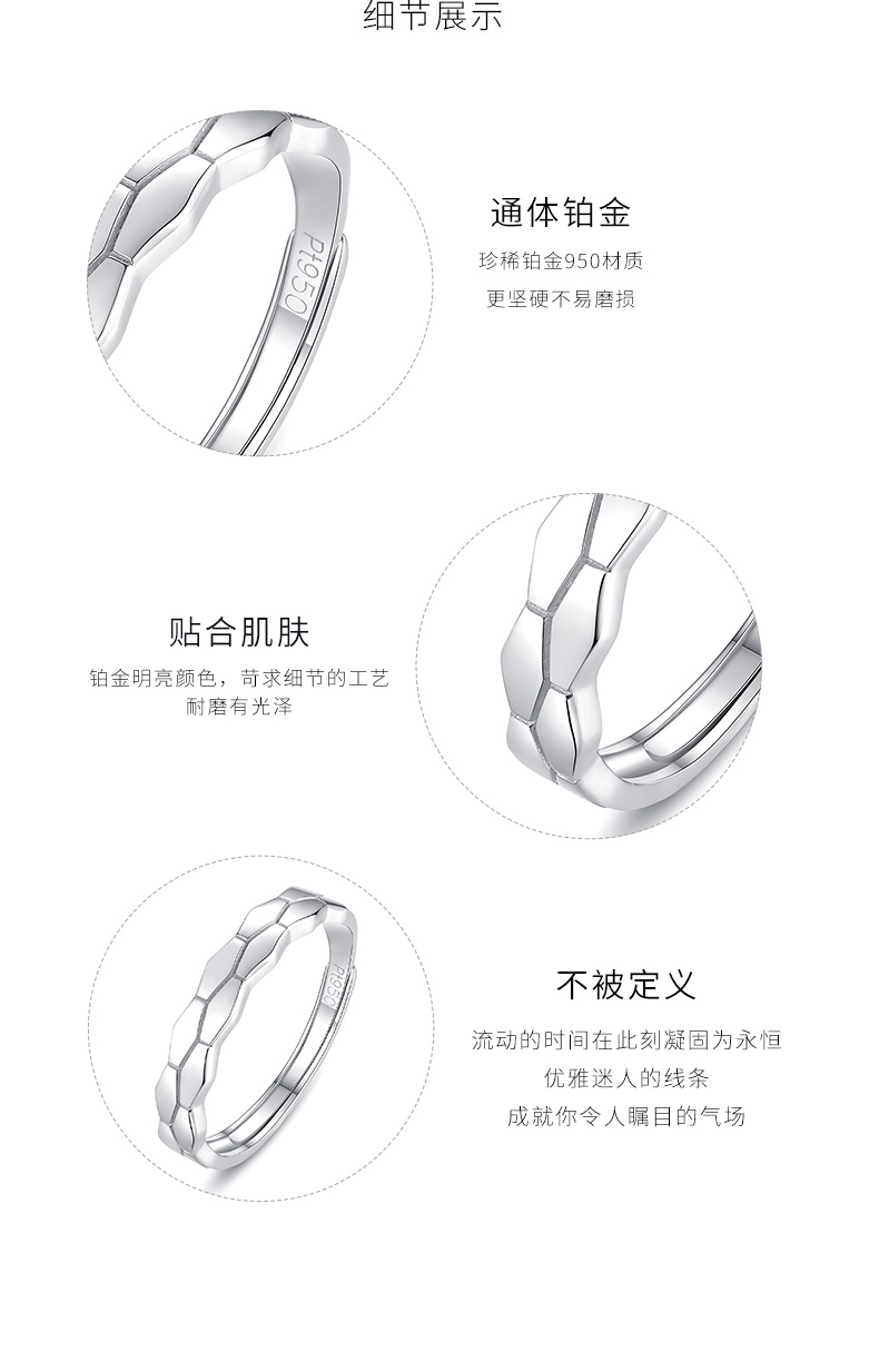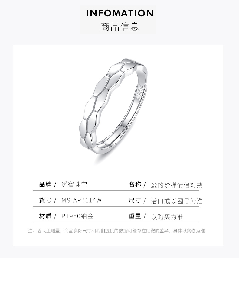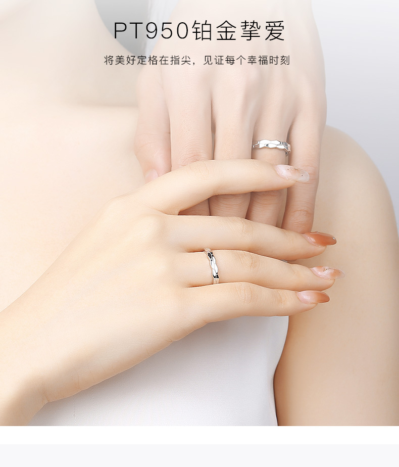 Misu PT950 platinum ring for men and women, platinum wedding ring, live mouth, adjustable Christmas gift, men's single only, 4.1-4.3 grams