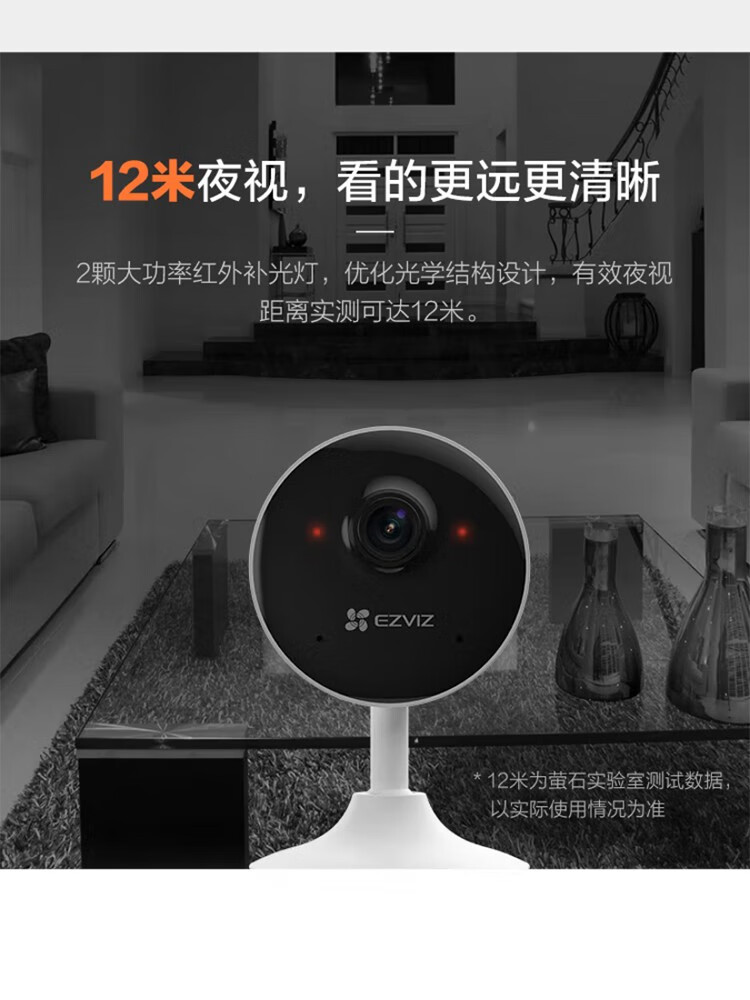 EZVIZ C1C 1080P camera wireless home network camera wireless wifi mobile phone intercom remote security surveillance camera night vision baby care monitor 32G memory card, upgrade to 64G after ordering, event recording takes about 6-8 days, next day delivery in some areas