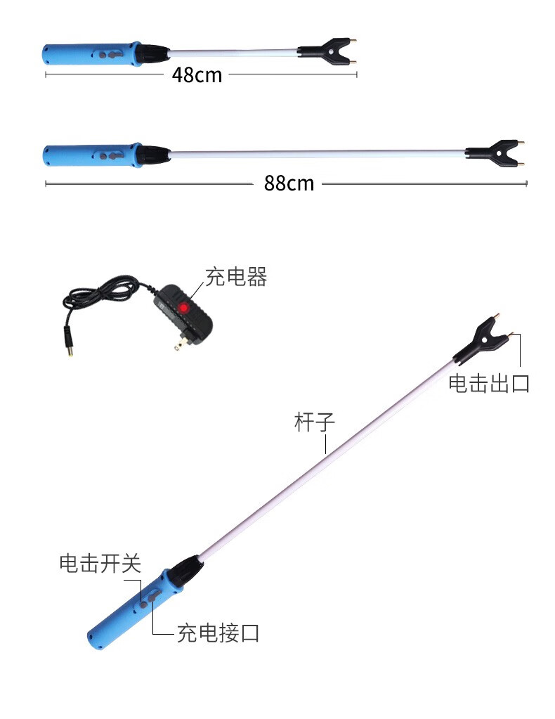 Mushide electric pig herder, pig herder artifact, waterproof pig herder stick, battery charger, durable pig herder, pig, cattle and sheep herder, one-piece total length 88cm
