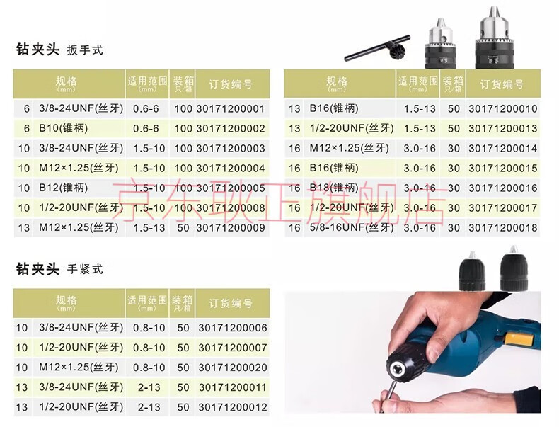 Dongcheng drill chuck wrench type hand electric drill drill chuck wrench type iron chuck hand electric drill bit iron chuck tool accessories 3/8-24UNF screw thread 0.6-6mm