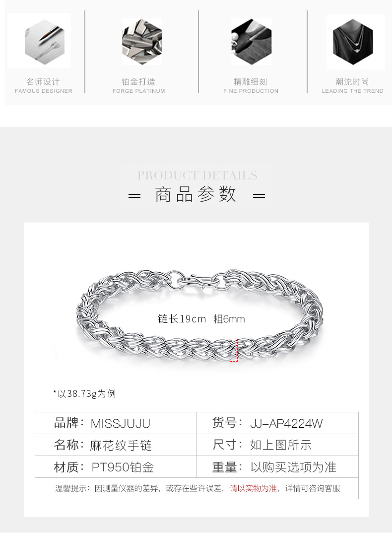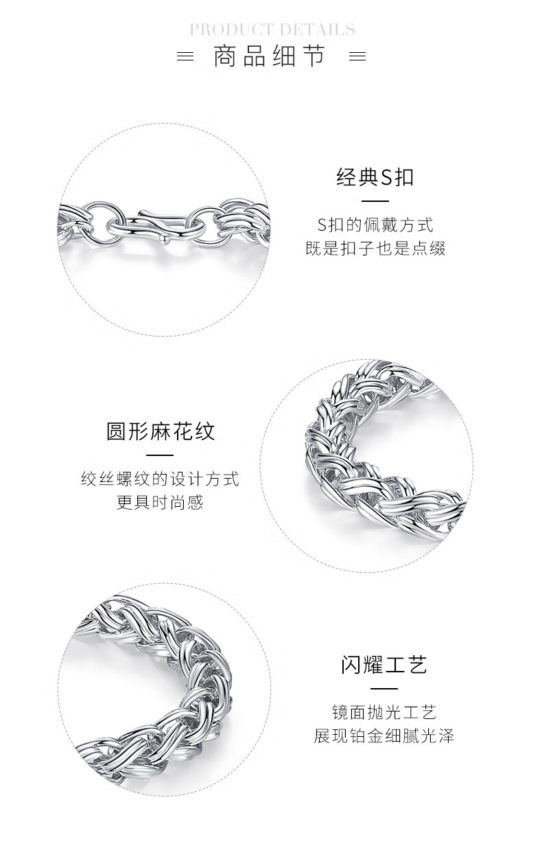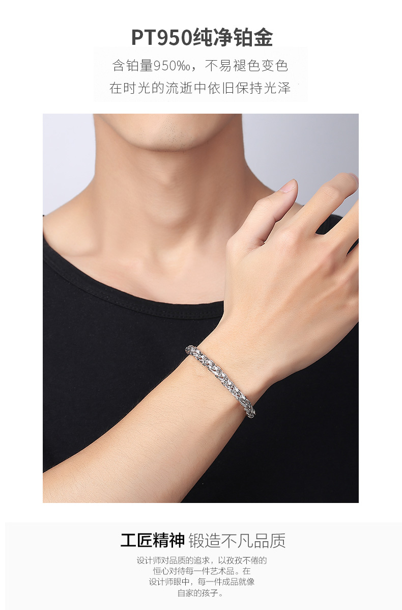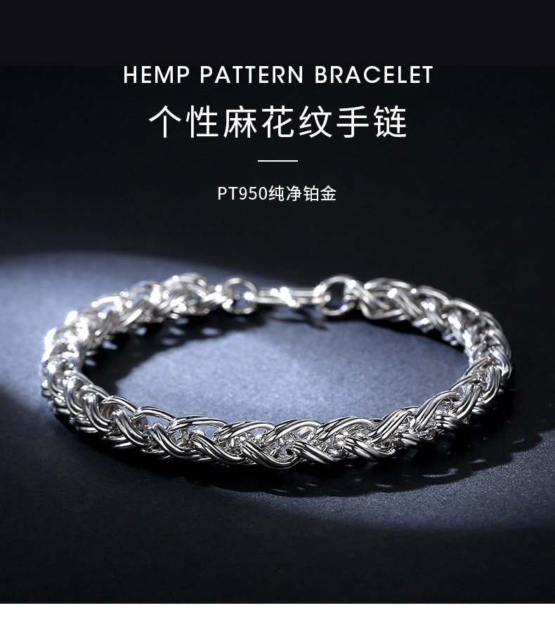 Miss JuJu Platinum Bracelet Men's pt950 Platinum Bracelet Men's Personalized Round Twist Pattern Broad and Thick Bracelet (Customized) 41g Length 20cm Thick 6.2mm More return less supplement