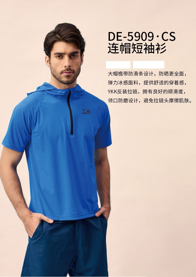 DAIWA fishing clothing sun protection clothing DE-5909CS hooded short-sleeved shirt summer T-shirt dark blue-M size