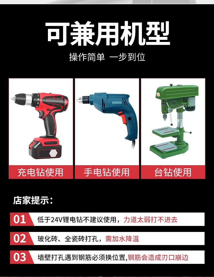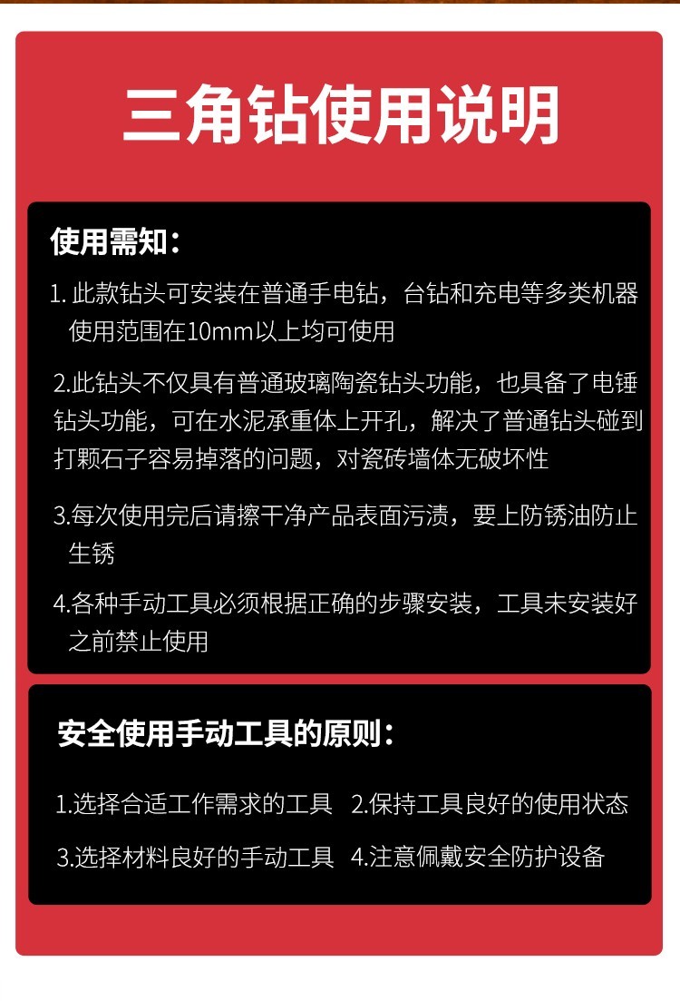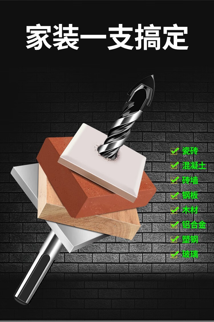 Baolian Ceramic Tile Drill Bit Concrete Punching Opening Overlord Drill Alloy Triangular Drill 6mm Glass Cement Complete Hand Electric Drill 3+4+5+6+8+10+12 7 pieces in total