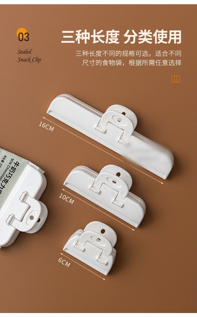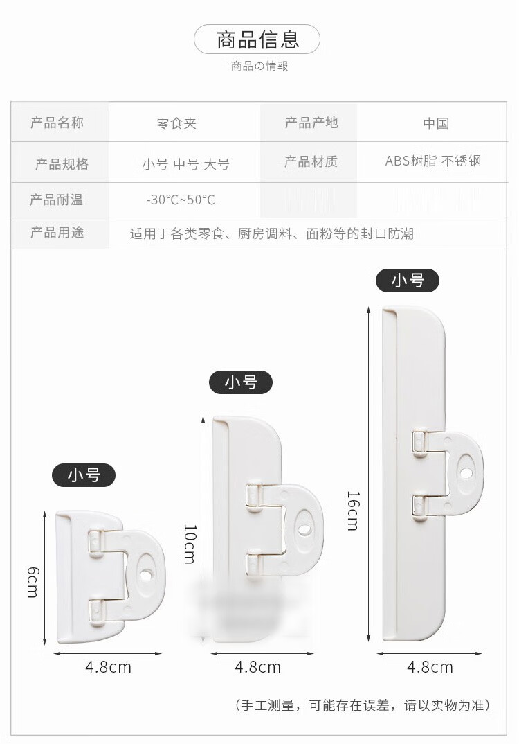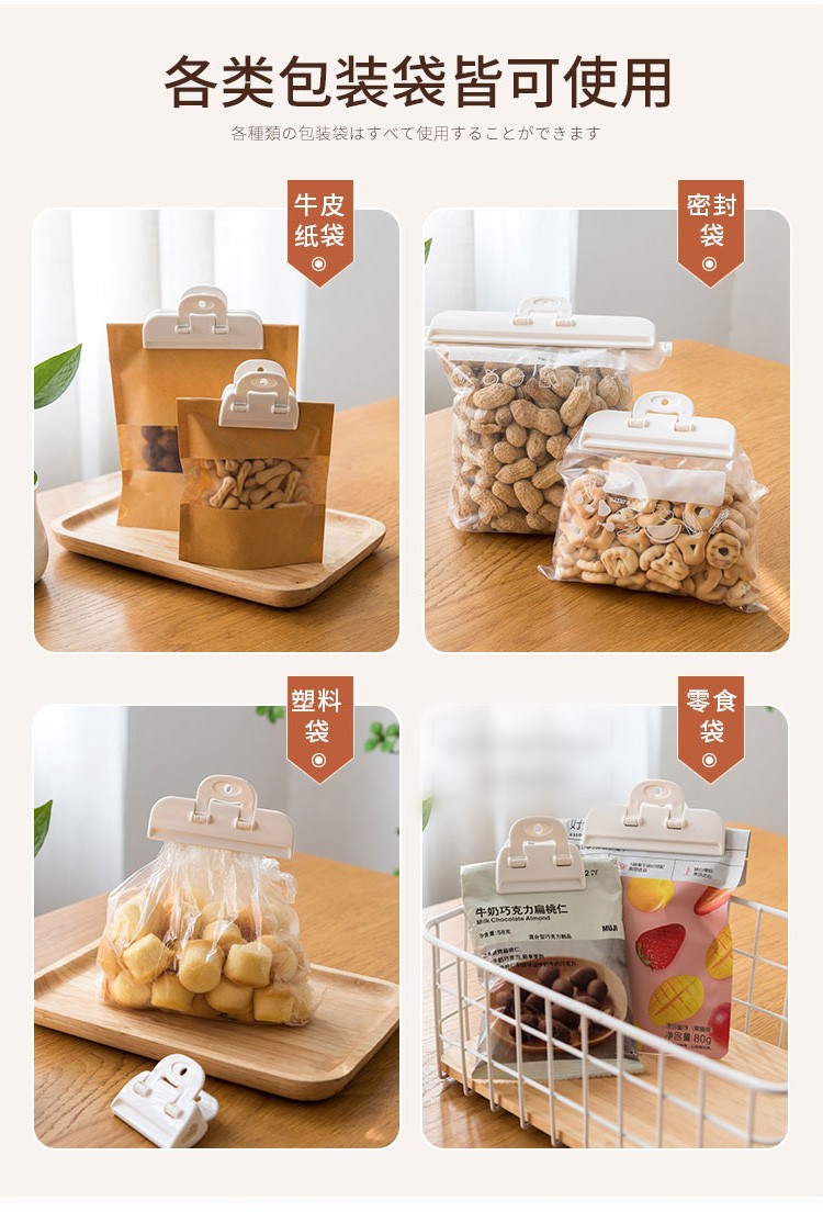 Sungsa Japanese snack bag sealing clip, fresh-keeping sealing artifact, kitchen food plastic bag clip, milk powder sealing clip, white (small + medium + large)