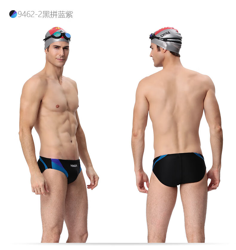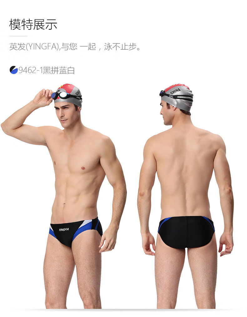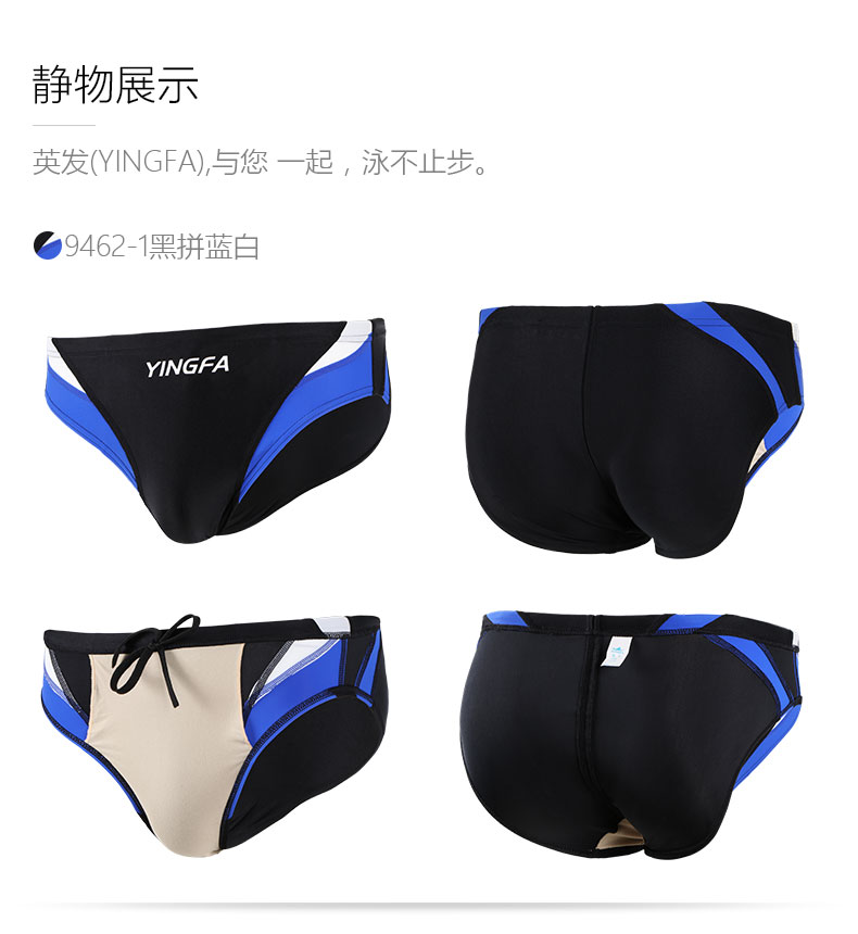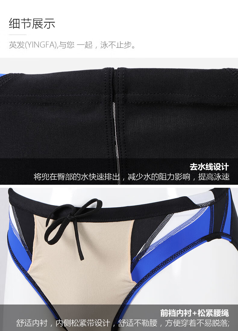 YINGFA swimming trunks men's professional triangle training swimming trunks adult and children's fitness competition racing swimming trunks blue and white S (waist 51-56 cm)