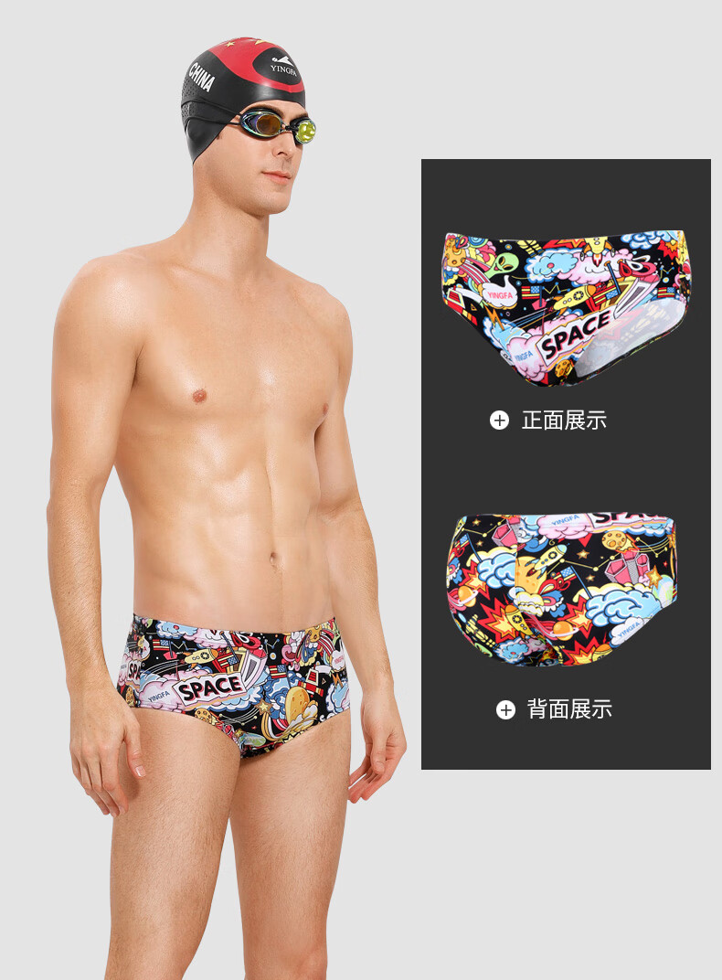 YINGFA Badehose Herren Dreieck Professionelle Erwachsene und Kinder Bunte Mode Bedruckte Breitkrempige Renn-Badehose mit mittlerer Taille Magic Missile 2XL (Taille 76-82 cm)