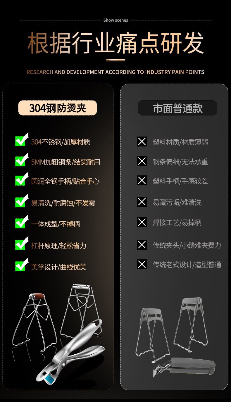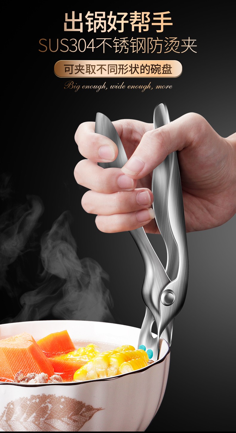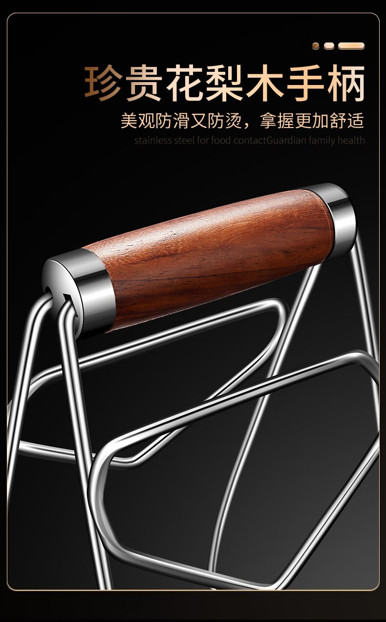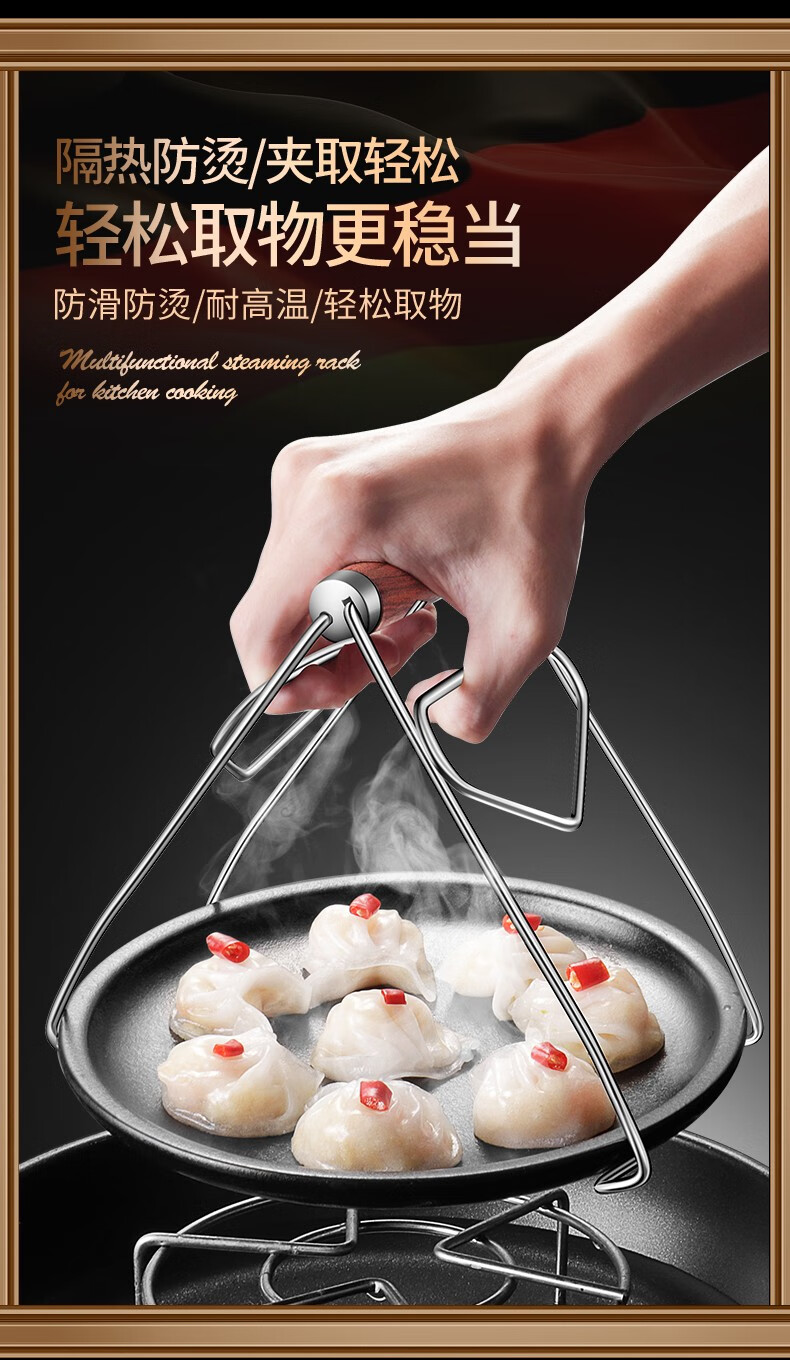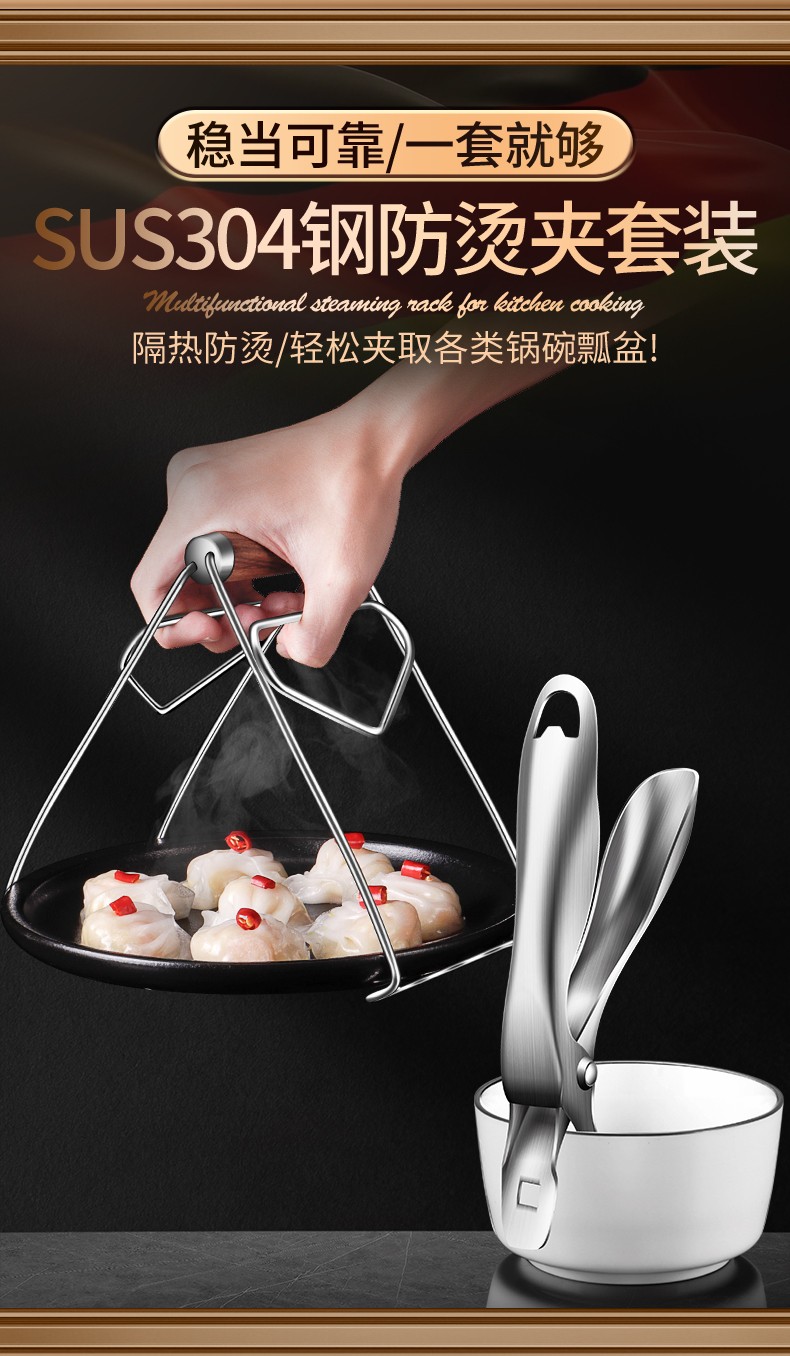 Punol 2-piece set 304 stainless steel anti-scalding bowl clamp set, tray artifact household kitchen clamp, plate clamp with rosewood handle + multi-function bowl clamp