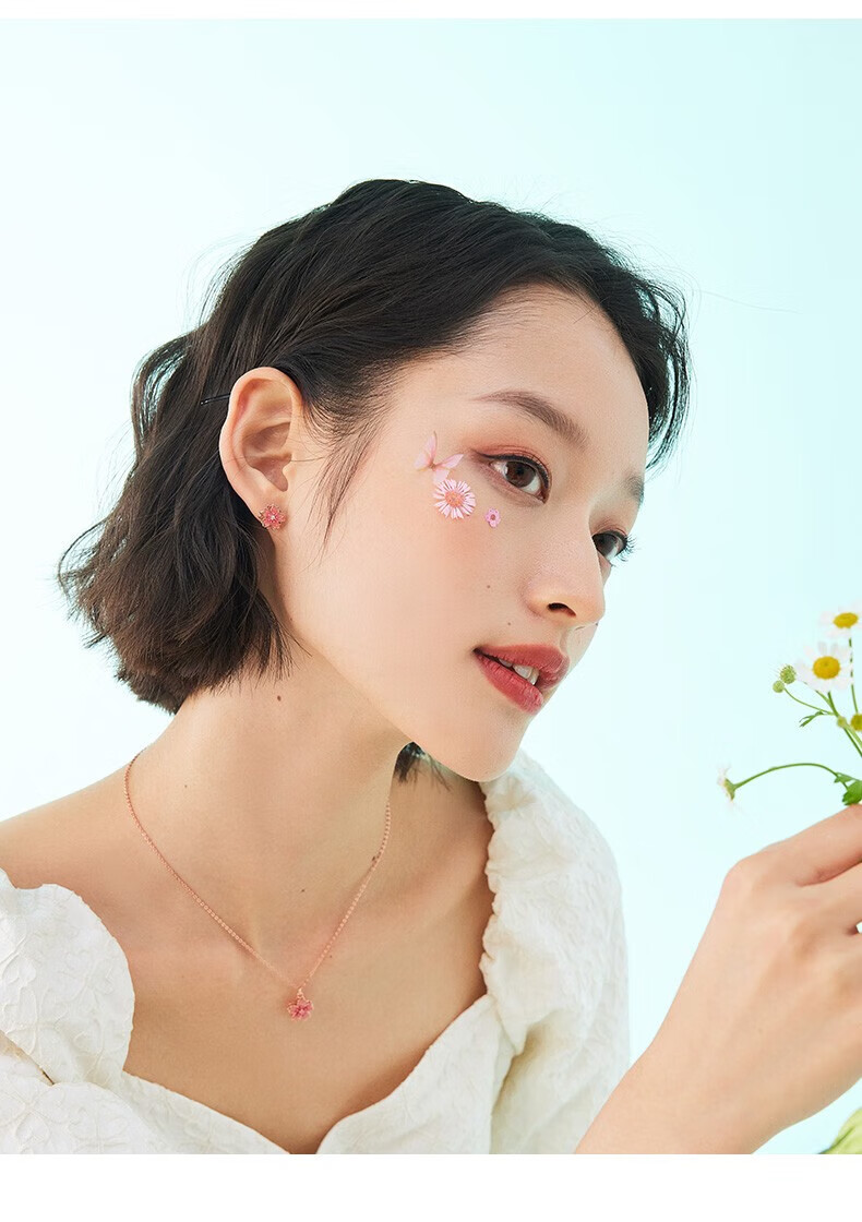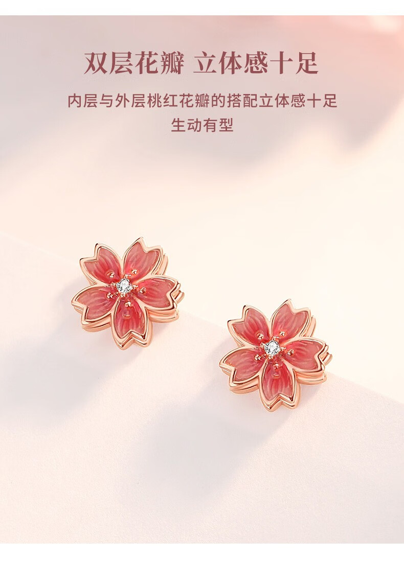 Ginqianhui 999 sterling silver peach blossom earrings for women, 2025 new earrings, Valentine's Day birthday gift for girlfriend, peach blossom earrings/999 pure silver + seven warehouse delivery/next day delivery, peach blossoms can be rotated/Valentine's Day girl gift/exquisite gift box for wife