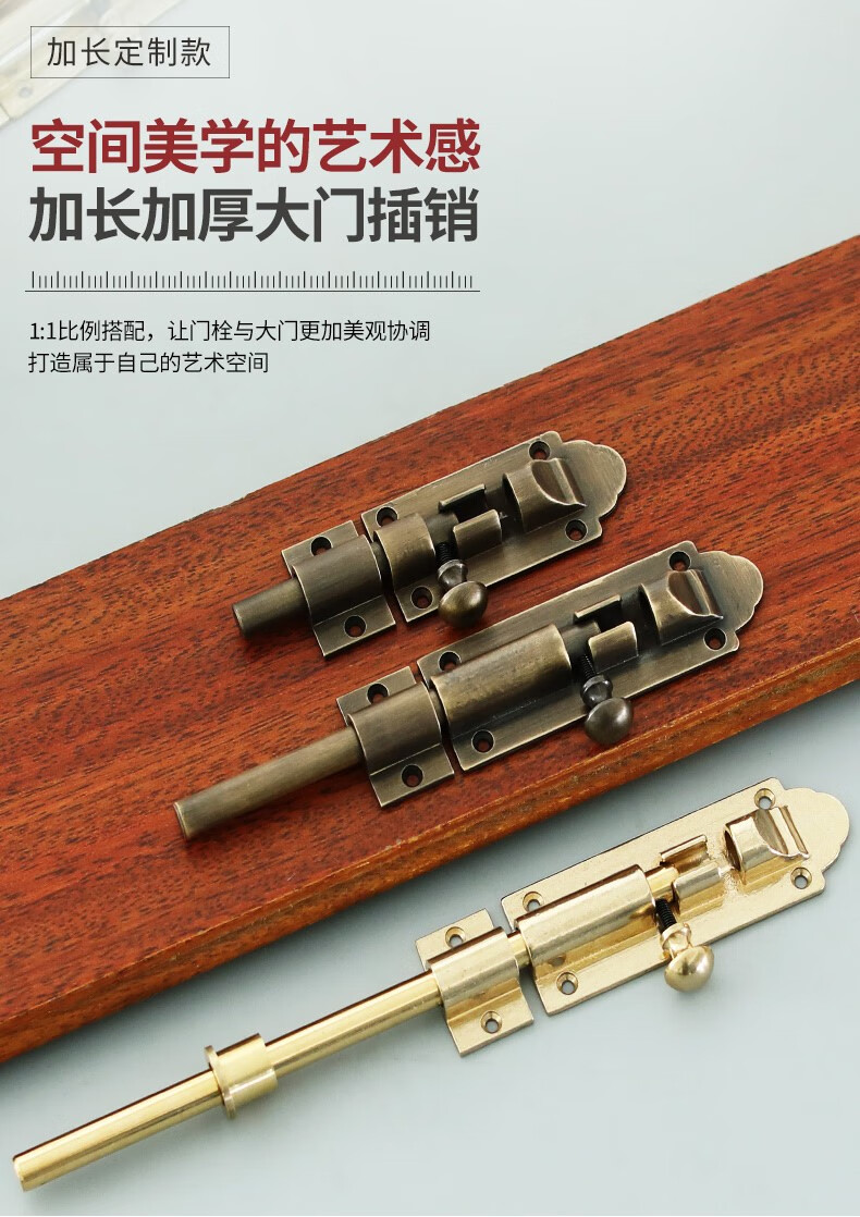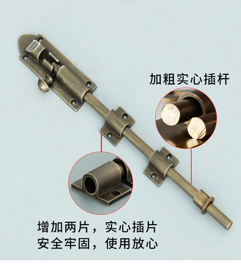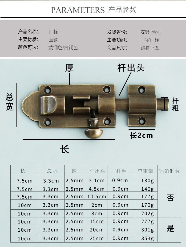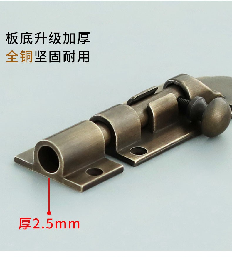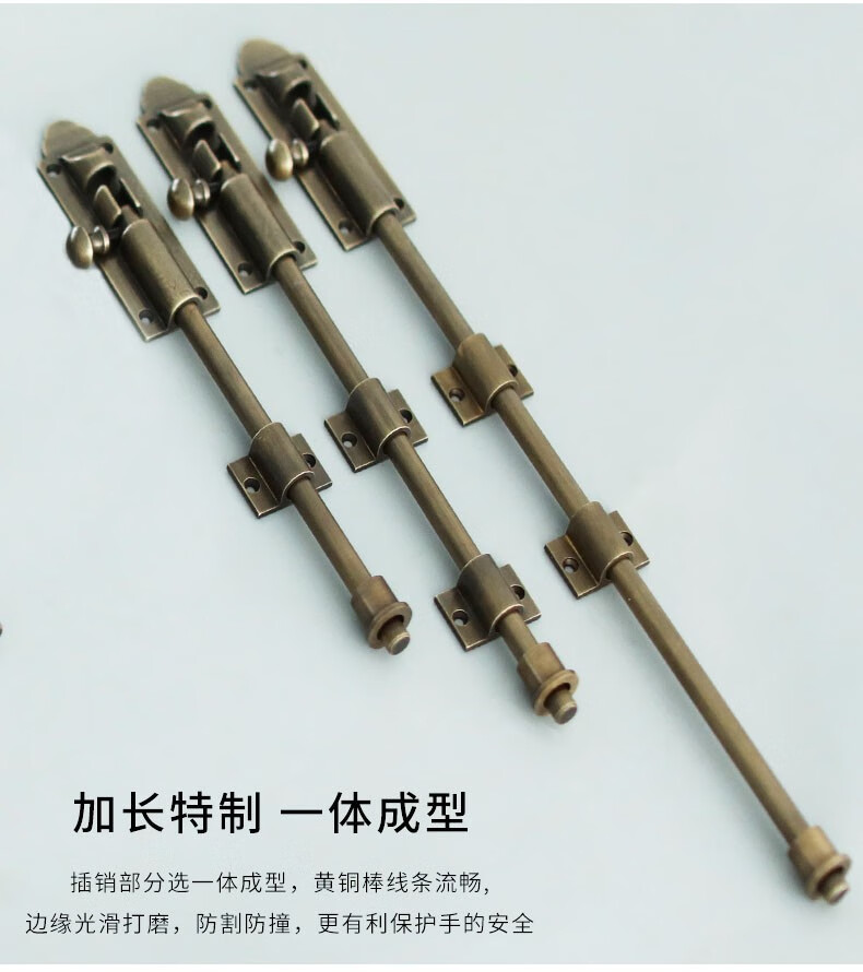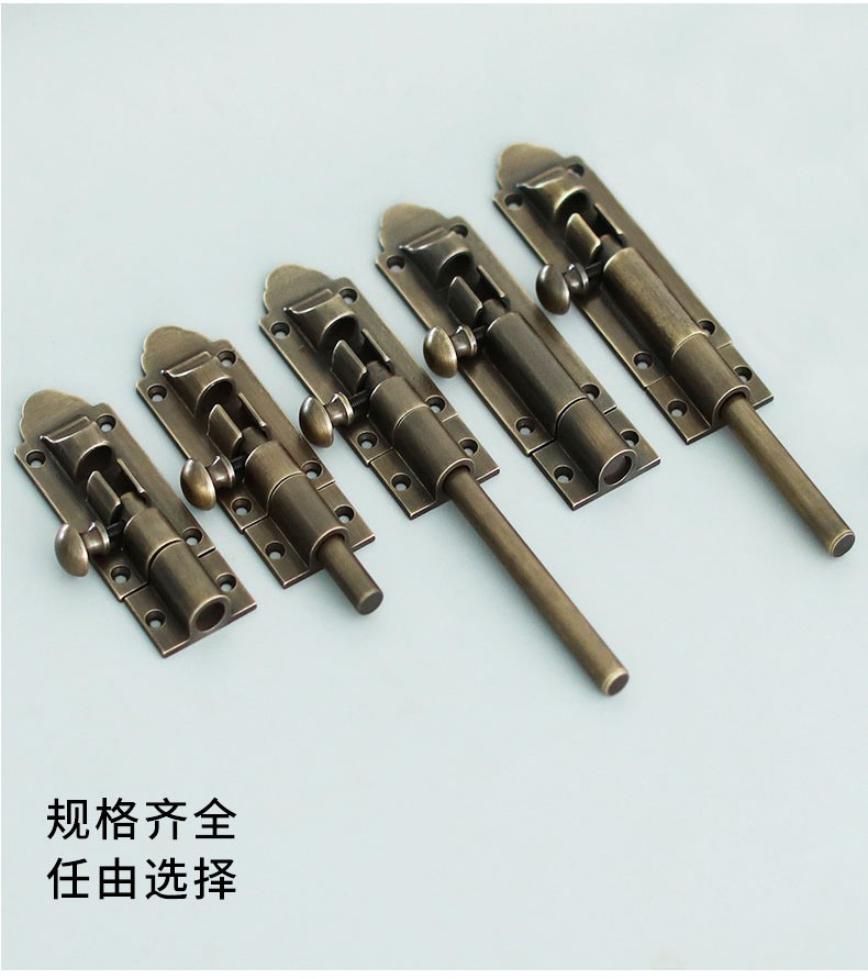 Yuandu pure brass latch Chinese style antique window latch door latch old exposed wooden door lock floor plug retro 7.5CM base plate (rod extends 2CM) bronze color